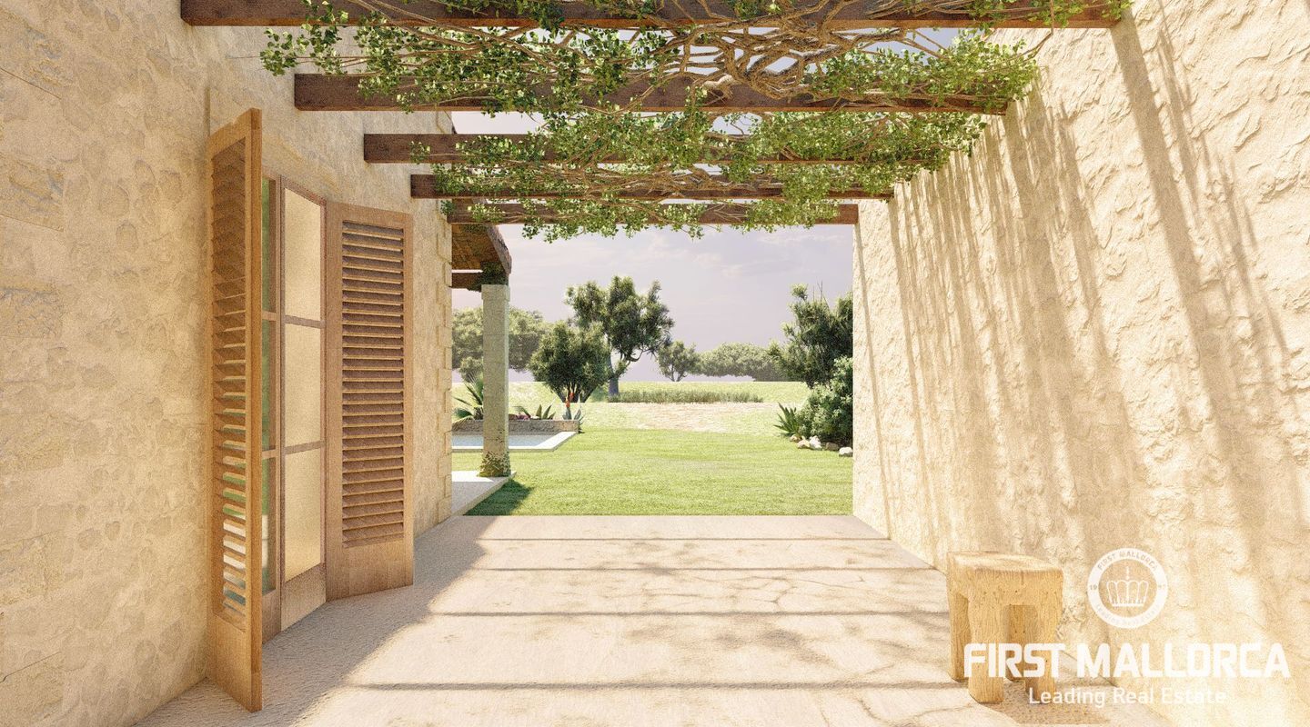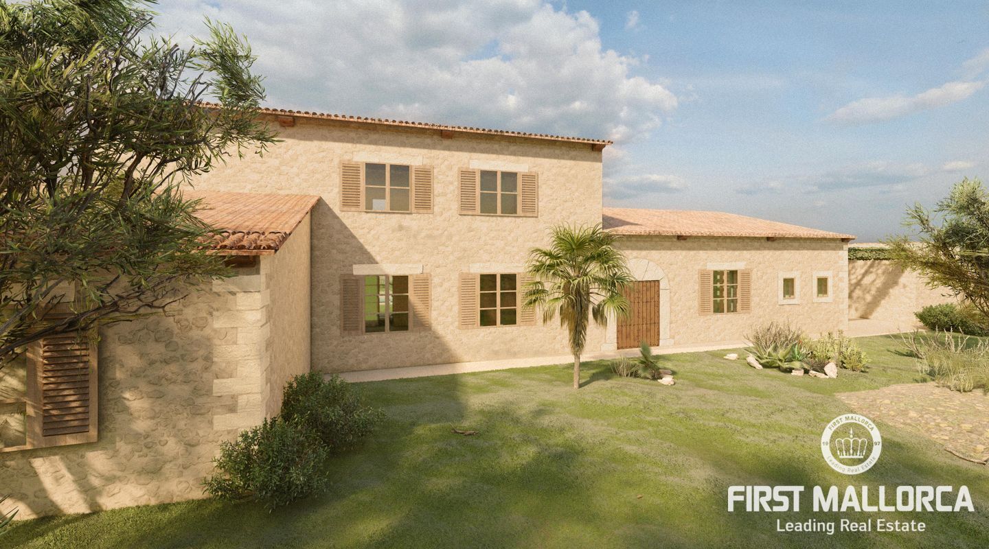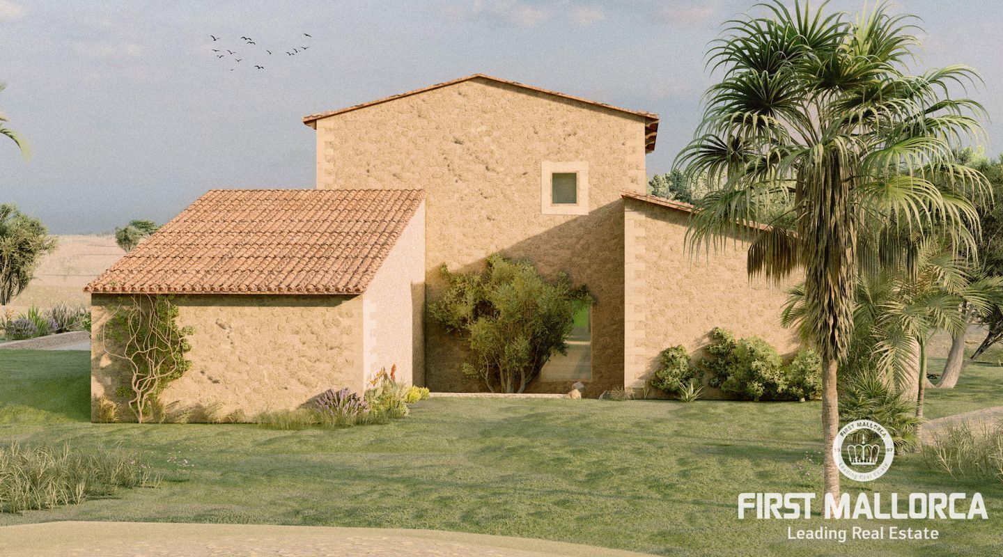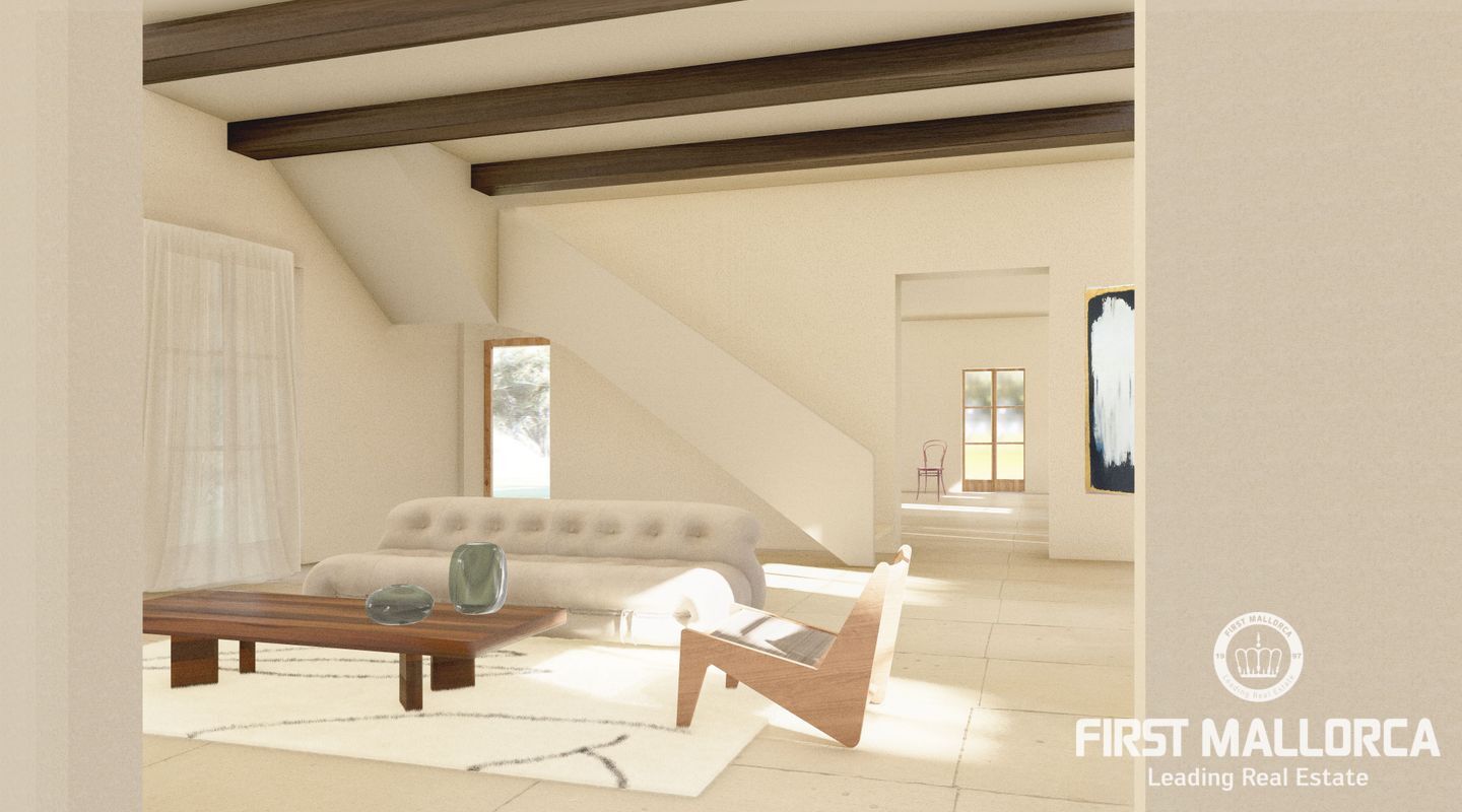 This plot with a building licence is conveniently located just 10/15 minutes from the beaches of Muro and Can Picafort and offers a serene retreat amidst Mallorca's natural beauty. Nestled in nature, it offers complete privacy and stunning landscape views. With its topography featuring three distinct planes and lush woodland, it provides captivating scenes with the Pla de Mallorca and the Tramuntana mountain range all around. Recently obtained, the property has a building license for a 400 m2 house. The plan includes an entrance hall, two spacious living rooms, a dining room, five bedrooms (three en suite), four bathrooms, a toilet, kitchen, and laundry room. Outdoor amenities feature a swimming pool, al fresco dining area, and service hut, making it a unique opportunity, especially since the current maximum buildable area stands at 300m2. The property is also equipped with a legalized vein well, a safareig (pool), and a rainwater well/deposit. Additionally, it features solar panels and a charming, fully renovated agricultural building spanning approximately 70 m2. Adorned with orange, fig, carob, wild olive, and almond trees, the land also boasts a striking palm tree forest lining the access road.