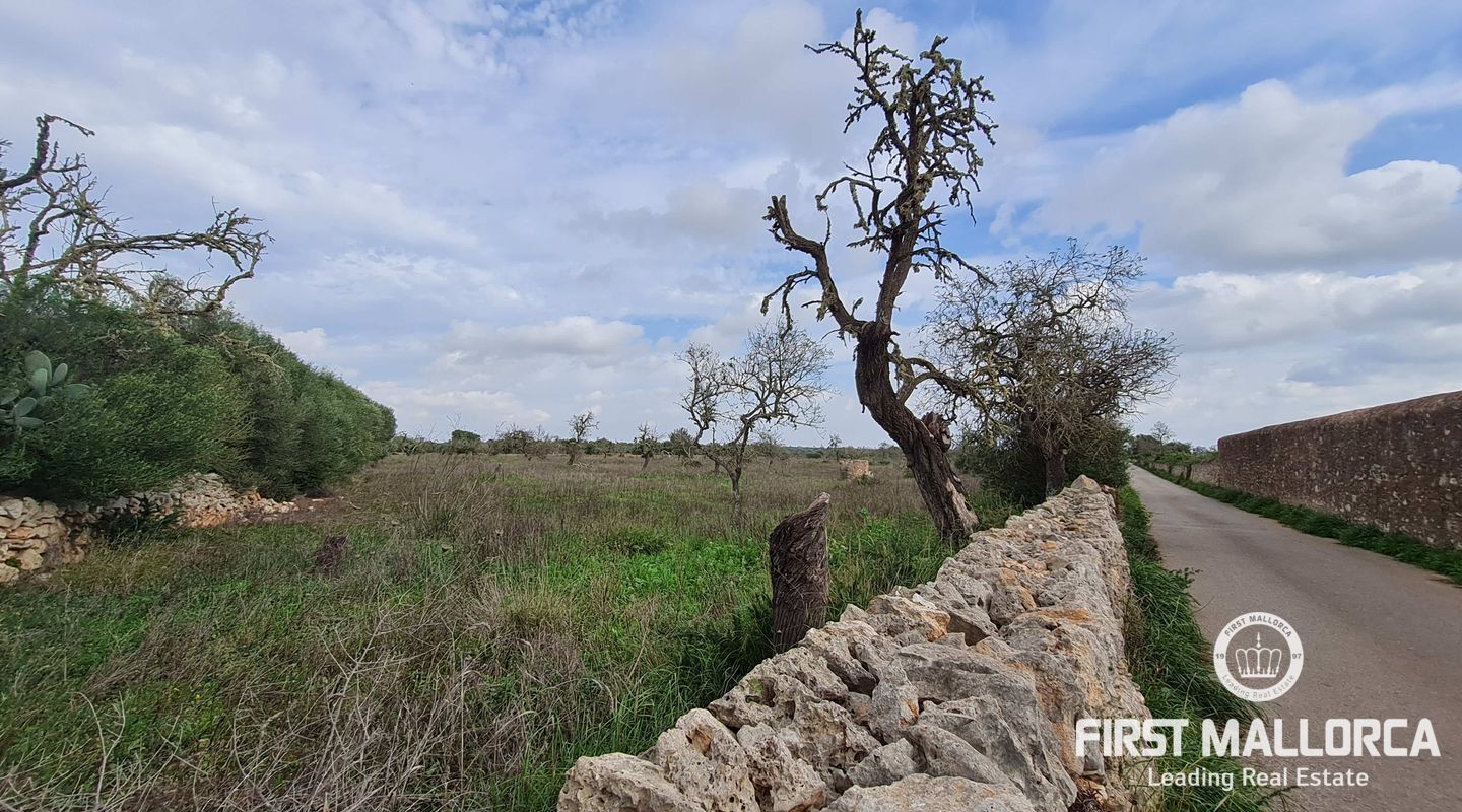 The land is situated on a corner bordering two roads and two plots. It has an unevenness in the middle of the plot which means that from one side you can see part of the village of Santanyí.