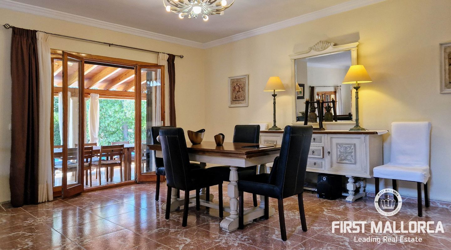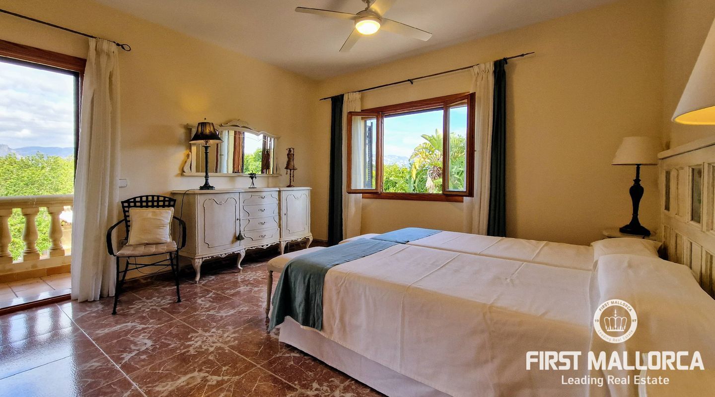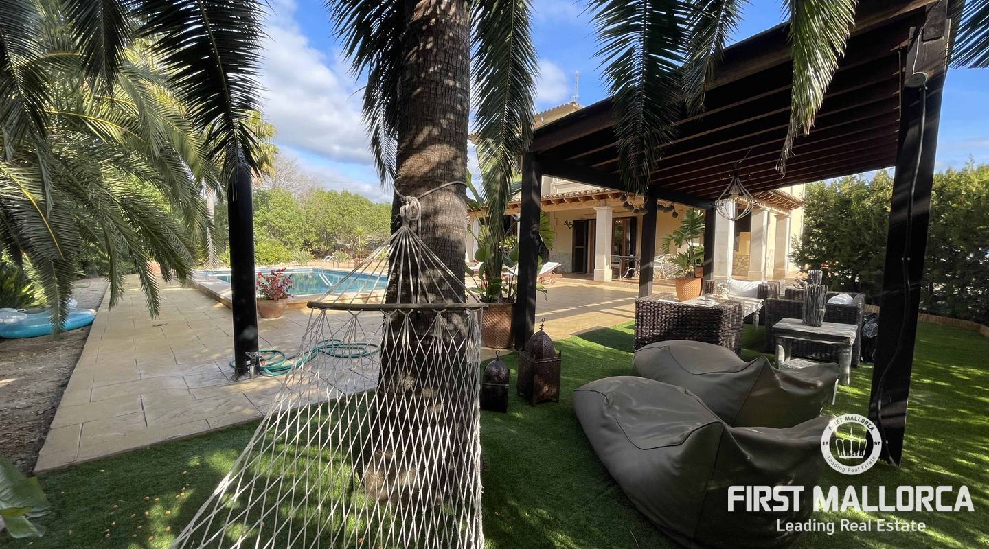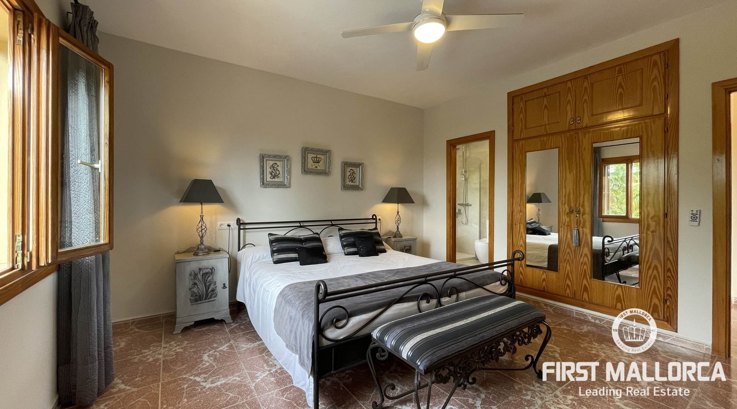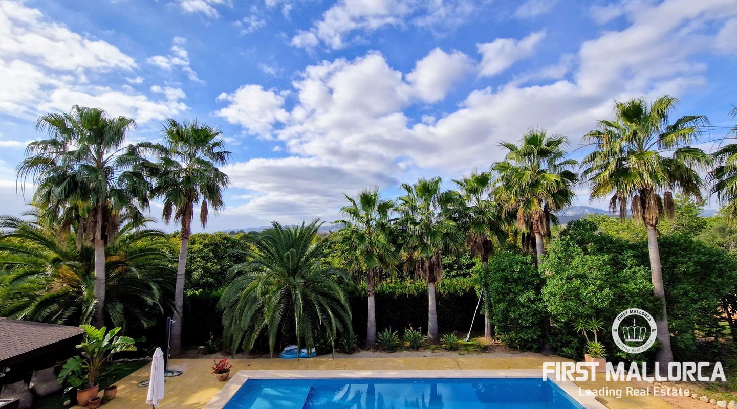 Secluded in a private little oasis, on a quiet spot this independent villa with a pool sits on a 20,000 m2 plot, dedicated to avocado cultivation. The oldest on the island. The villa is just south of Palmanyola, 10 minutes by car to the city of Palma and 15 to the airport. You would never guess where you are located however, since the large avocado trees (230 of them) create a private, hidden refuge to get lost in. The private driveway leads you in to plenty of parking space, and greets you with this villa consisting of 4 bedrooms, one of which is en-suite, and 3 bathrooms. The outside area has multiple chill-out spots, and an inviting 50m2 pool is the center of attention. There are various structures on the plot, some for the use of the business, others such as a barbecue, porch and dining area, for more leisure based activities. The 450m2 house importantly has an ETV vacation rental license (without restriction) that makes it along with the bio cultivation of renowned Mallorcan avocados make an excellent investment for any potential buyer. The home is actively used and has excellent business, however this could be improved even further with a mild interior design update. There is pre-installation for a heating system, fibre-optics, double glazing, automatic gate and importantly its own high flowing well with automatic irrigation throughout the farm.