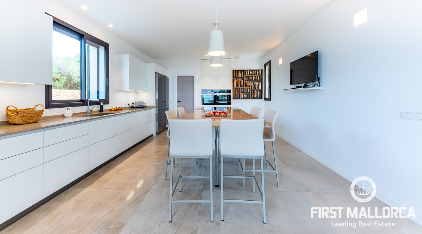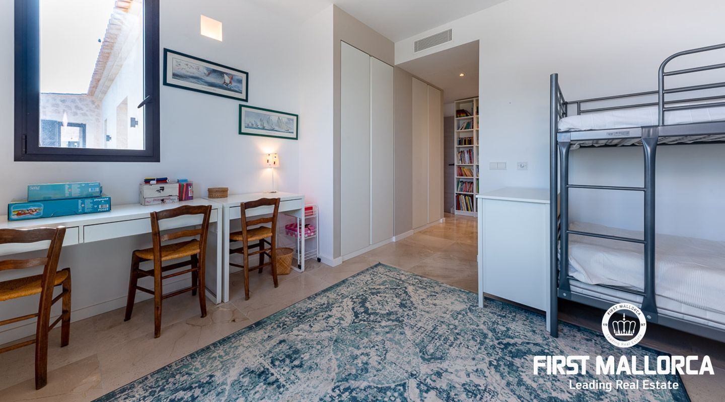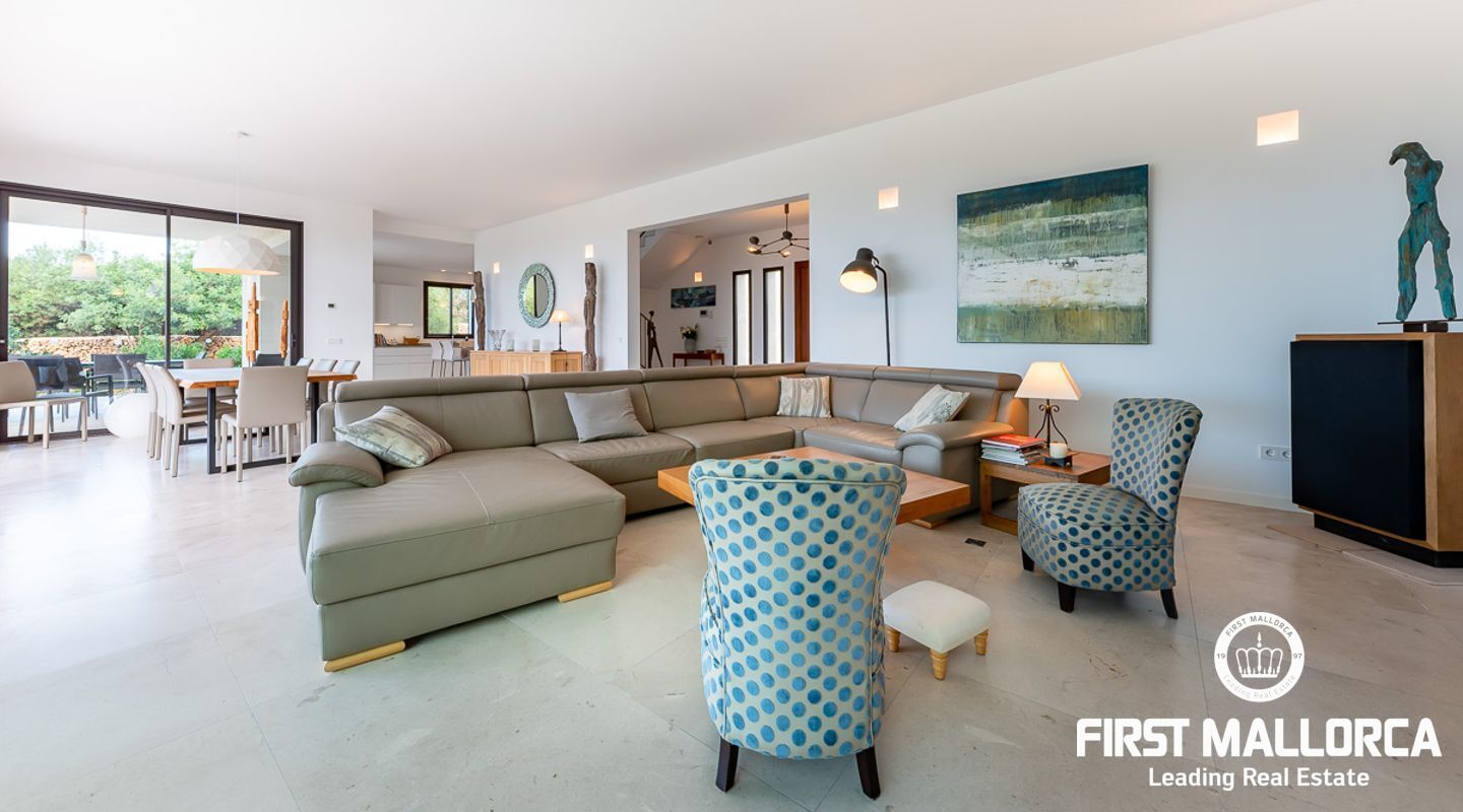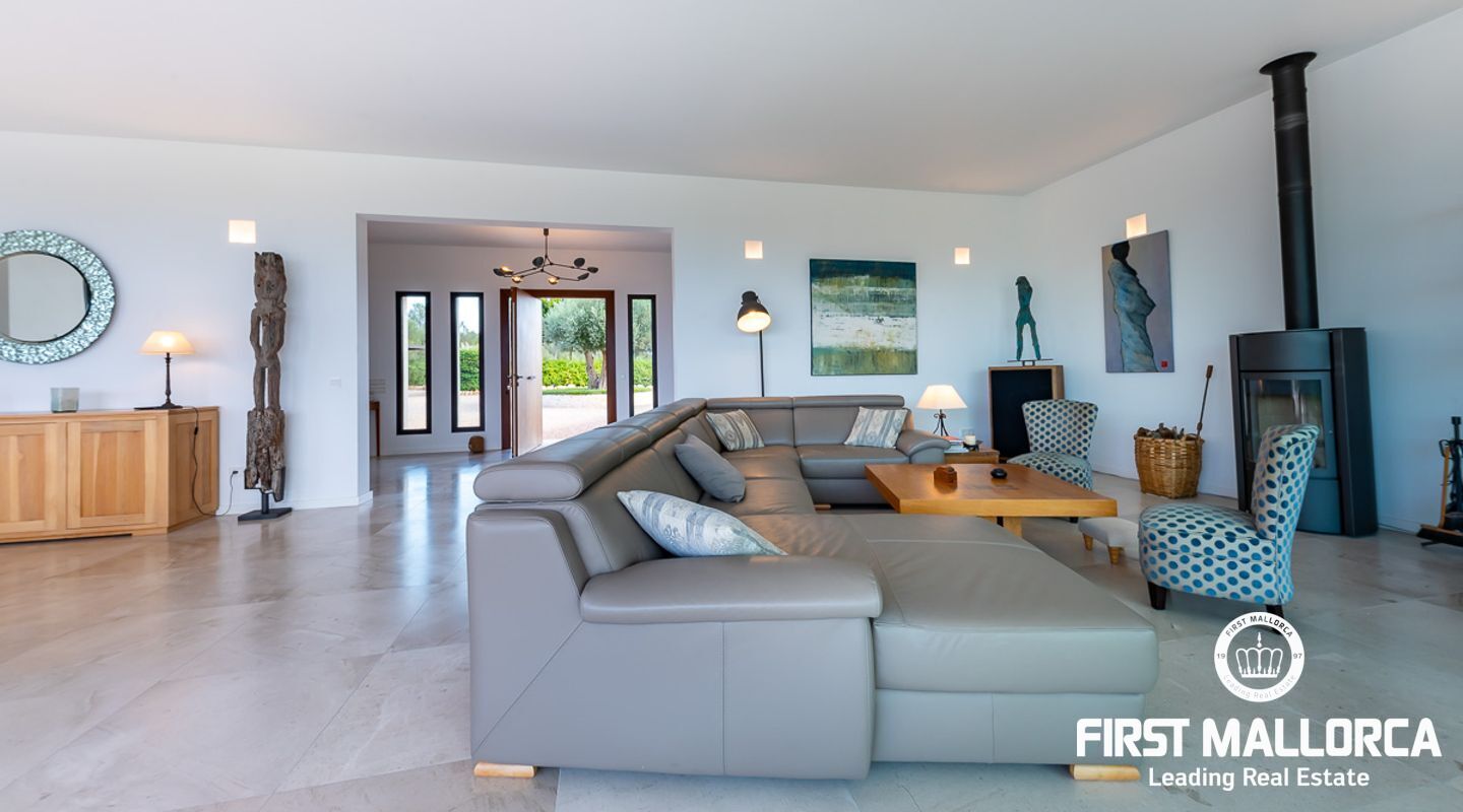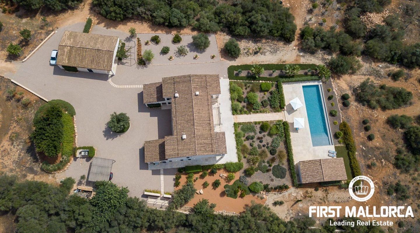 This very exclusive finca, apart from its perfect location and marvellous views to the island of Cabrera and the sea, stands out for its high quality and design. The finca offers an atmosphere of absolute tranquillity and privacy, in a dreamlike setting, with the plot of approx. 31.000m2 perfectly enclosed by an ancient stone wall, with a spectacular and already grown garden, which, in addition to many different flowers and native plants, surprises us with 80 olive trees and other fruit trees. Natural light everywhere, large and wide windows. From every corner there are different views to the sea or to the mountains. The whole façade is covered with natural stone, each piece hand worked and fitted by local craftsmen. Six spacious bedrooms all with en suite bathrooms, own water and several water storage cisterns including rainwater collection, south facing with 180º views, garage for two cars, two porches for more vehicles, top quality materials such as polished stone floors, inside and outside the house, fully insulated walls with layers of 8 cm from the outside, the property was built on a perfectly ventilated basement with access, all brick walls and air chamber, water softener, UV system for water purification, underfloor heating, air conditioning, ceiling fans, interior and exterior perimeter security system, extra mechanical ventilation in bathrooms, kitchen, technical rooms, perfect WIFI signal, connected to mains electricity and also solar panels for self consumption, a 90m2 swimming pool with automatic cleaning and many, many more extras await you in this Finca with a spectacular ambience and unparalleled quality. An investment opportunity hard to beat!