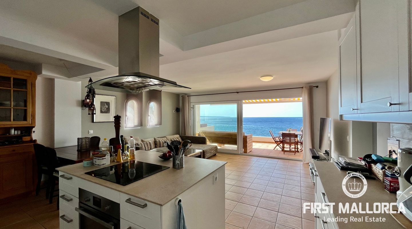 This spacious apartment offers a large terrace practically on the water in an elevated position in Torrenova with all day sun and truly amazing sea views. The property offers an open plan living/dining area with attached kitchen and laundry area. There are a total of 3 bedrooms and 3 bathrooms. The apartment was recently refurbished with top quality materials. The community is very well maintained and offers a community pool by the sea and direct access to the sea. The apartment includes a parking space for one car. The spectacular sandy beaches of Palmanova are just a few minutes walk from the apartment, as well as a wide range of restaurants, cafes and stores. The center of the island's capital, Palma de Mallorca, can be reached in 15 minutes by car and the international airport in about 20 minutes.