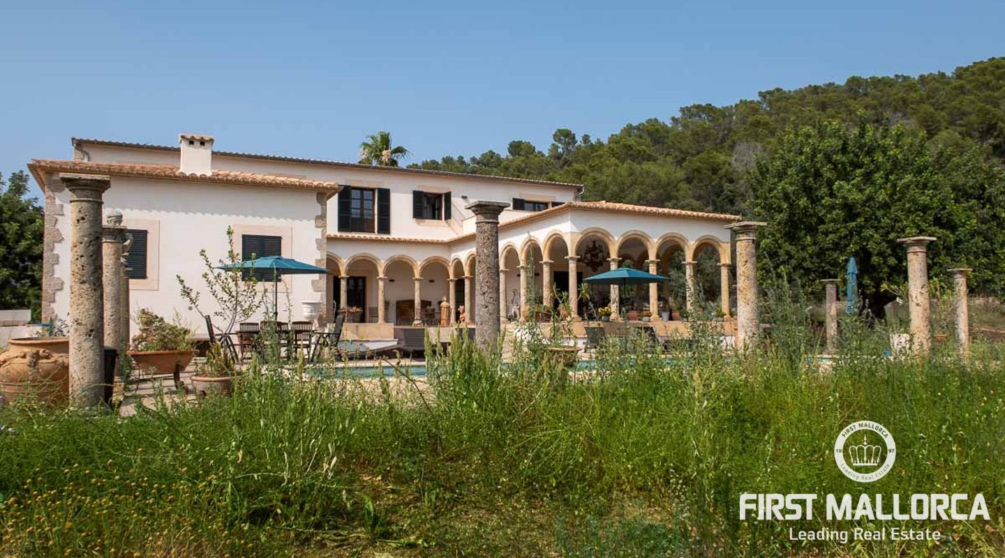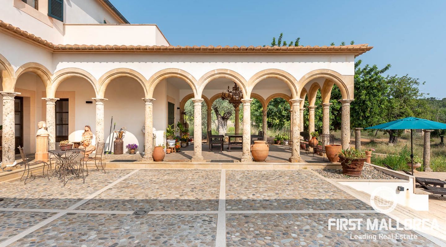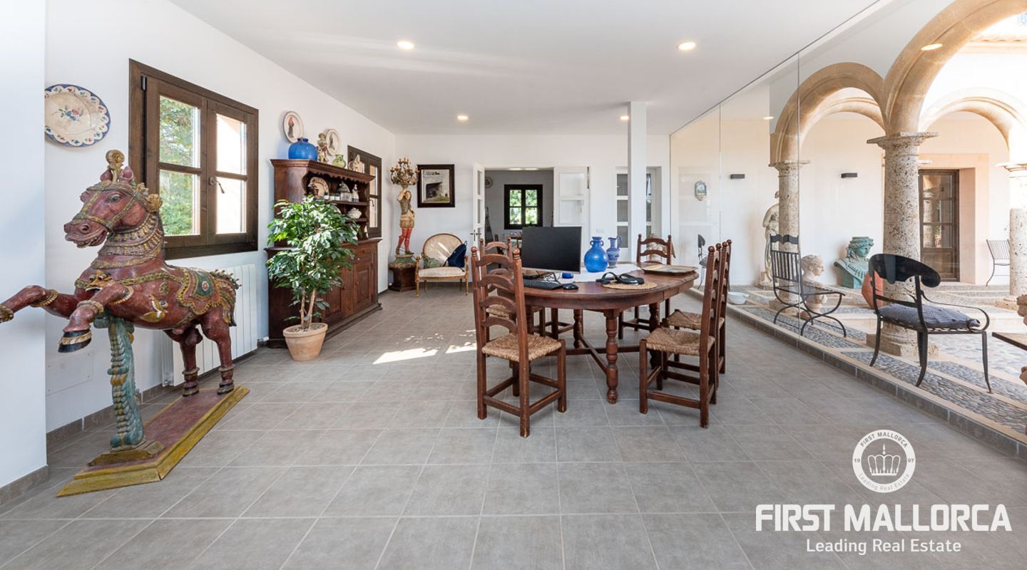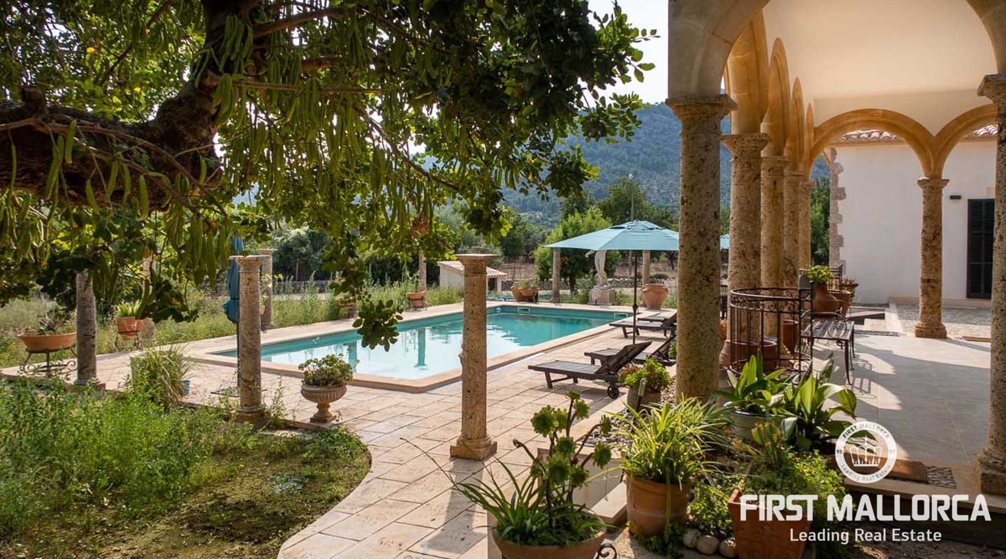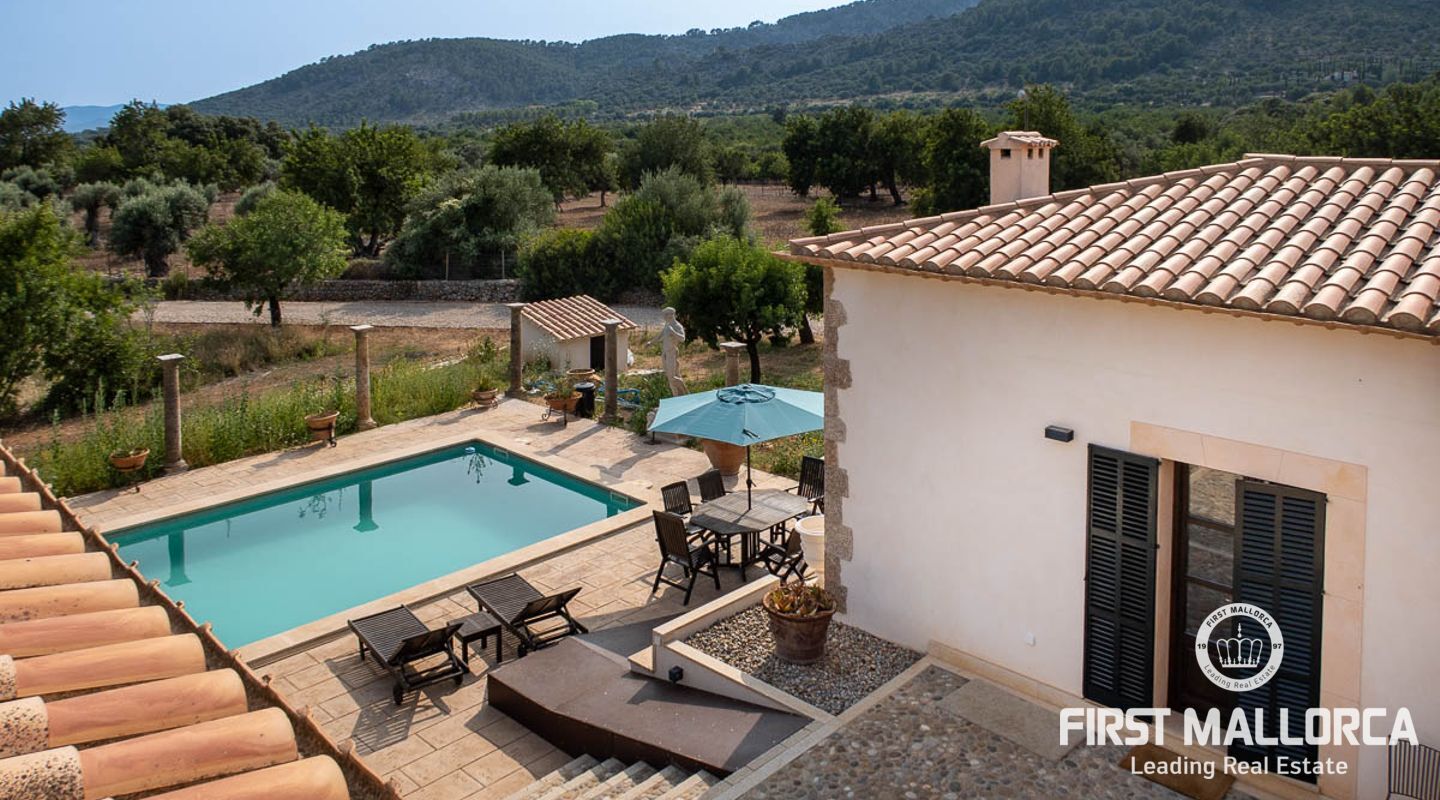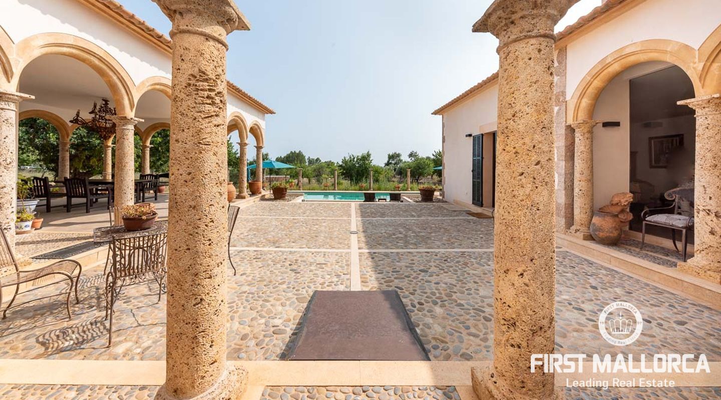 This beautiful villa near Bunyola is located at the beginning of the Serra de Tramuntana, surrounded by the tranquility of the countryside and the mountains. It was built by the current owners in 2017, on a plot of approximately 22,000m2 on which there was only a small construction, used as a warehouse. The elegant style of the owners has made it possible to create a house that almost transports us to a museum, among columns, capitels, reproductions of famous ancient statues and frescoes.
