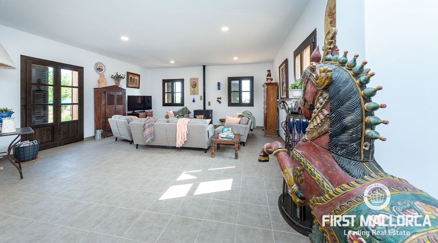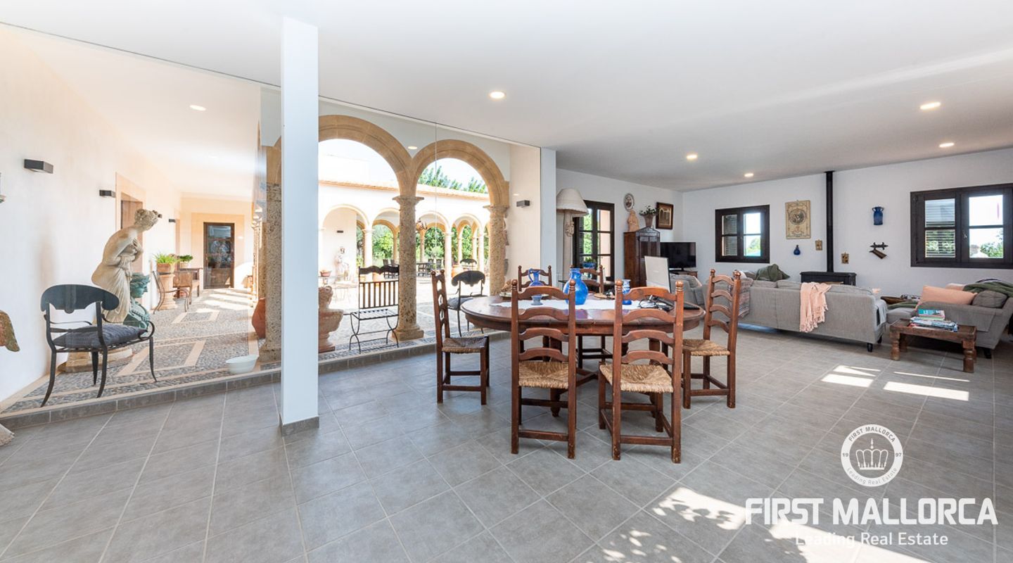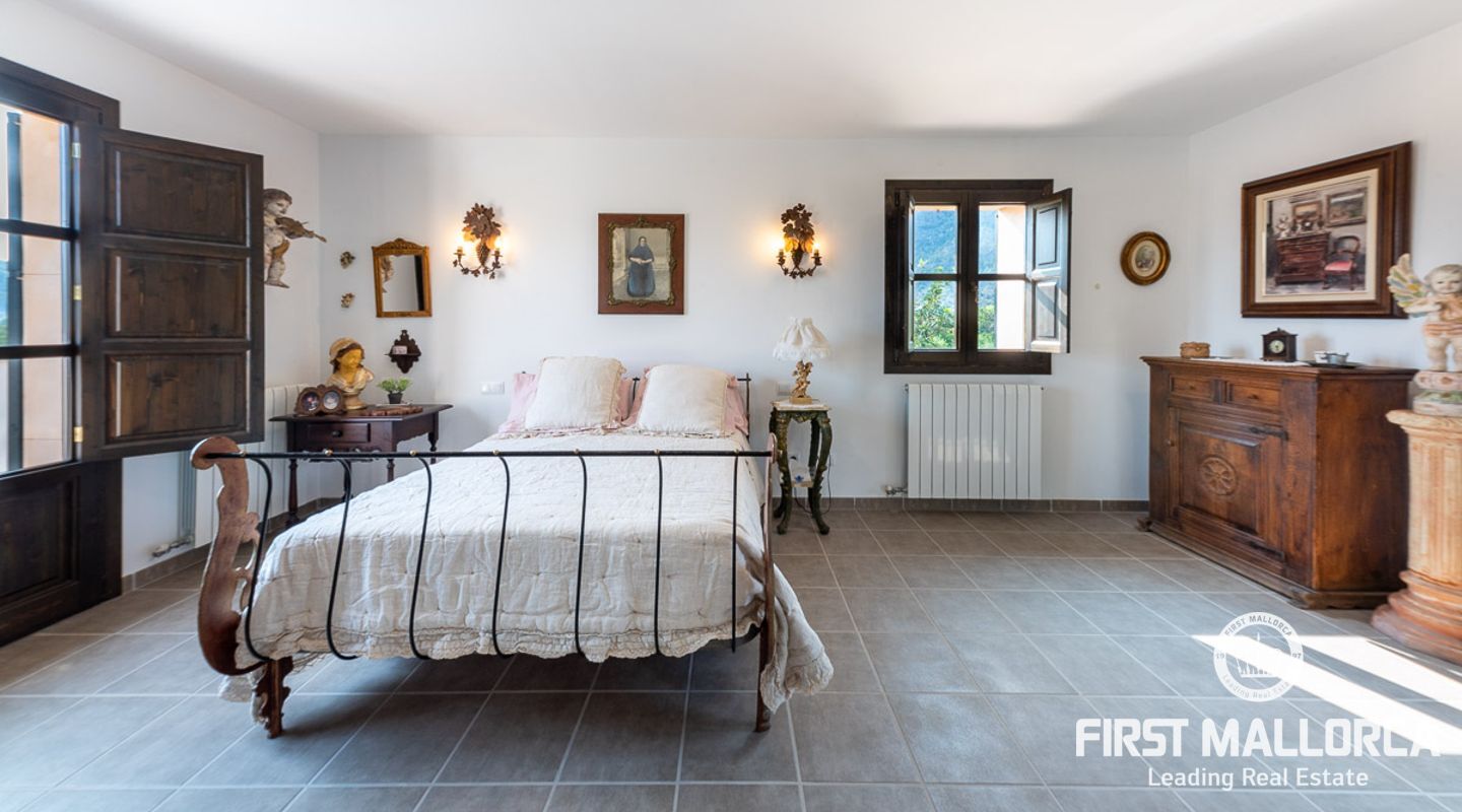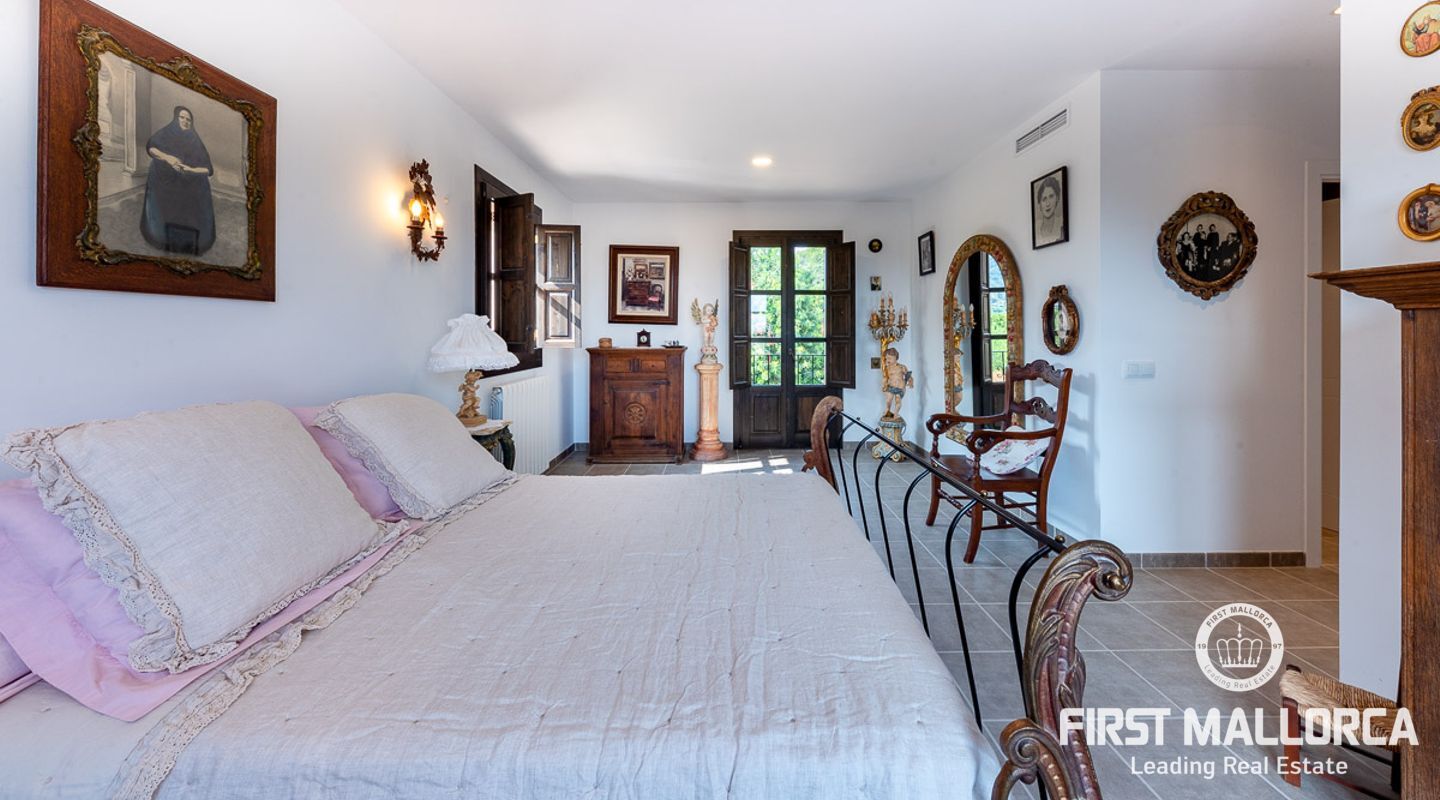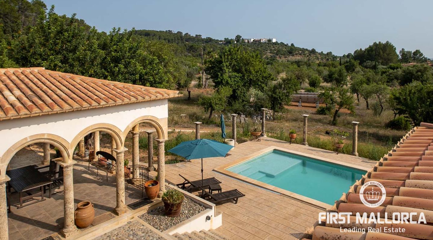 This beautiful villa near Bunyola is located at the beginning of the Serra de Tramuntana, surrounded by the tranquility of the countryside and the mountains. It was built by the current owners in 2017, on a plot of approximately 22,000m2 on which there was only a small construction, used as a warehouse. The elegant style of the owners has made it possible to create a house that almost transports us to a museum, among columns, capitels, reproductions of famous ancient statues and frescoes.