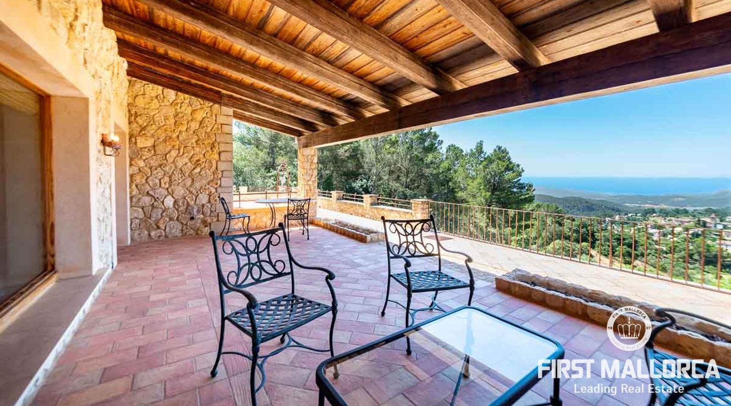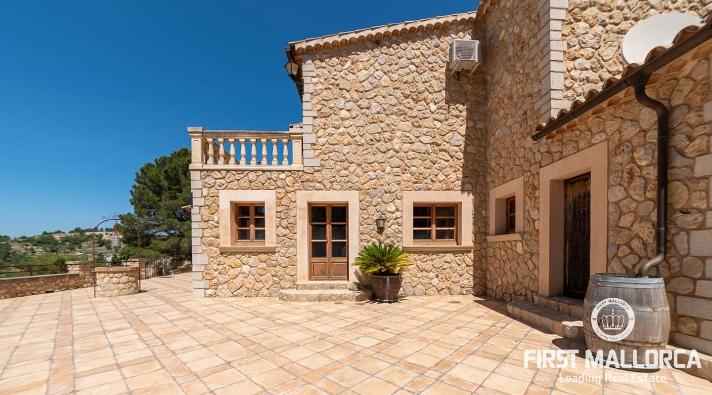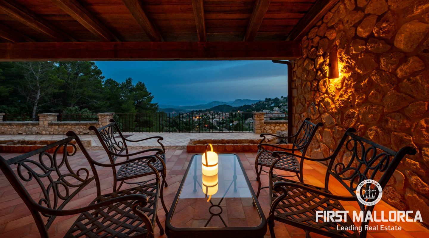 Extraordinary country house situated in a breathtaking location in the picturesque mountain village of Galilea offering panoramic views of the surrounding mountains and the sea. The property has been built respecting local traditions and using natural materials but at the same time complying with modern building requirements. The result is a very well built house with a special ambiance and character in a unique location in the middle of the UNESCO protected Tramuntana Mountains and still with the possibility to be socially connected in such a charming village as Galilea is. The village has about 500 inhabitants, two restaurant/tapas bars and is the perfect location for those searching for a peaceful and immensely beautiful natural environment. The neighbour village of Puigpunyent is only 10 minutes away by car and there can additional services such as supermarkets and post office be found. The beches of the southwest, Palmanova, Santa Ponsa and Paguera, and the centre of Palma can be reached in less than 30 minutes by car.