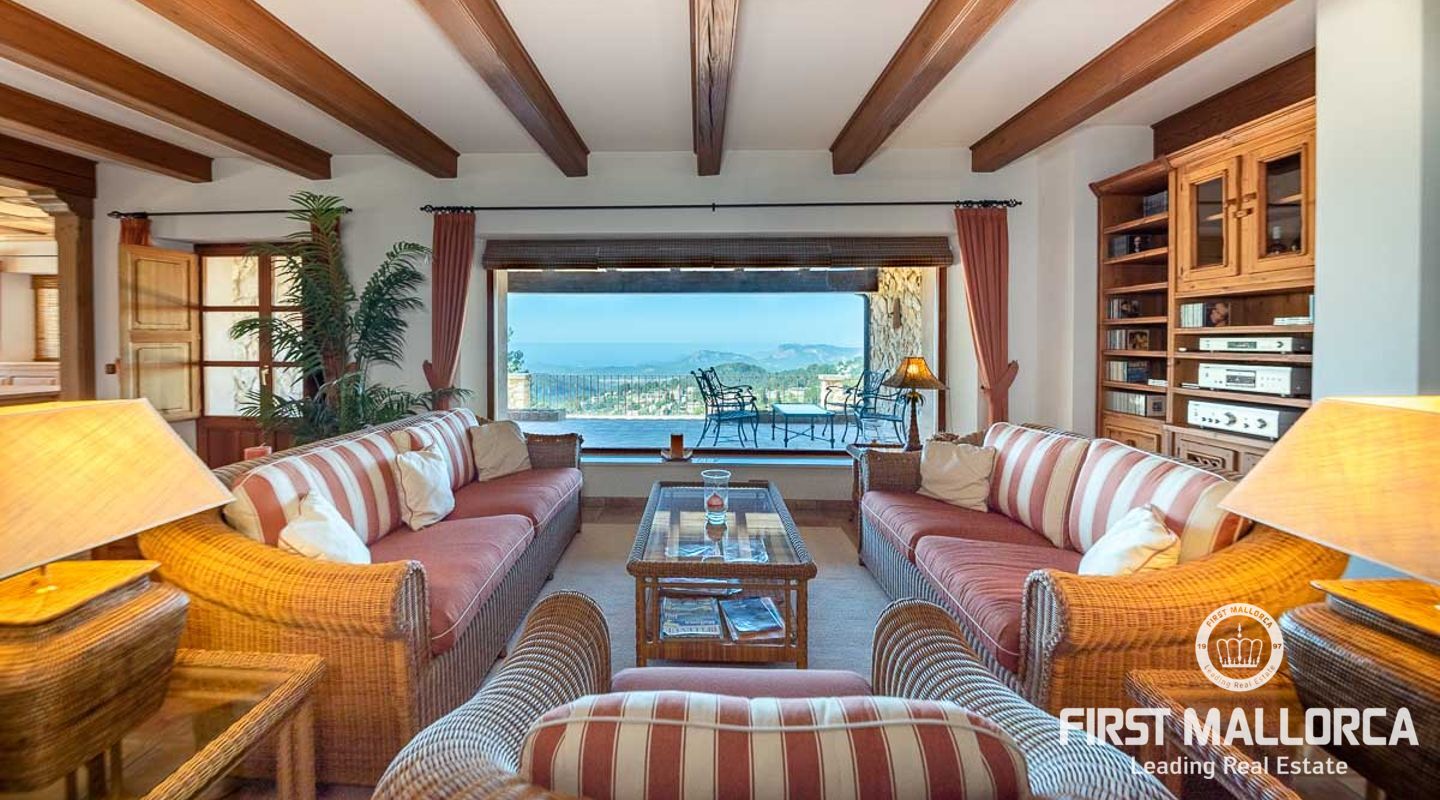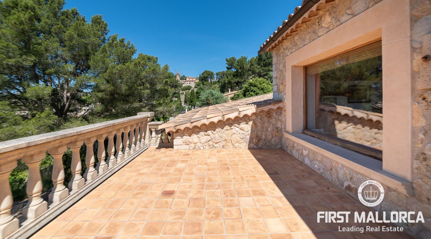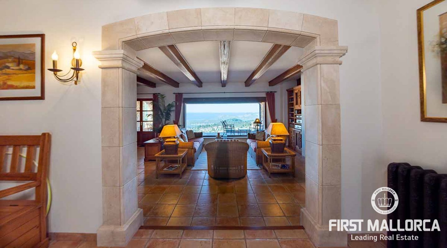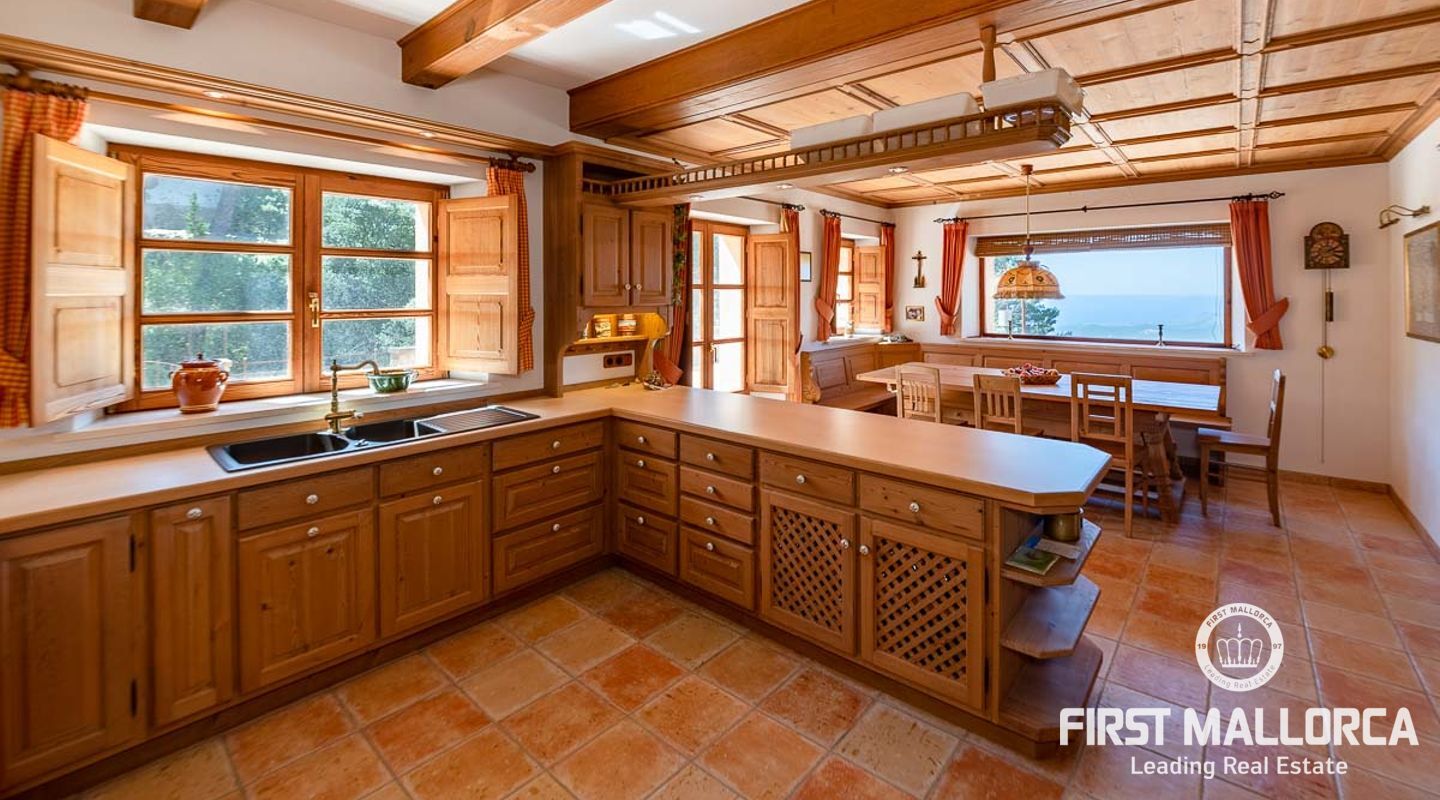 Extraordinary country house situated in a breathtaking location in the picturesque mountain village of Galilea offering panoramic views of the surrounding mountains and the sea. The property has been built respecting local traditions and using natural materials but at the same time complying with modern building requirements. The result is a very well built house with a special ambiance and character in a unique location in the middle of the UNESCO protected Tramuntana Mountains and still with the possibility to be socially connected in such a charming village as Galilea is. The village has about 500 inhabitants, two restaurant/tapas bars and is the perfect location for those searching for a peaceful and immensely beautiful natural environment. The neighbour village of Puigpunyent is only 10 minutes away by car and there can additional services such as supermarkets and post office be found. The beches of the southwest, Palmanova, Santa Ponsa and Paguera, and the centre of Palma can be reached in less than 30 minutes by car.