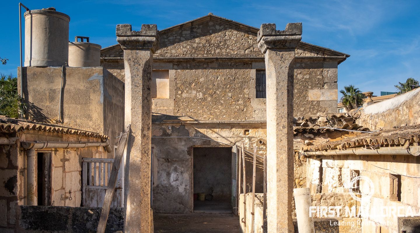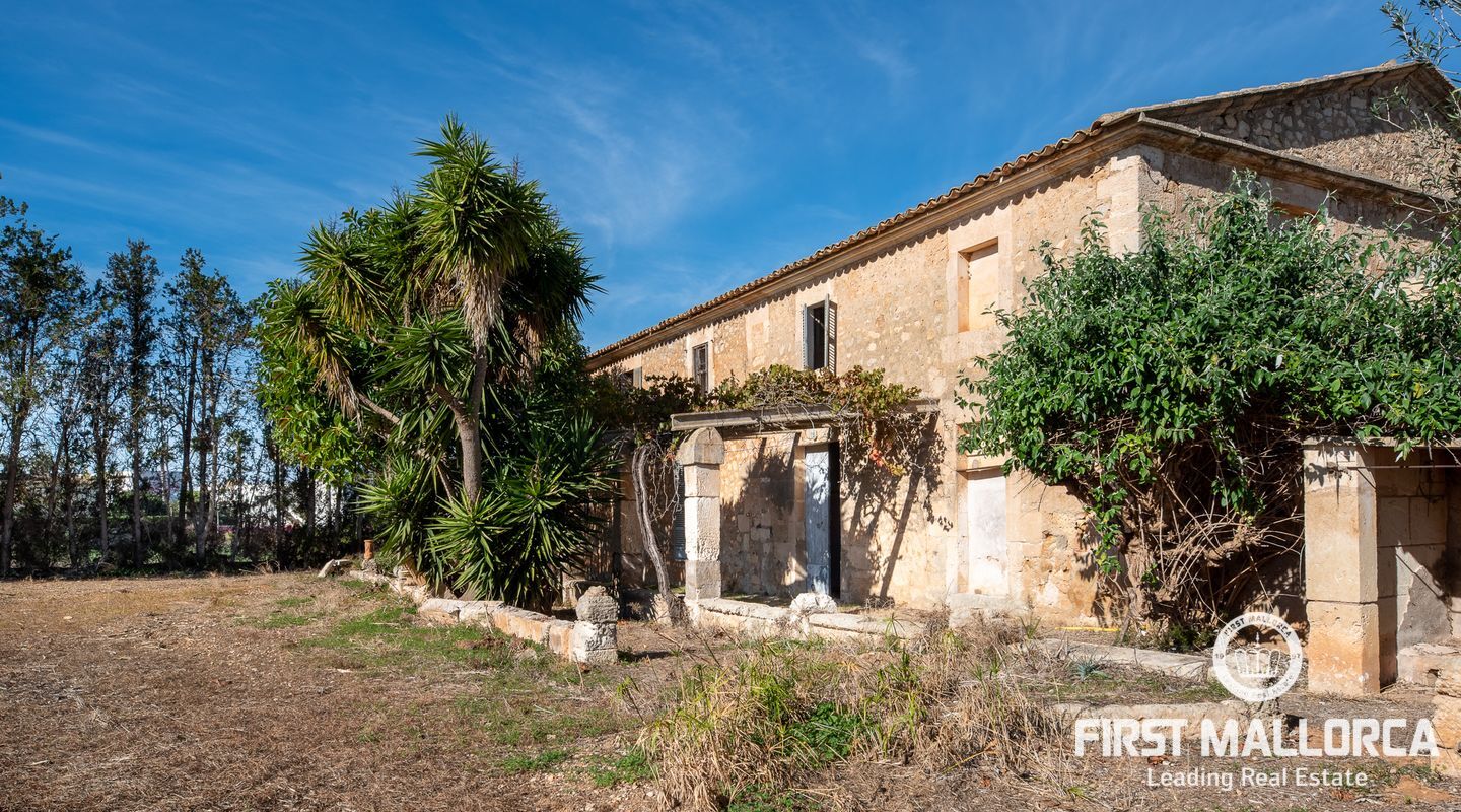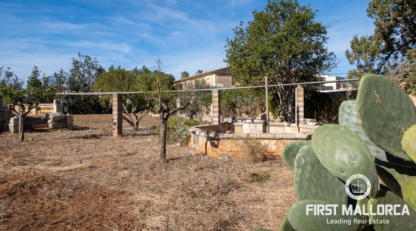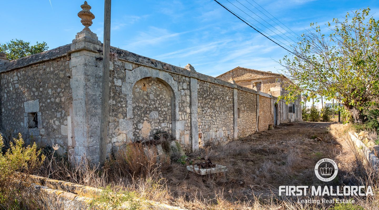 This remarkable property is located on the outskirts of Manacor, surrounded by ancient walls, courtyards, annexes and large green areas. The plot has 26,000 m2 and the finca itself has a constructed area of around 600 m2. It was built in 1900 and is a refurbishment project with historical value as the entire structure is catalogued.