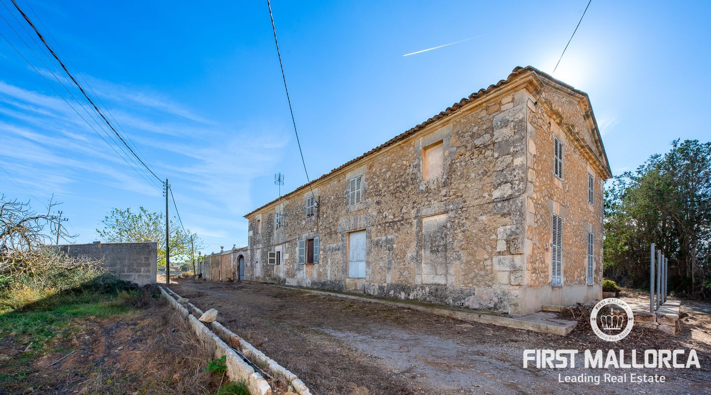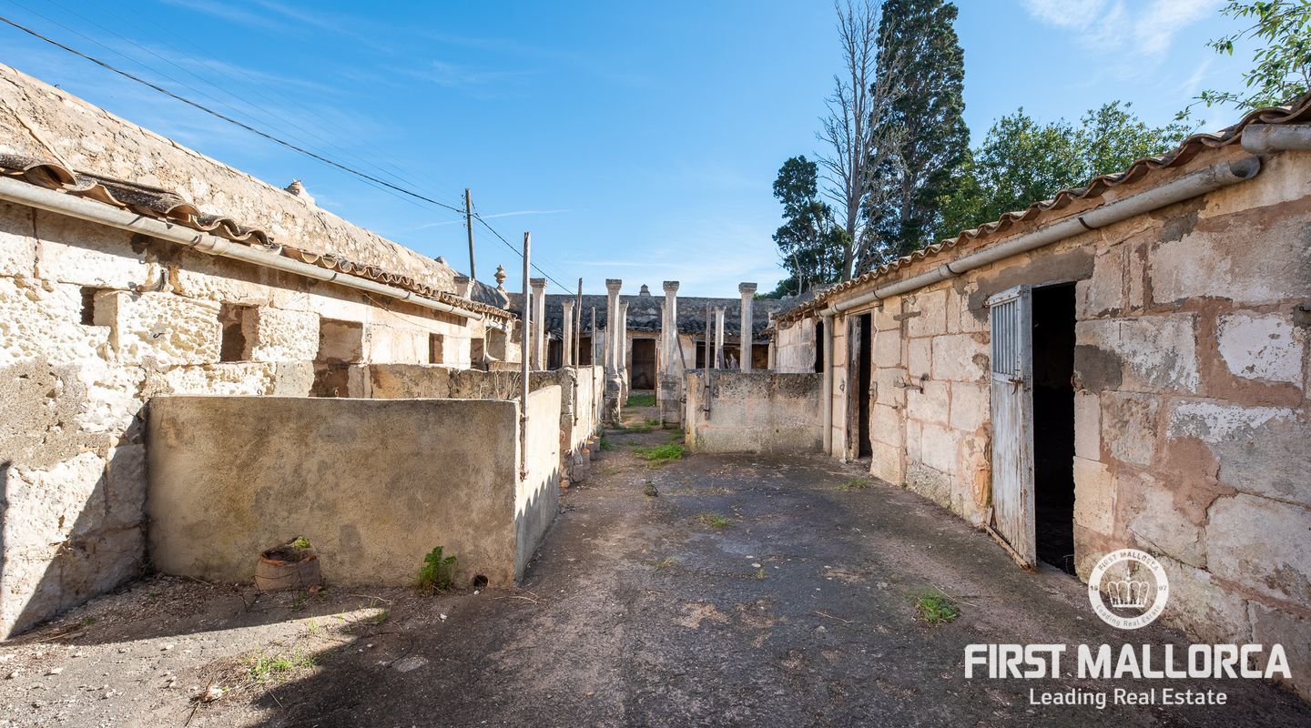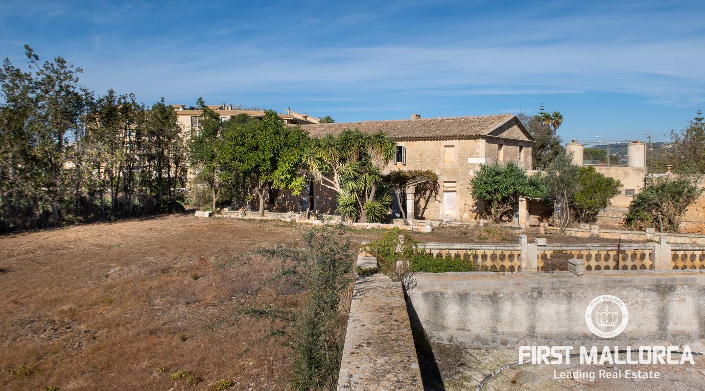 This remarkable property is located on the outskirts of Manacor, surrounded by ancient walls, courtyards, annexes and large green areas. The plot has 26,000 m2 and the finca itself has a constructed area of around 600 m2. It was built in 1900 and is a refurbishment project with historical value as the entire structure is catalogued.