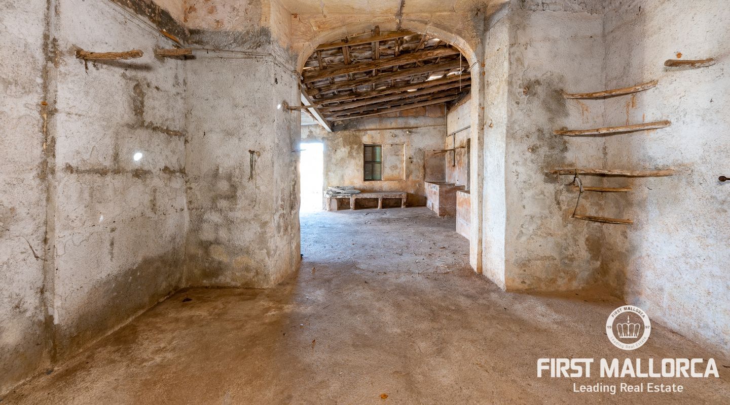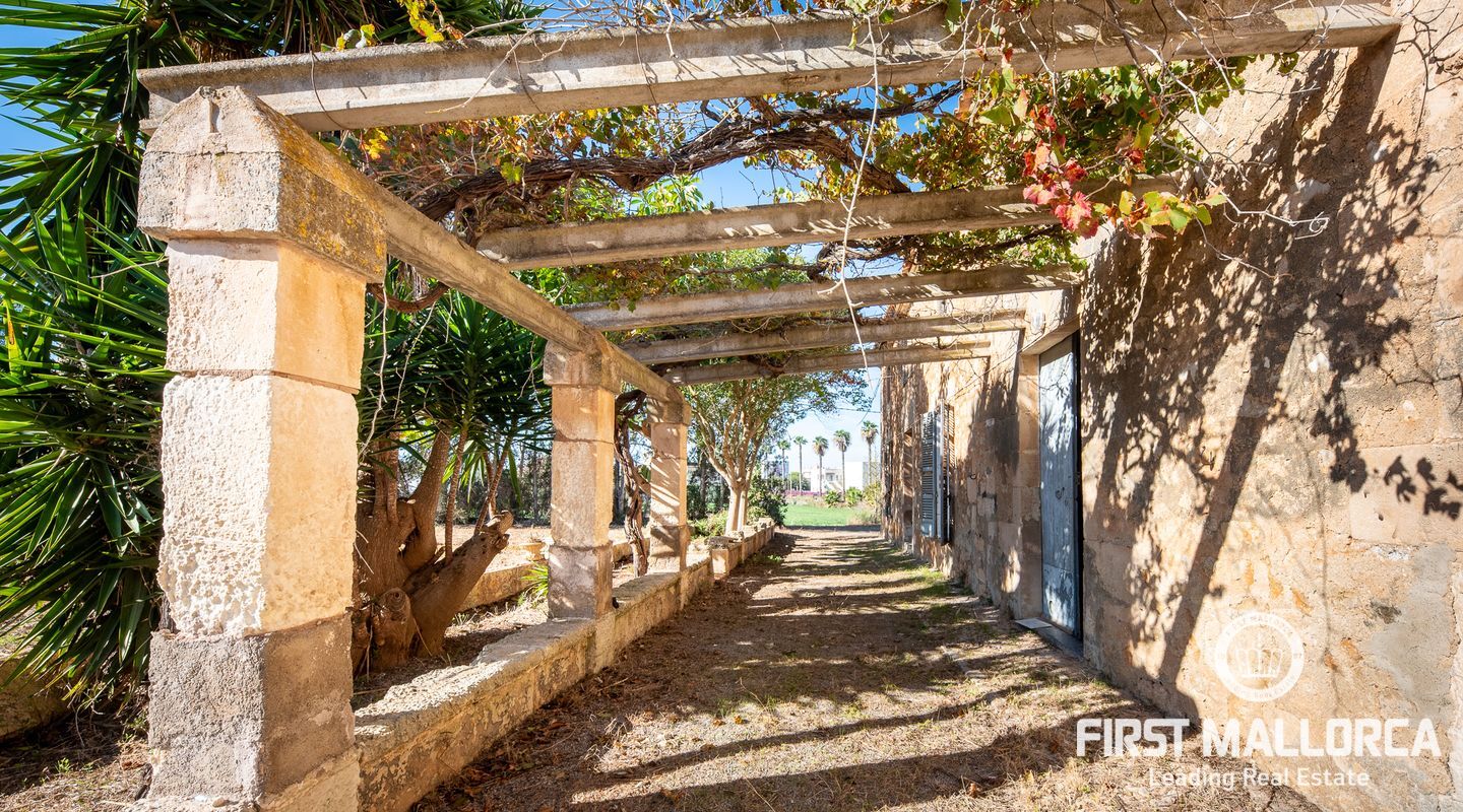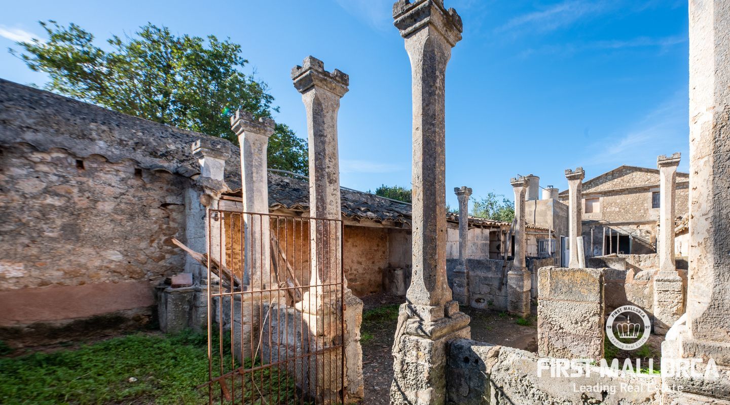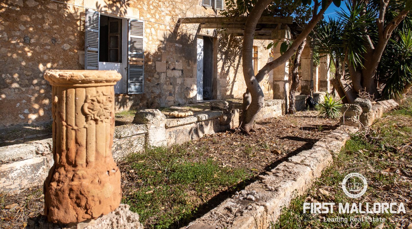 This remarkable property is located on the outskirts of Manacor, surrounded by ancient walls, courtyards, annexes and large green areas. The plot has 26,000 m2 and the finca itself has a constructed area of around 600 m2. It was built in 1900 and is a refurbishment project with historical value as the entire structure is catalogued.