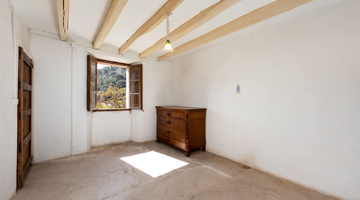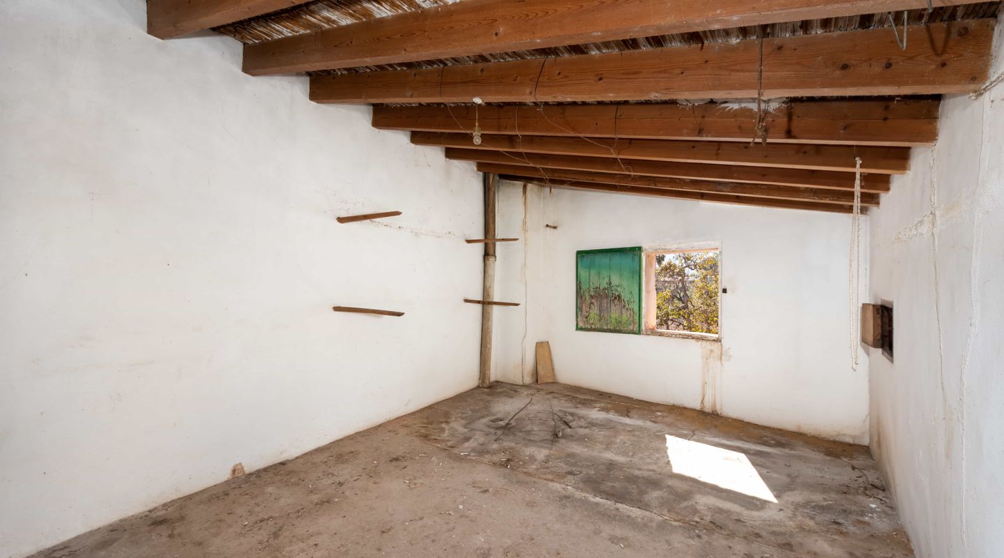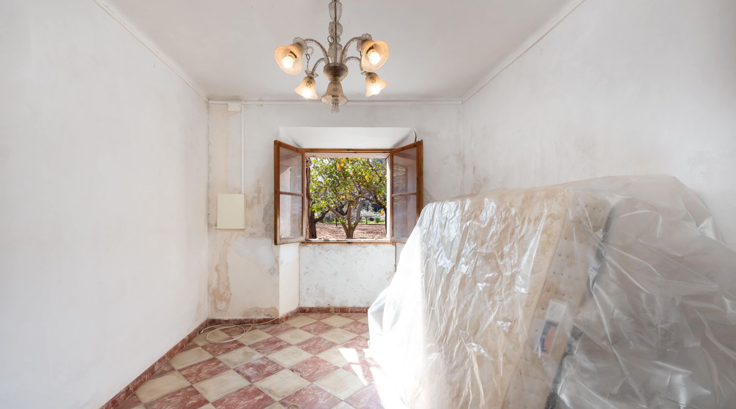 The constructed area of approx. 142m2 is distributed on two levels over an entrance area, a living room, a kitchen, four bedrooms and a bathroom. The property also offers a storage room and a garage outside. The finca is connected to mains electricity and the water supply comes from its own well. There is already a renovation project and a building licence for it, so you could start renovating immediately.