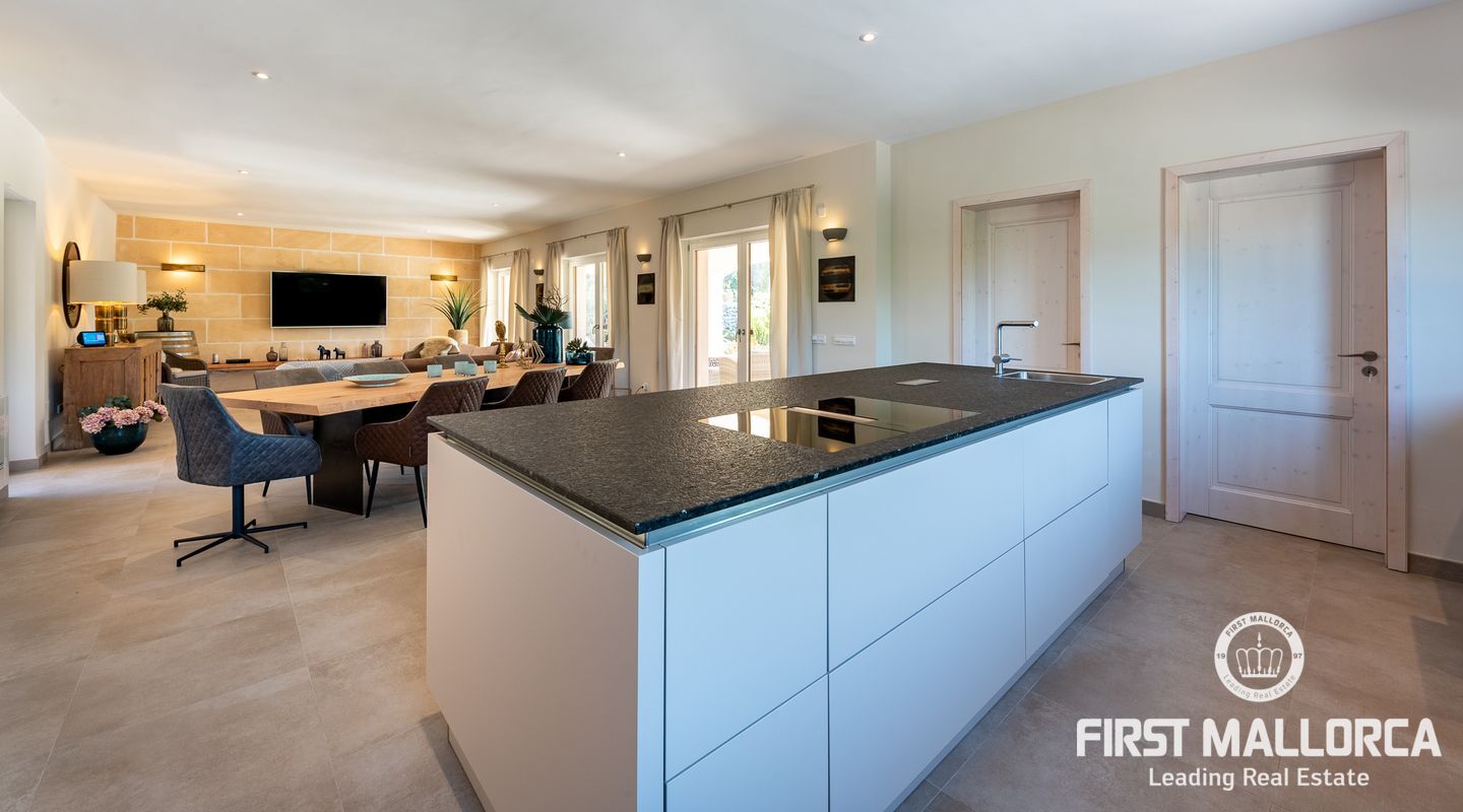 An open living-dining area will take you to a spacious terrace and the 44m2 pool. The kitchen is open integrated.