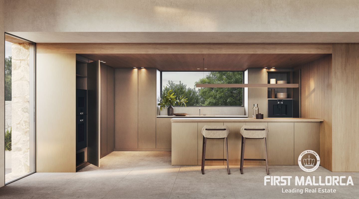 S'Olivera - fusion of Mallorcan culture with the Kira Kira concept. Kira Kira refers to the beauty of light and its presence in nature. The light that remains silent and invisible, waiting to find a space or an object. The light that accompanies us and that evokes unique sensations in us when we see how it illuminates every corner. S'Olivera will be more than a home. It is a place that creates harmony between light and shadow patterns and reflects emotions. Through the use of natural materials that change over time and the use of warm colour tones, an environment is created that reflects natural beauty and the identity of the island, the sea and the earth. Introspective, relaxing and revitalising - S'Olivera Exclusively with First Mallorca! Copyright TERRAZA BALEAR, PART OF GUNNI & TRENTINO