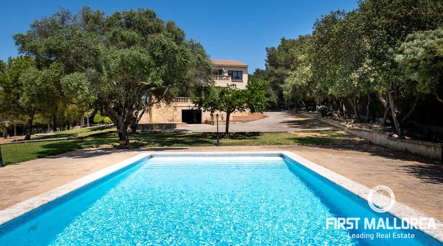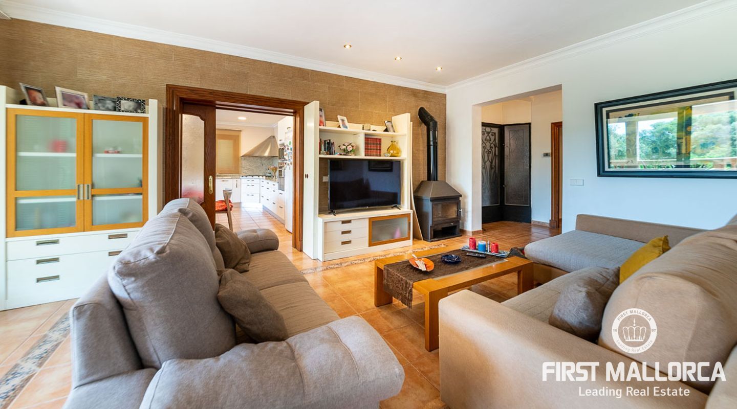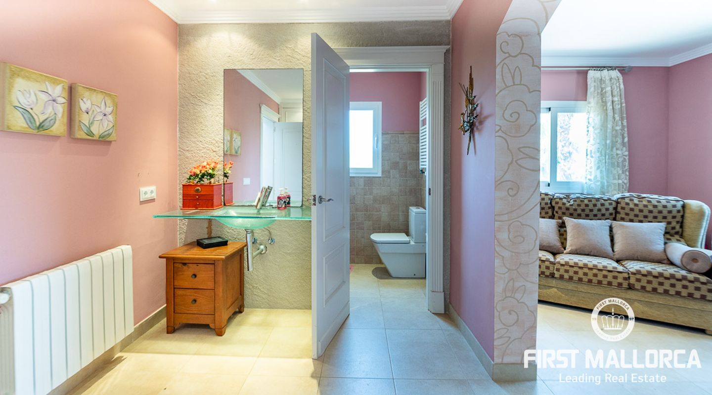 This villa located in quiet countryside consists of 2 separate living places with separate entrances and each with 4 bedrooms, 3 bathrooms, big kitchen and living/dining room with fire place. There is also a large multi-use basement, nice palm entrance and a big legal pool in excess of 55m2. If you're looking for a spacious property in very peaceful country area only 20 minutes from Palma and 2 km from the town centre, do not hesitate to contact us.