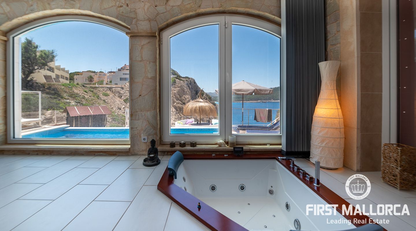 This front line villa is one of the unique properties in the area of Cala Lliteres in the municipality of Capdepera, located directly on the sea front. In total it contains 4 bedrooms, an impressive living room with sea views and the villa has direct access to the beach. Equipped with sauna, gym and a swimming pool with a large solarium with open sea and mountain views. Cala Literes with transparent waters, located in an urban area, has a diving school, the oldest in the area, has a bar service throughout the day, and at night its restaurant offers the possibility to dine a few meters from the sea. This cove is linked to the beach of Cala Agulla by a beautiful promenade that runs along the coast, ideal for enjoying unforgettable full moon nights.