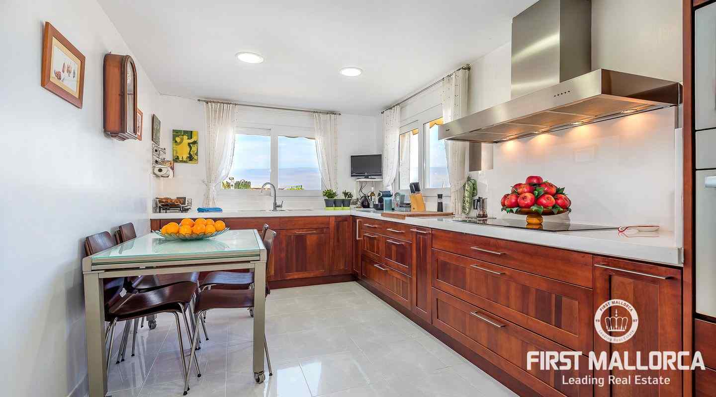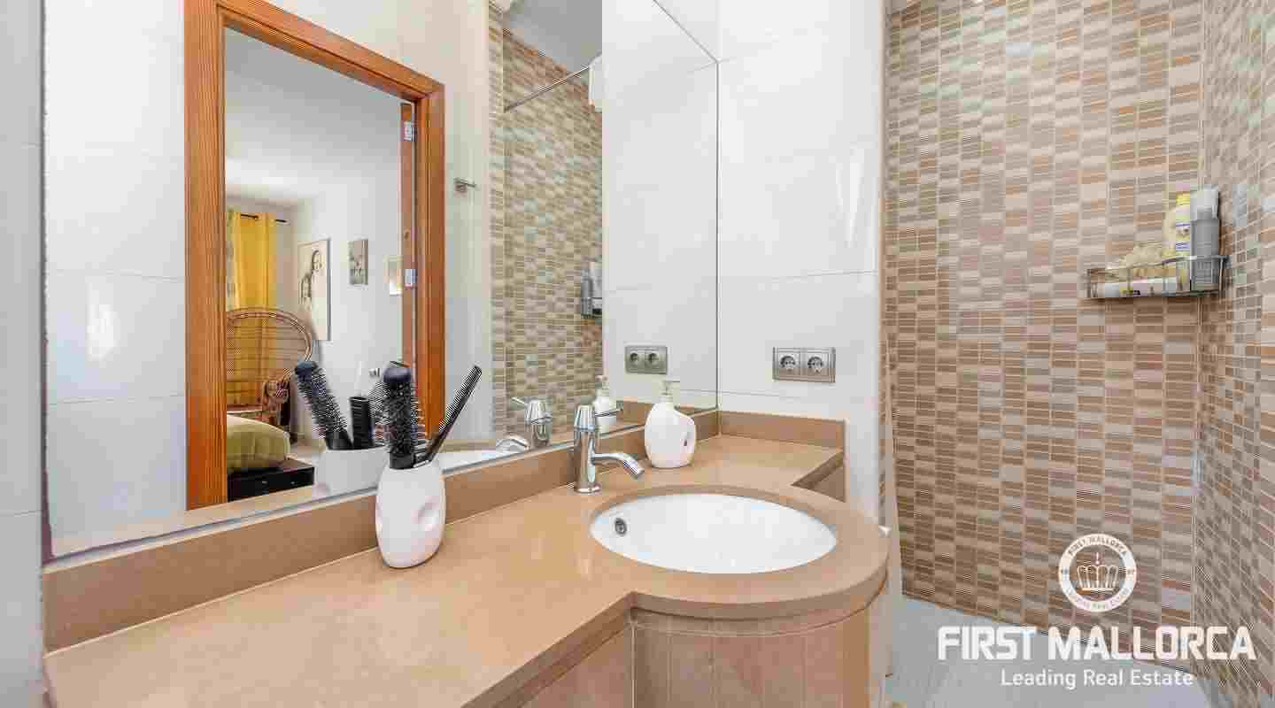 On the ground floor, the property has an entrance area, a living room with high ceilings, a modern, fully equipped and separate kitchen, 2 bedrooms, one of them with bathroom en suite, and a laundry room. From the living room a staircase leads to the upper floor with 2 double bedrooms, each with bathroom en suite, as well as a cozy upper sea view terrace. All rooms offer views to the sea.