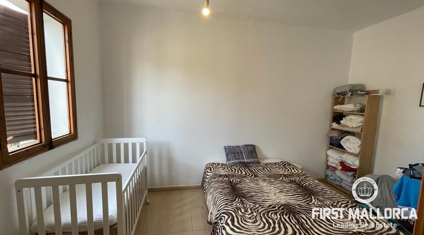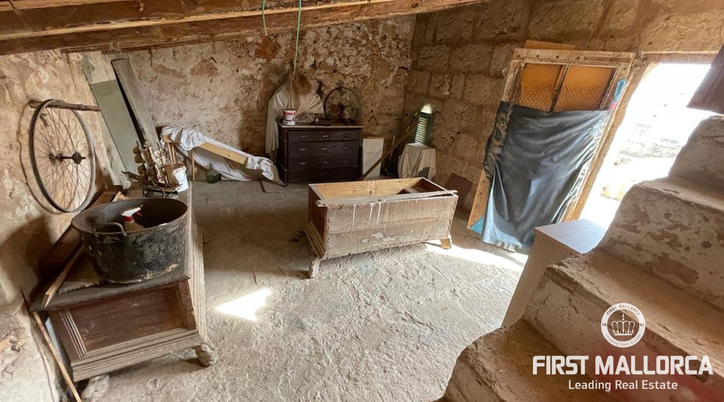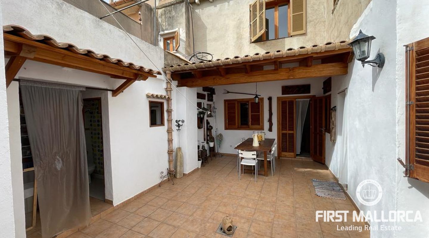 Two-storey typical Majorcan village house with interior patio. The house is distributed in two independent flats. The upper floor consists of three bedrooms, a bathroom, living-dining room, kitchen with access to a small terrace, utility room and pantry. The ground floor offers four bedrooms, a bathroom, a kitchen and a utility room. There is also a patio with a little porch and an outside toilet. The roof loft offers the possibility of an extension and a roof terrace with wide views to Llucmajor completes the amenities.