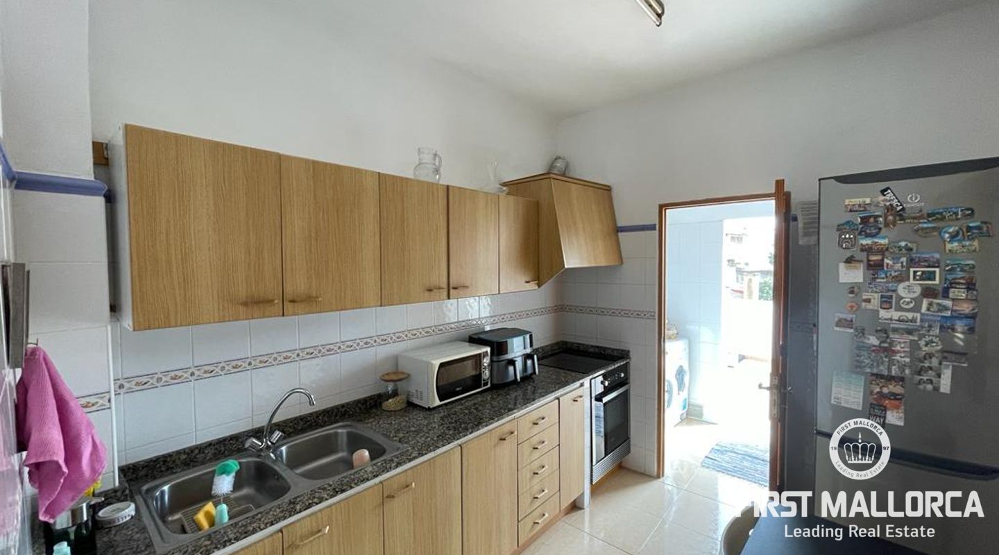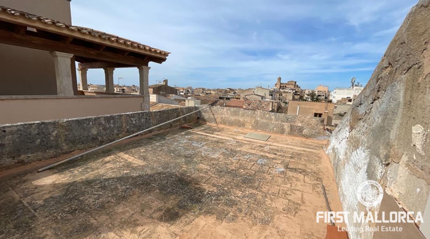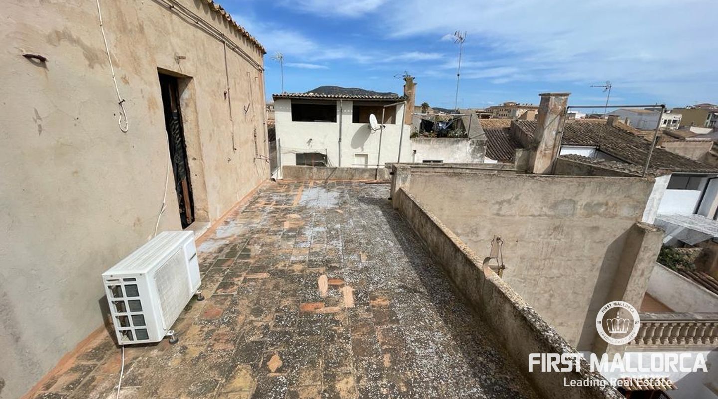 Two-storey typical Majorcan village house with interior patio. The house is distributed in two independent flats. The upper floor consists of three bedrooms, a bathroom, living-dining room, kitchen with access to a small terrace, utility room and pantry. The ground floor offers four bedrooms, a bathroom, a kitchen and a utility room. There is also a patio with a little porch and an outside toilet. The roof loft offers the possibility of an extension and a roof terrace with wide views to Llucmajor completes the amenities.