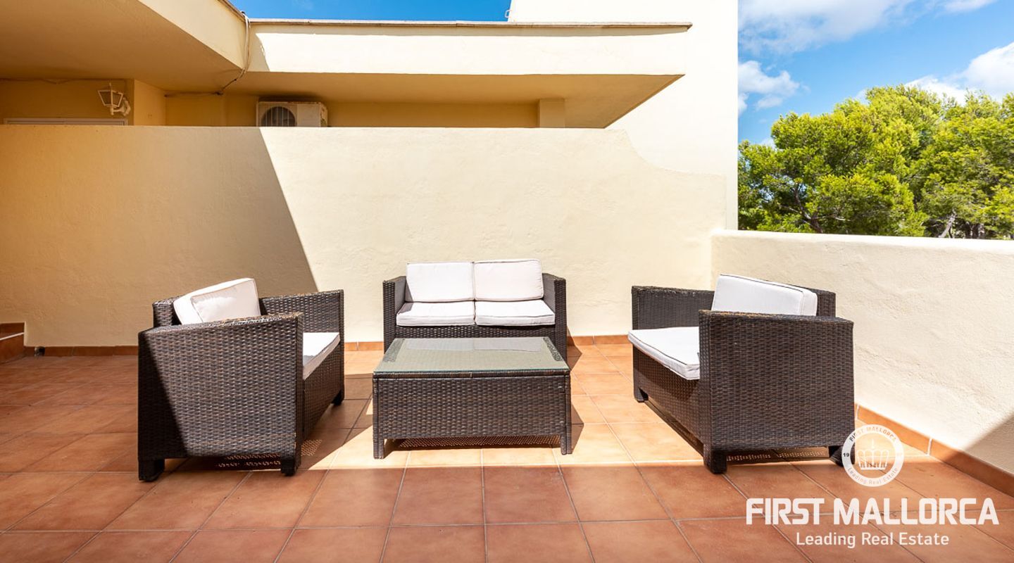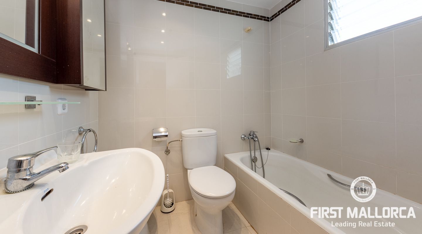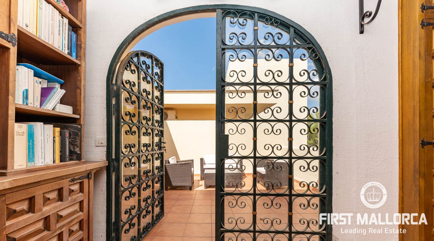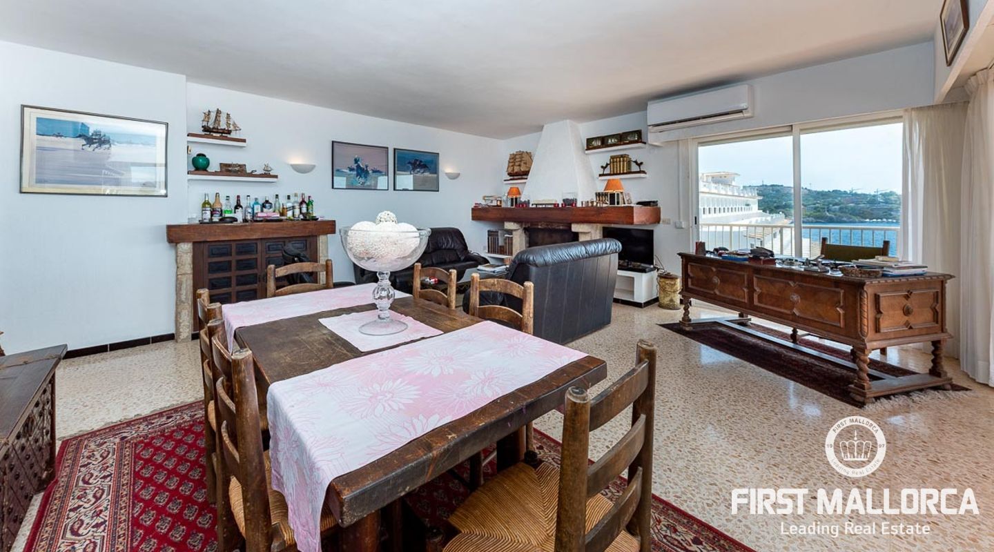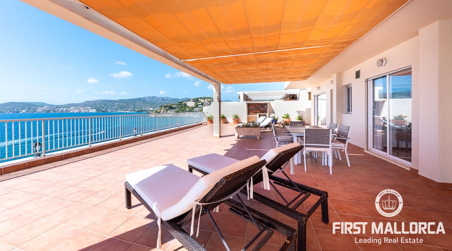 Stunning first line penthouse with endless sea views in a quiet area of Santa Ponsa near Costa de la Calma with private access to the sea and a natural dug out pool. The main entrance leads you to a large entrance hall with a beautiful handmade metal door, natural wood and reading area where there are two bedrooms at the back of the apartment sharing a bathroom. There is a guest toilet past the hallway, an enclosed kitchen still in the style of the 70's and the main living room which has a beautiful fireplace as well as the master suite on the other side, all sharing the stunning sea views.
