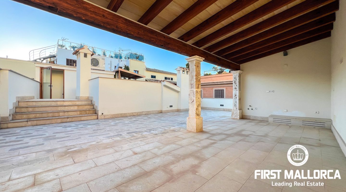 A special highlight of the penthouse is the approximately 60 m² roof terrace. Partially covered, it offers ample space for social evenings or relaxing moments. From here, you can enjoy sweeping views over the rooftops of Palma and the unique atmosphere of the city.