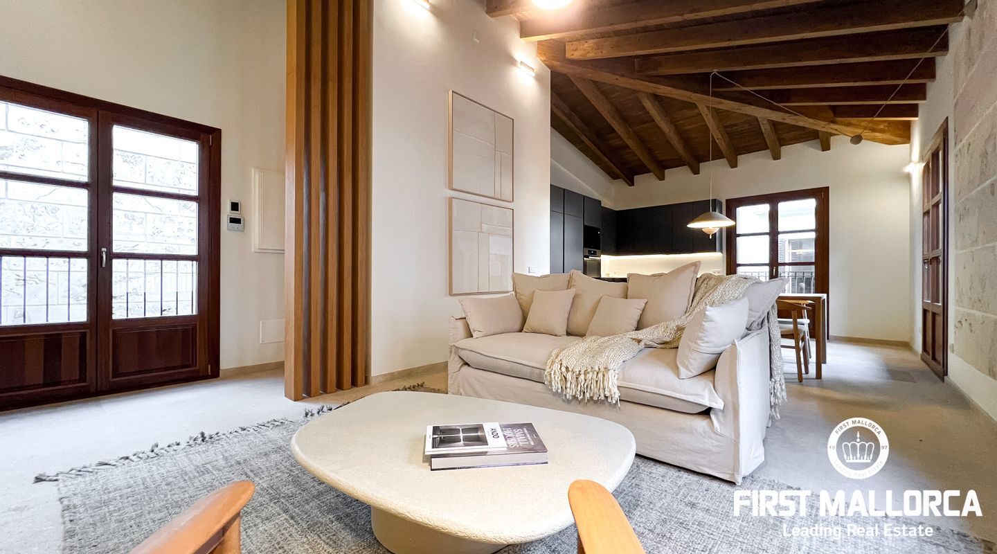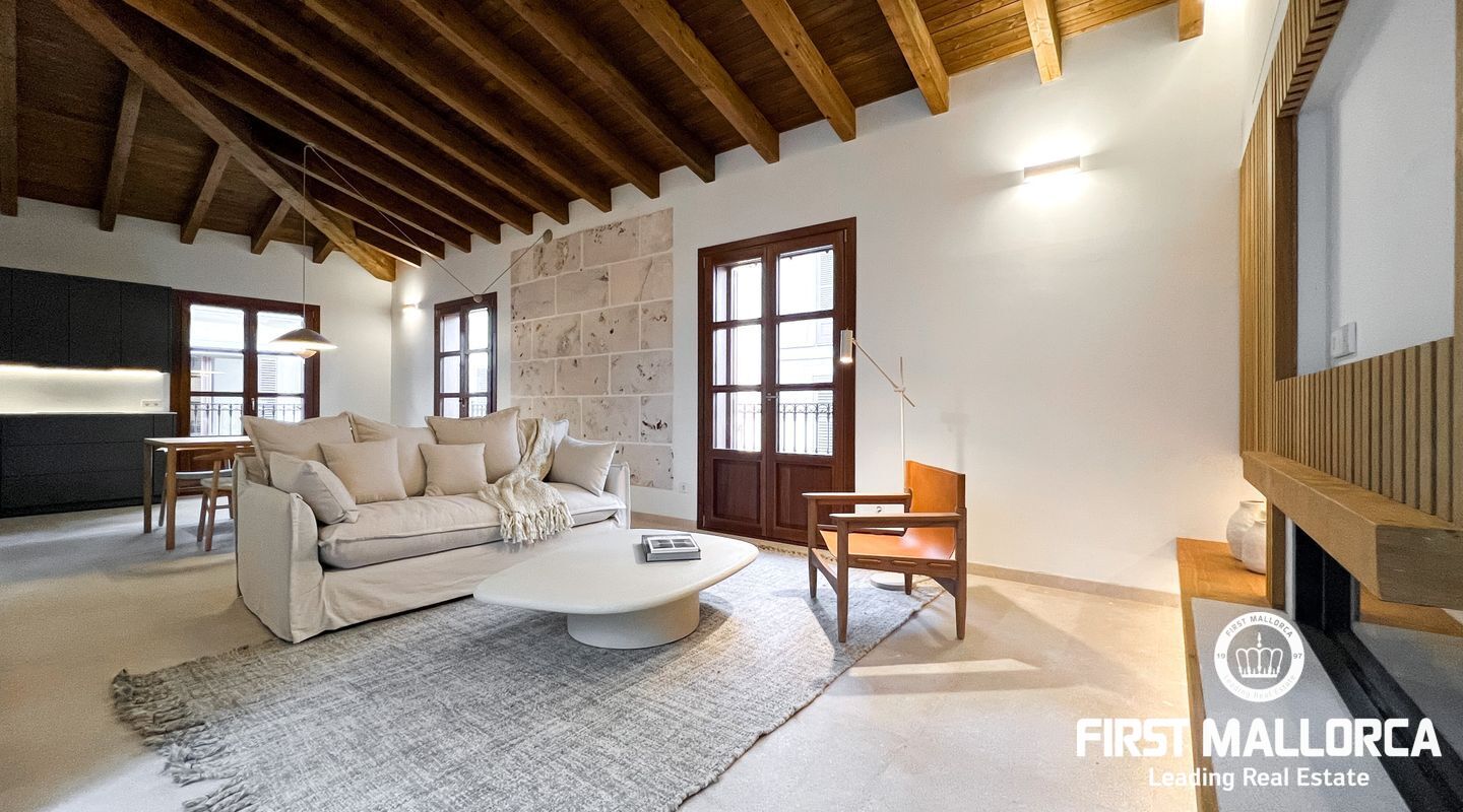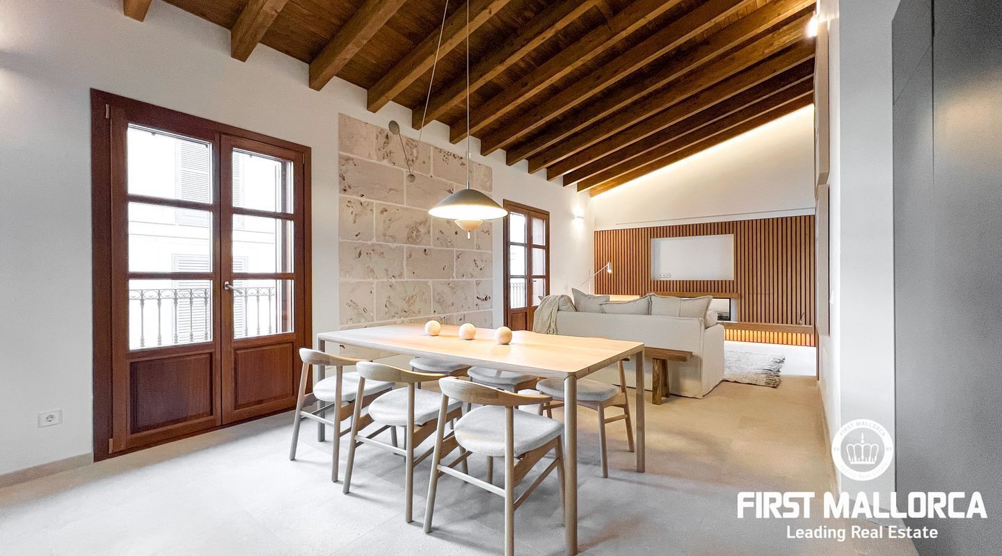 In the heart of Palma's historic old town, this luxurious penthouse awaits you in a building over 100 years old. The property was meticulously and lovingly renovated in 2020, combining timeless elegance with modern living comfort. With only four exclusive residential units, it offers the utmost privacy and tranquility in a prime central location.