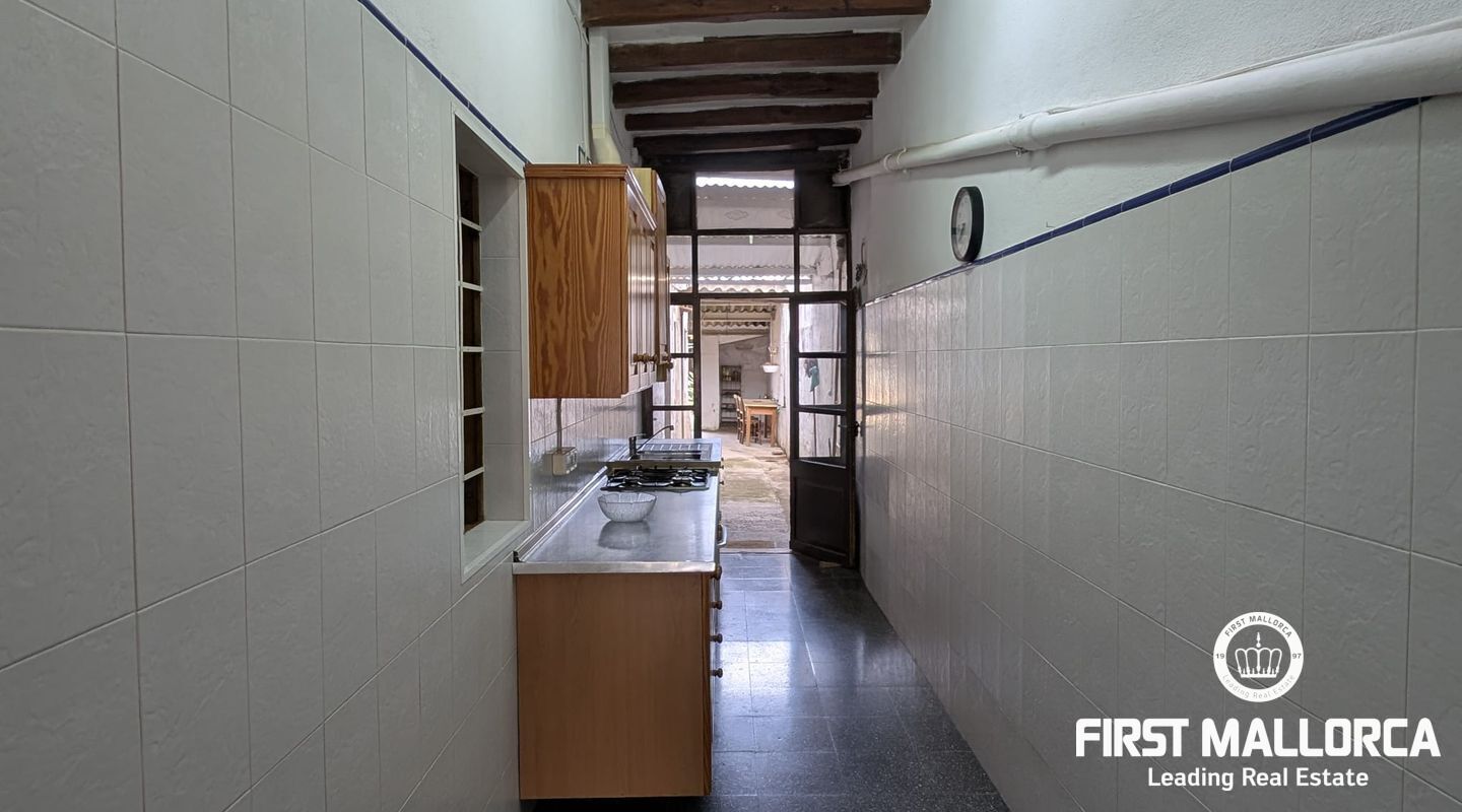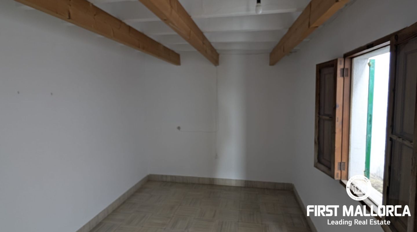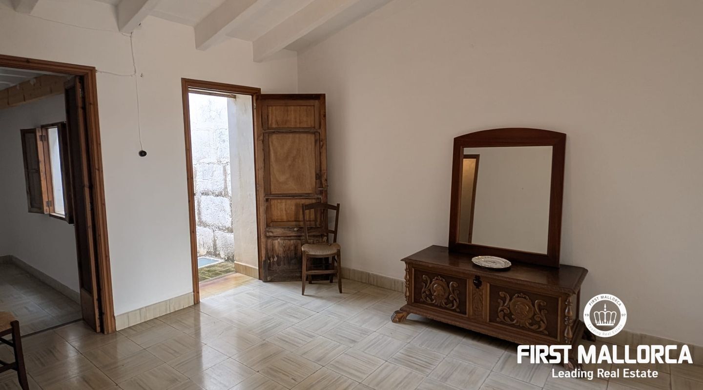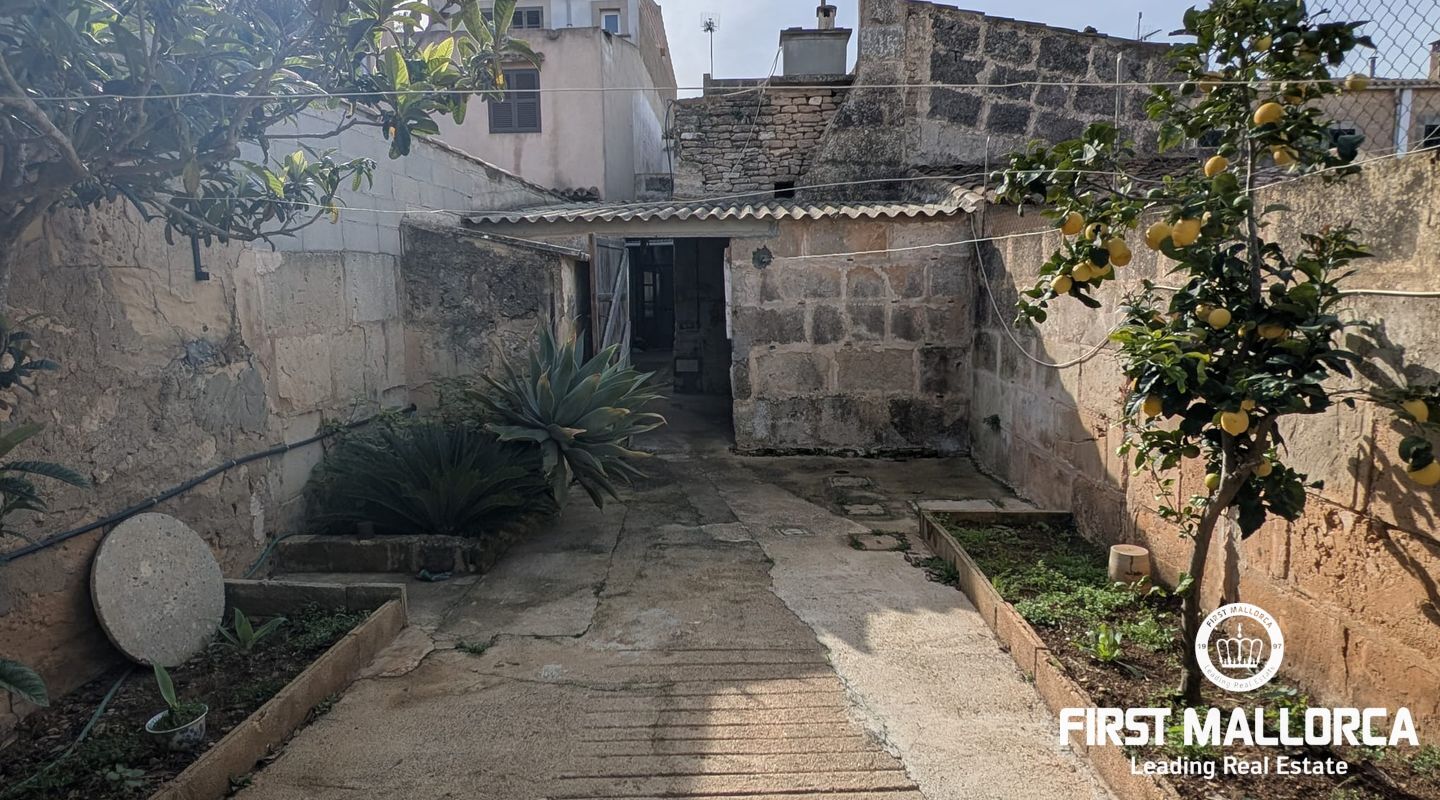 Charming Mallorcan rustic-style house, filled with tradition and authenticity. Its architectural elements add warmth and character, creating a cozy home with unique charm. Spread over two floors, the property features three bedrooms, two bathrooms (one en suite), and the possibility of adding a fourth bedroom to suit your needs. At the back, a beautiful private garden provides the perfect space to enjoy peaceful outdoor moments. Additionally, the property includes a spacious garage with access to another street, offering the possibility of dividing the estate into two and creating an additional home or a guest apartment. Equipped with a water cistern, as well as electricity and running water supply, the house also has pre-installation for radiators, ensuring comfort and practicality. Thanks to its thick walls, the house stays cool in the summer and retains warmth in the winter. With its main façade facing south, the home enjoys abundant natural light throughout the day, creating a bright and welcoming atmosphere. With a small investment, this charming townhouse can be transformed into an exclusive and luxurious residence.