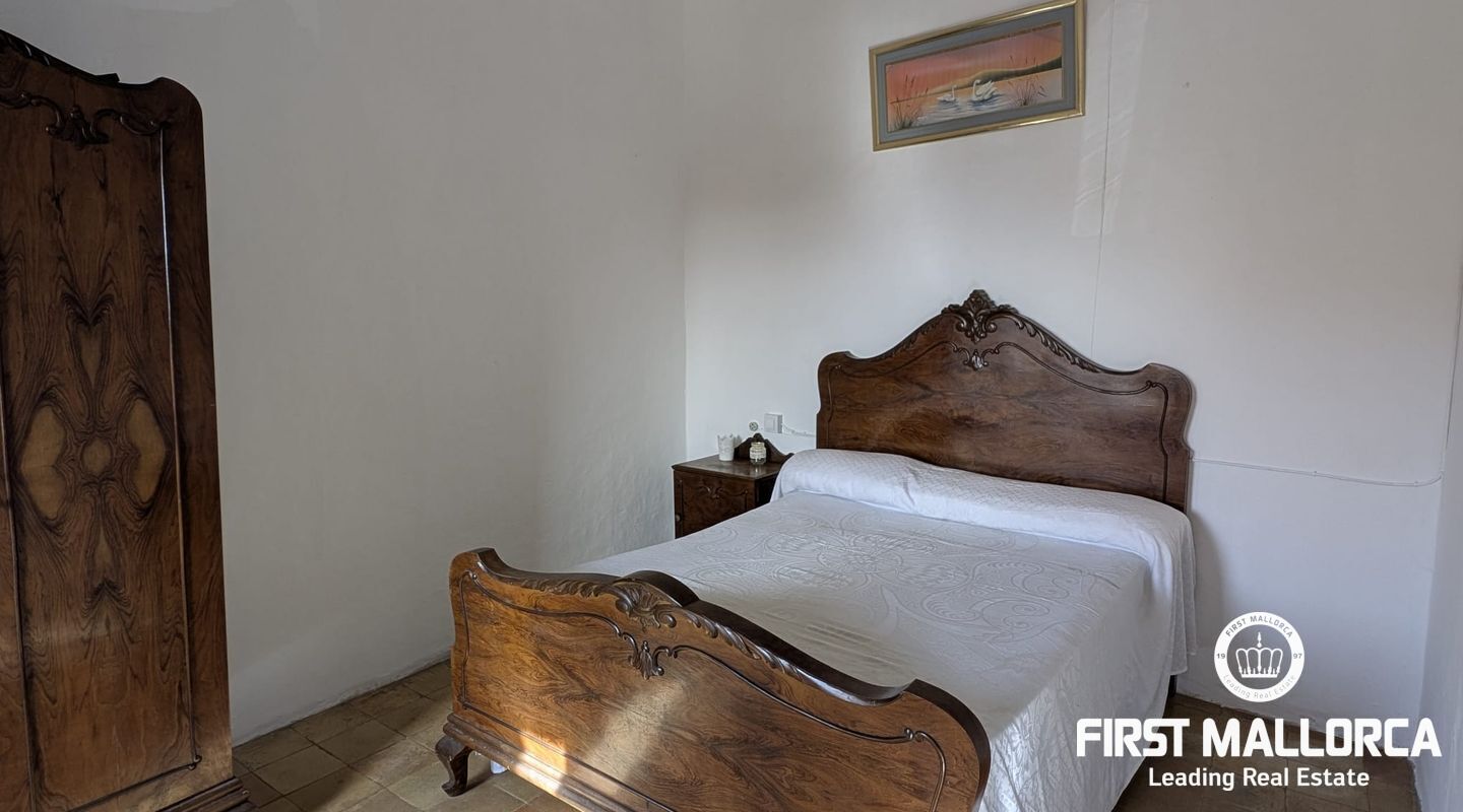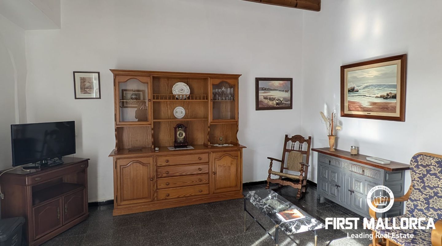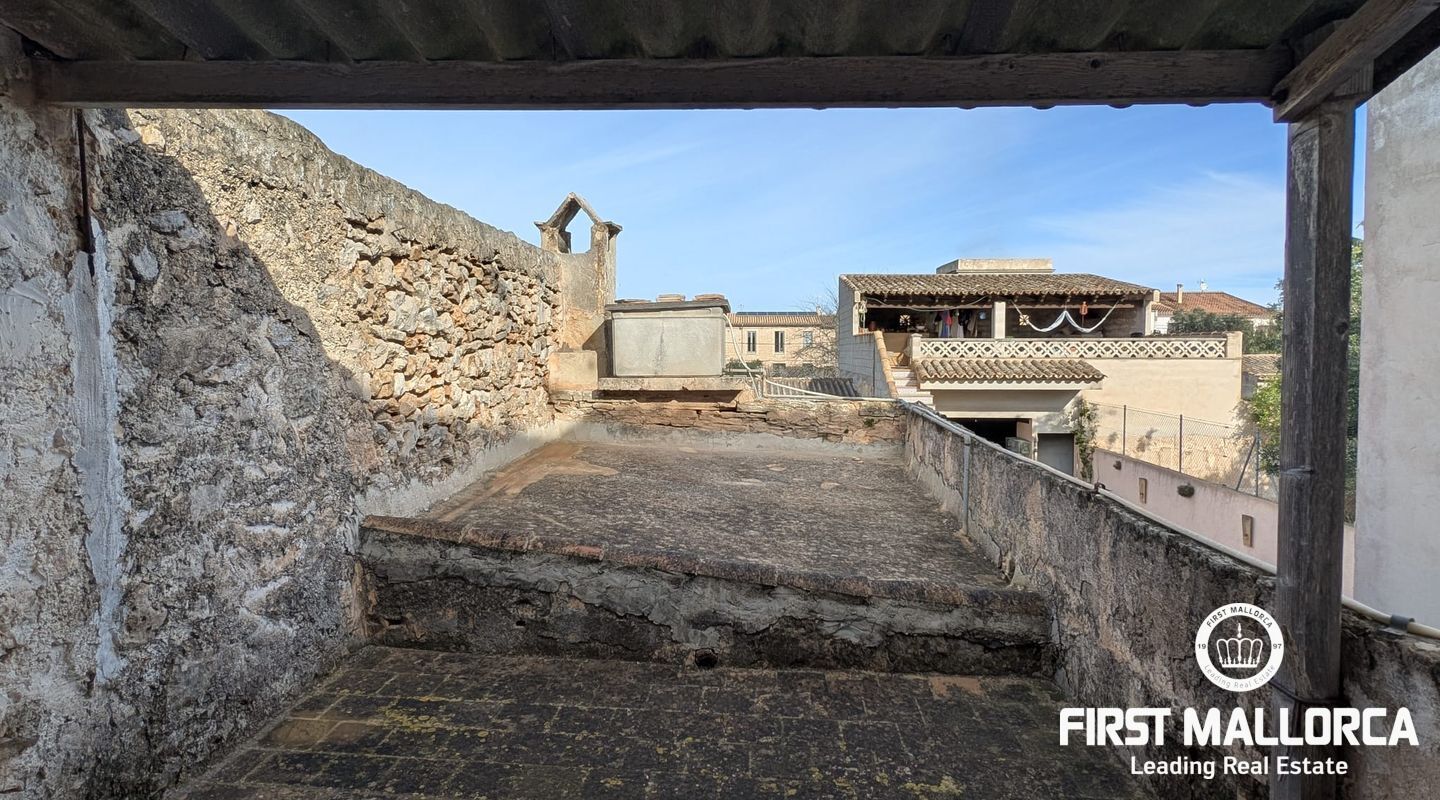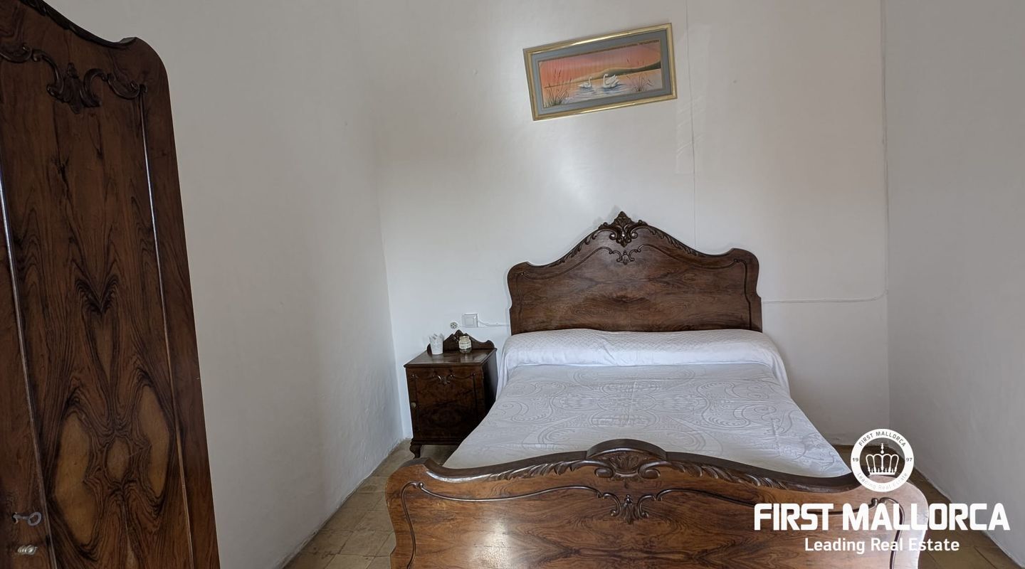 Charming Mallorcan rustic-style house, filled with tradition and authenticity. Its architectural elements add warmth and character, creating a cozy home with unique charm. Spread over two floors, the property features three bedrooms, two bathrooms (one en suite), and the possibility of adding a fourth bedroom to suit your needs. At the back, a beautiful private garden provides the perfect space to enjoy peaceful outdoor moments. Additionally, the property includes a spacious garage with access to another street, offering the possibility of dividing the estate into two and creating an additional home or a guest apartment. Equipped with a water cistern, as well as electricity and running water supply, the house also has pre-installation for radiators, ensuring comfort and practicality. Thanks to its thick walls, the house stays cool in the summer and retains warmth in the winter. With its main façade facing south, the home enjoys abundant natural light throughout the day, creating a bright and welcoming atmosphere. With a small investment, this charming townhouse can be transformed into an exclusive and luxurious residence.