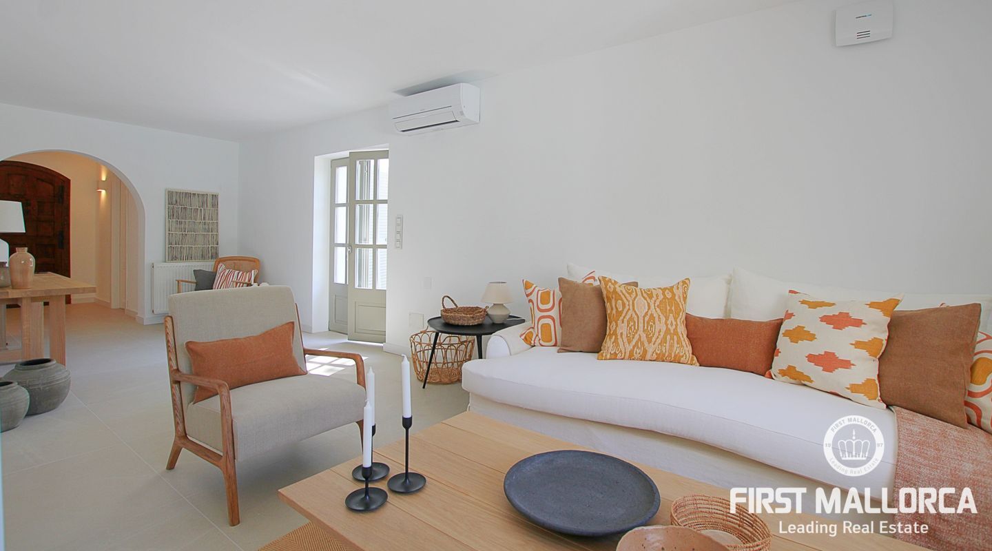 The house has air conditioning with heat pump in all rooms, oil central heating with radiators, a fully equipped kitchen and is furnished with all the necessities to move in, both on the terrace with designer sun loungers and a spectacular table on the lower floor, and inside.