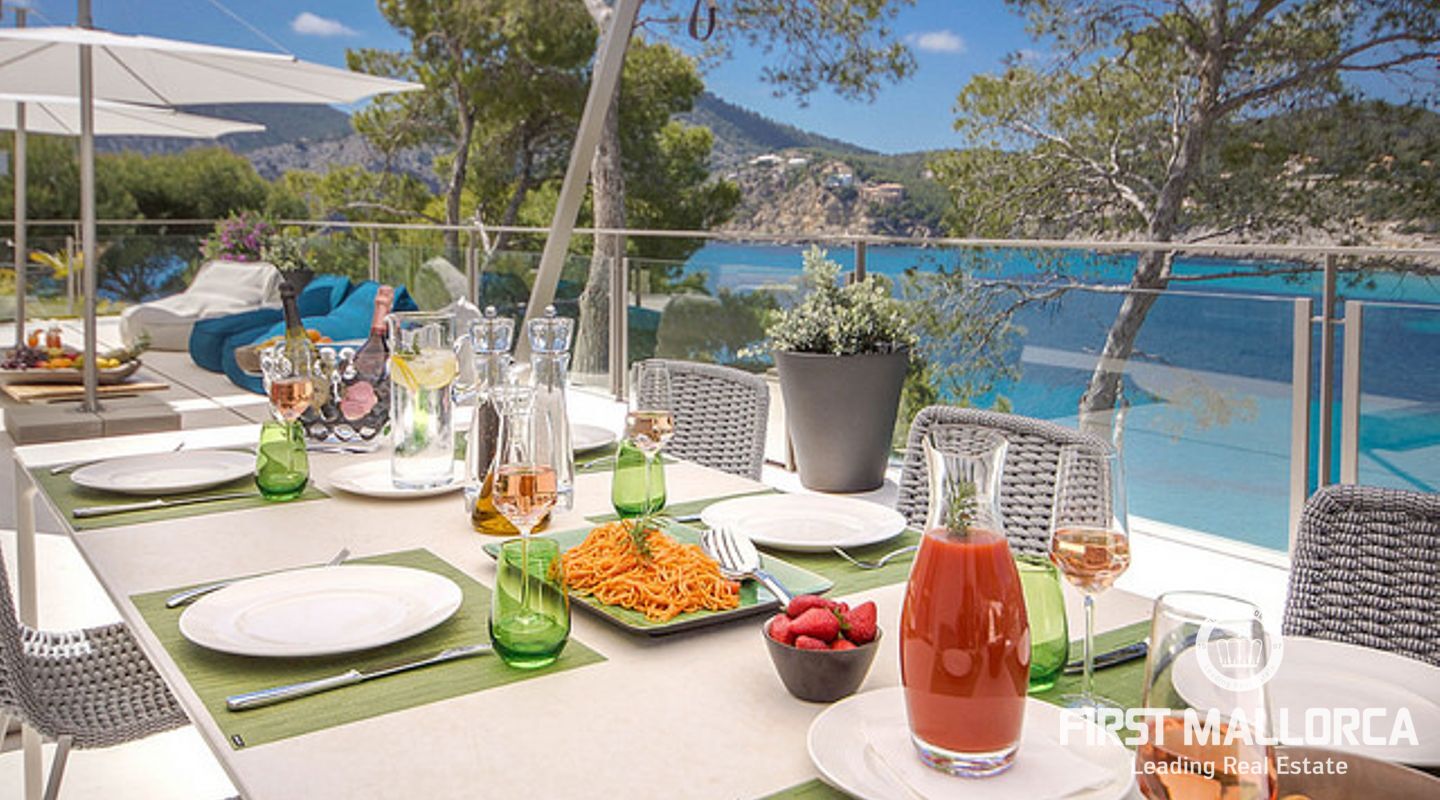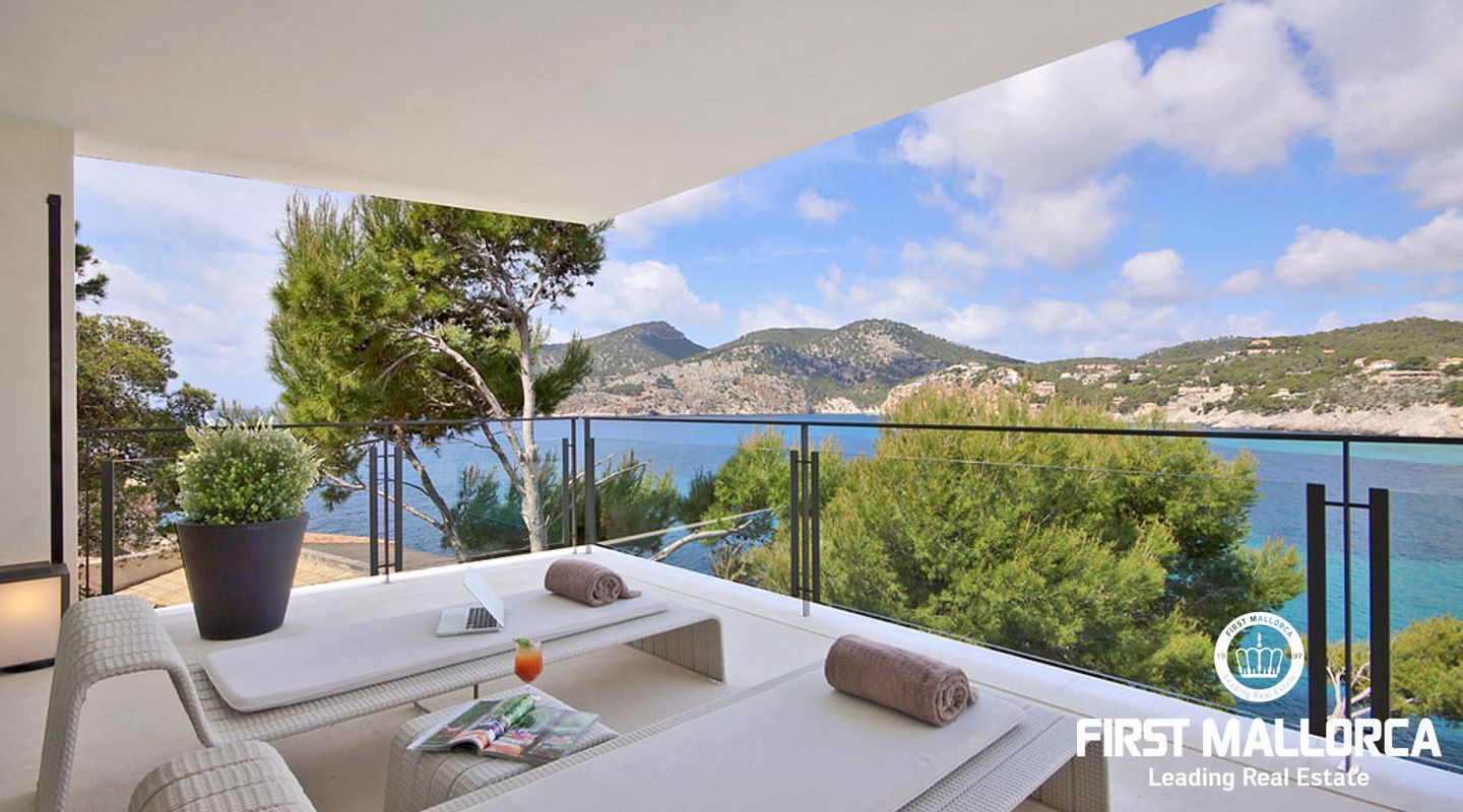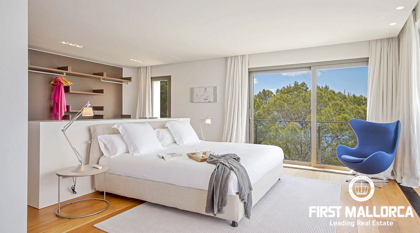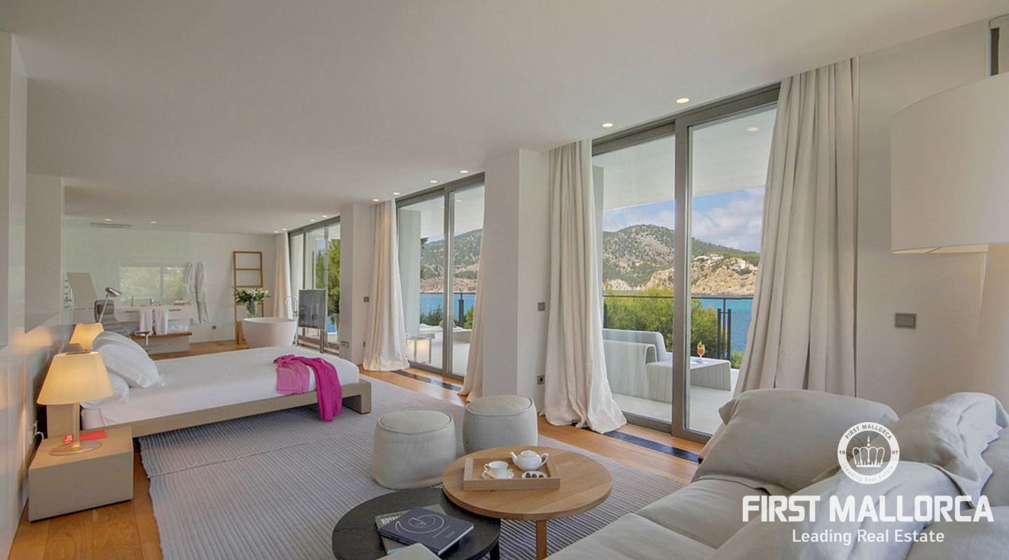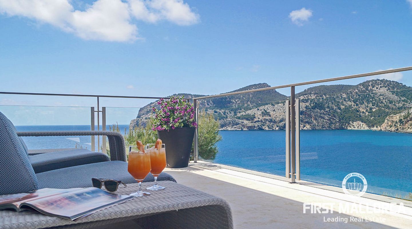 Overlooking the azure waters of the Camp de Mar and the open sea beyond, framed by the Mediterranean pines, it depicts the ultimate in relaxation.