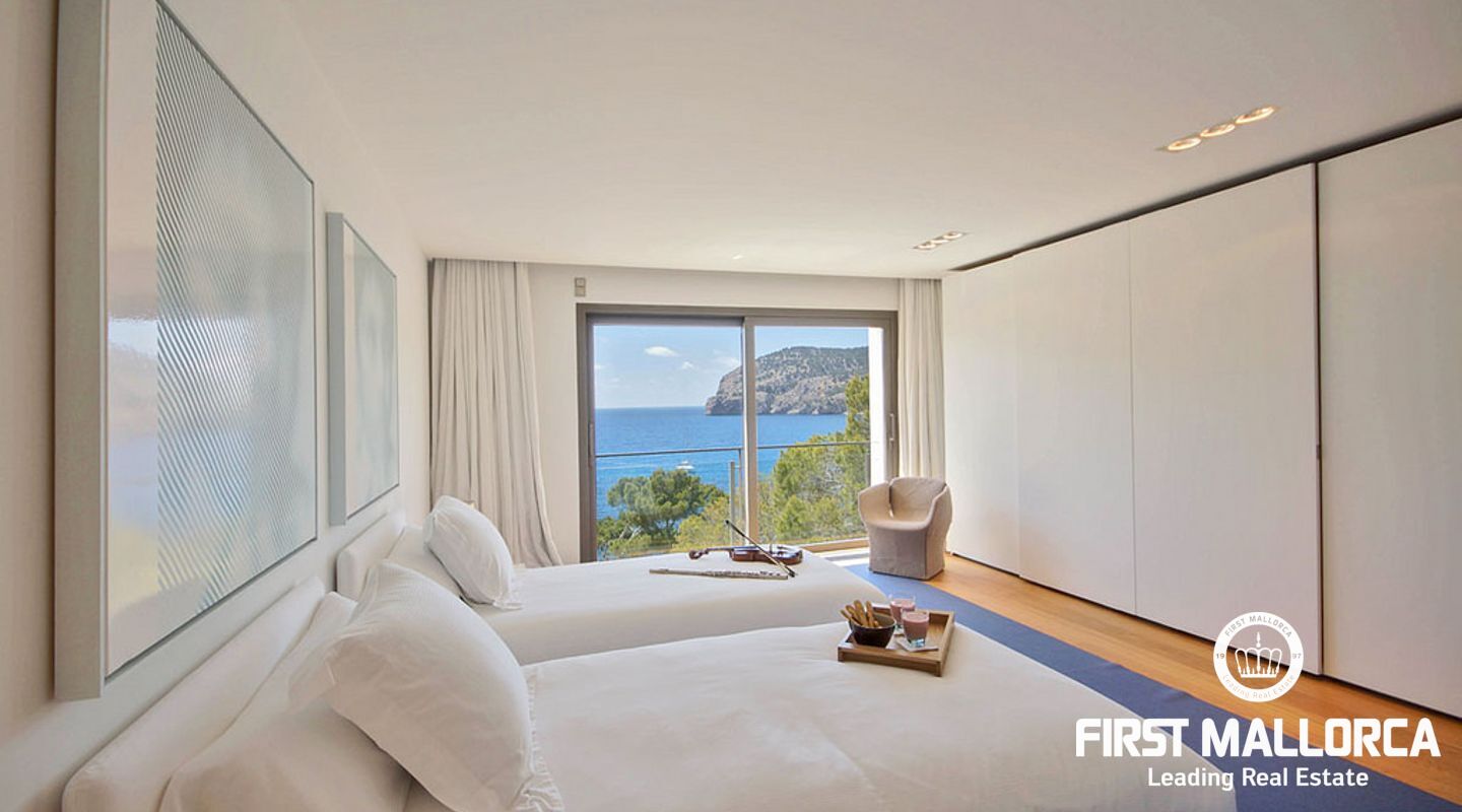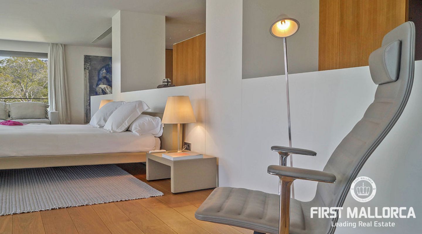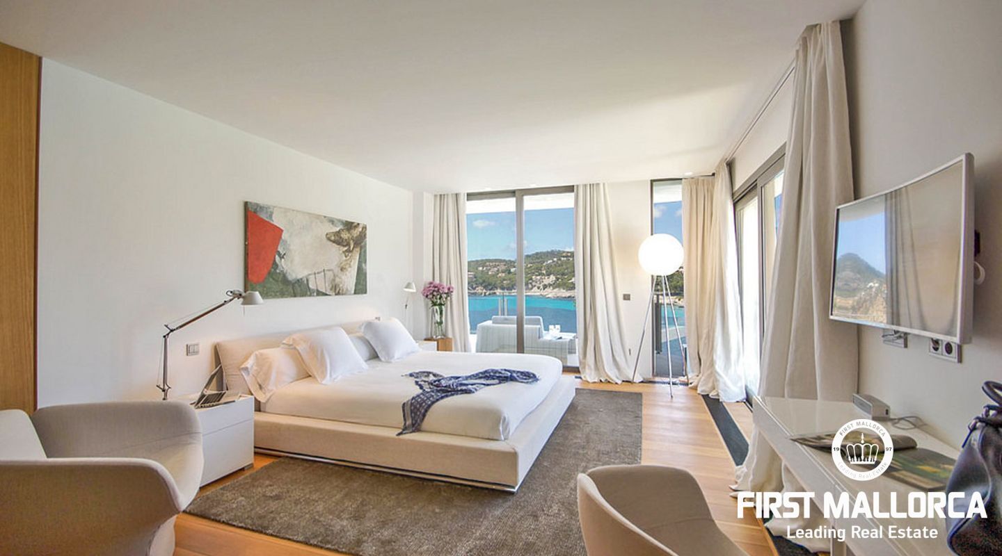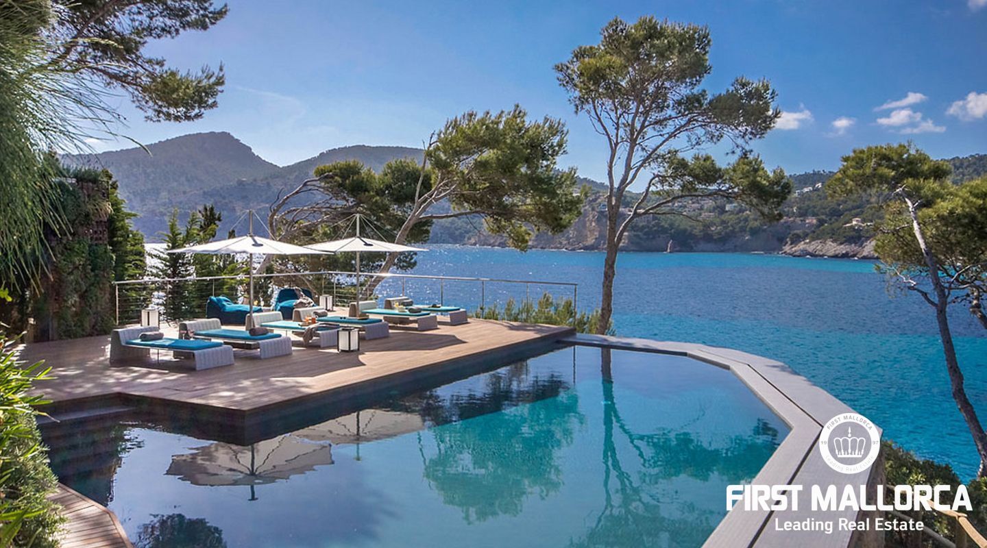 Overlooking the azure waters of the Camp de Mar and the open sea beyond, framed by the Mediterranean pines, it depicts the ultimate in relaxation.