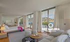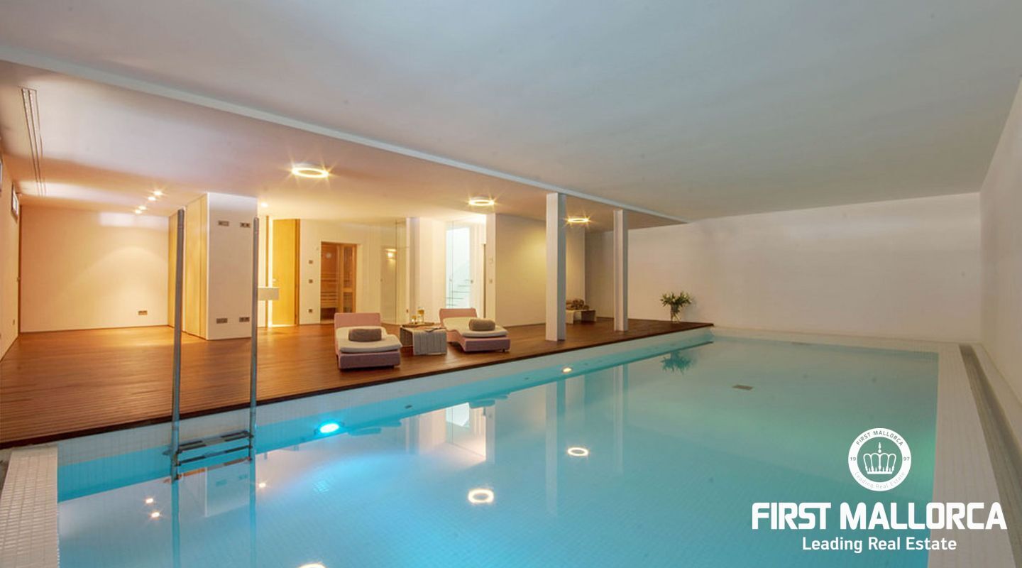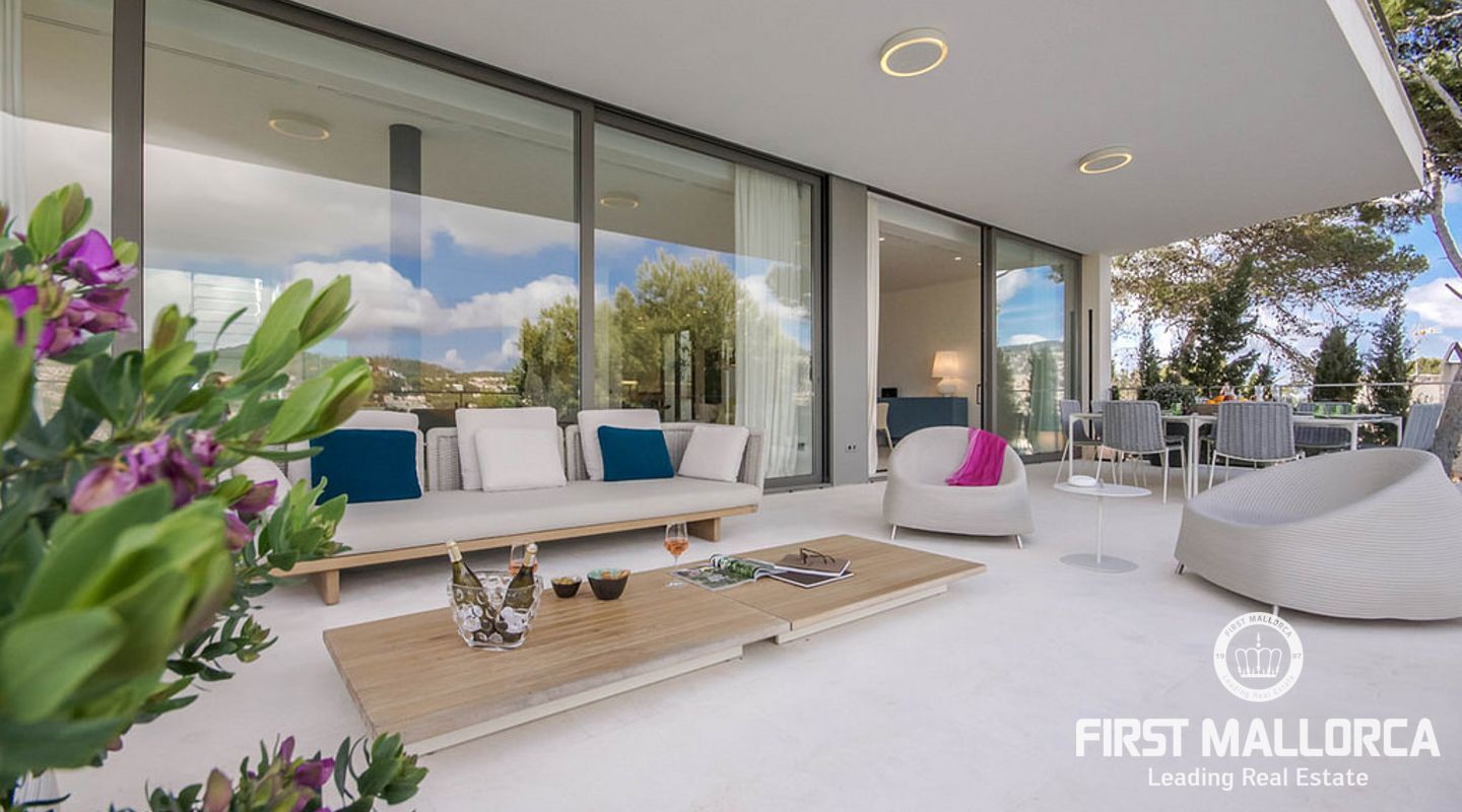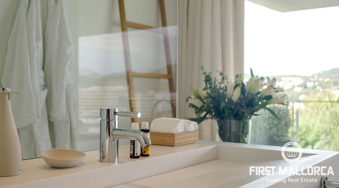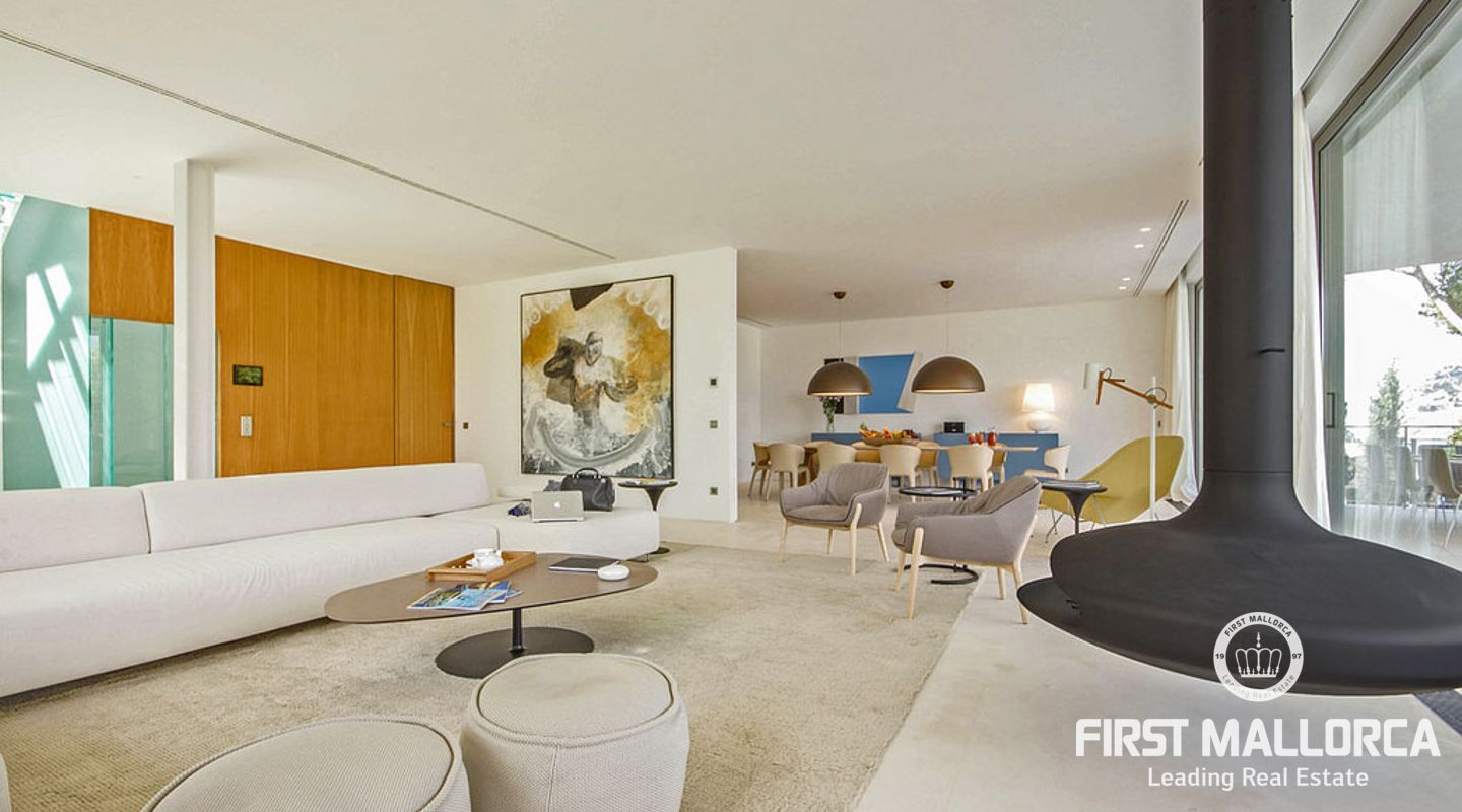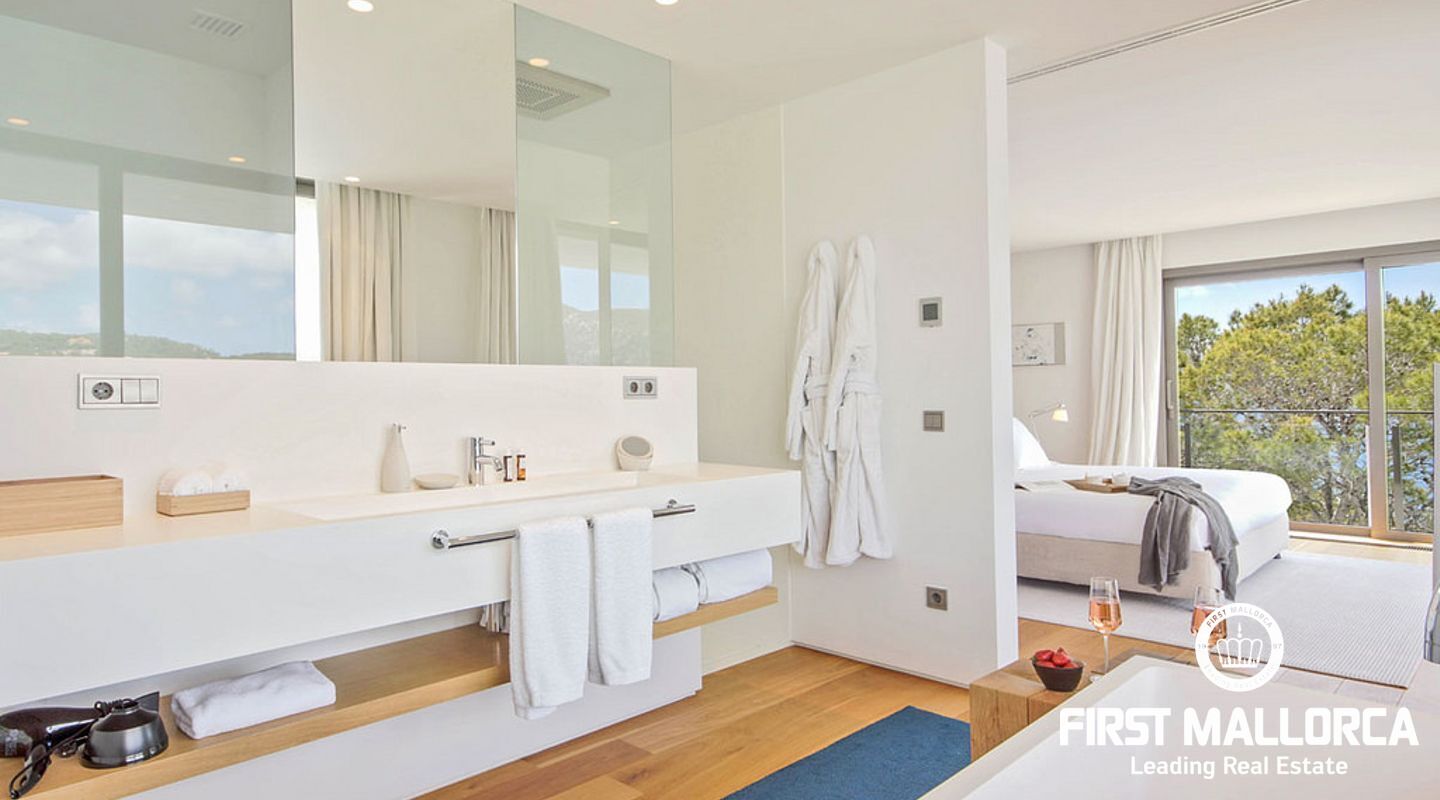 Overlooking the azure waters of the Camp de Mar and the open sea beyond, framed by the Mediterranean pines, it depicts the ultimate in relaxation.