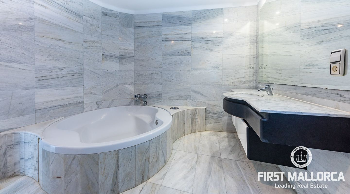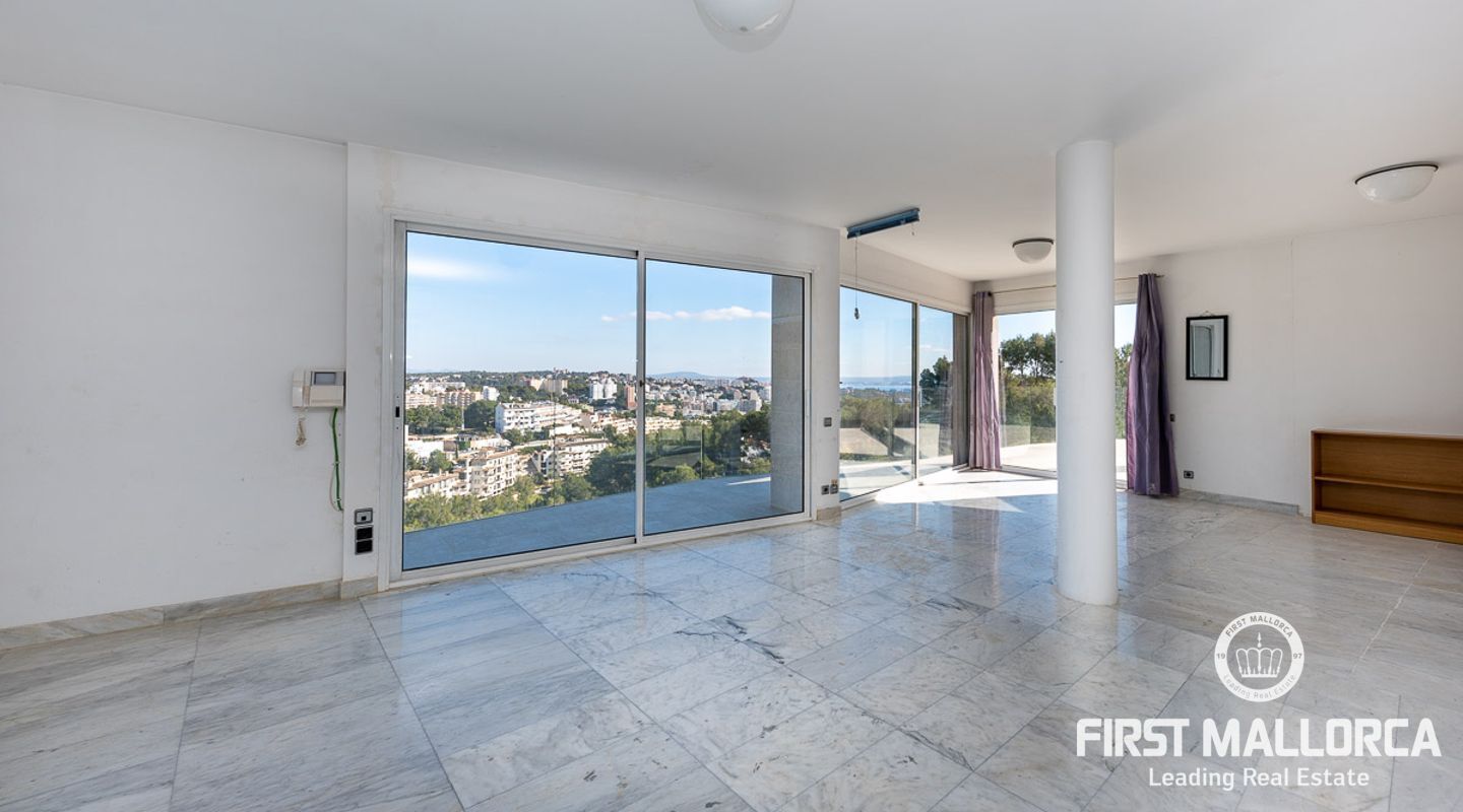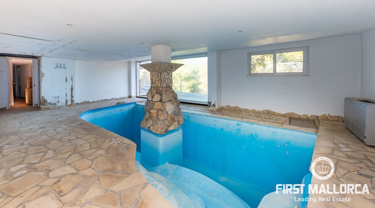 This interesting renovation project, located in the hills of Cas Catala, offers the new owner over 3 floors, with a total of 7 bedrooms and 5 bathrooms, as well as an indoor swimming pool, plenty of space to realise his dream of an individual villa. On the ground floor are the kitchen, the living and dining room, as well as the master bedroom with en-suite bathroom and a dressing room. The lower floor, completely separated from the main house, has 3 bedrooms with separate entrances. In addition to 2 further bedrooms with en-suite bathrooms, there is a large room in the basement at garden level which can be converted into a gym, sauna or games room. In addition, there is an indoor swimming pool and a large outdoor kitchen with adjoining terrace as well as a garage for up to 4 cars. On the top level there is a second living room of 35 m2 with terrace, and there is the possibility to install a jacuzzi or a small pool.An outdoor pool can be built to this. Cas Català offers a good infrastructure all year round and is only a few minutes by car from the capital of Mallorca, Palma. Several beaches, numerous shops, international schools and restaurants are within walking distance. Do not hesitate to make your viewing appointment with your FIRST MALLORCA agent today.