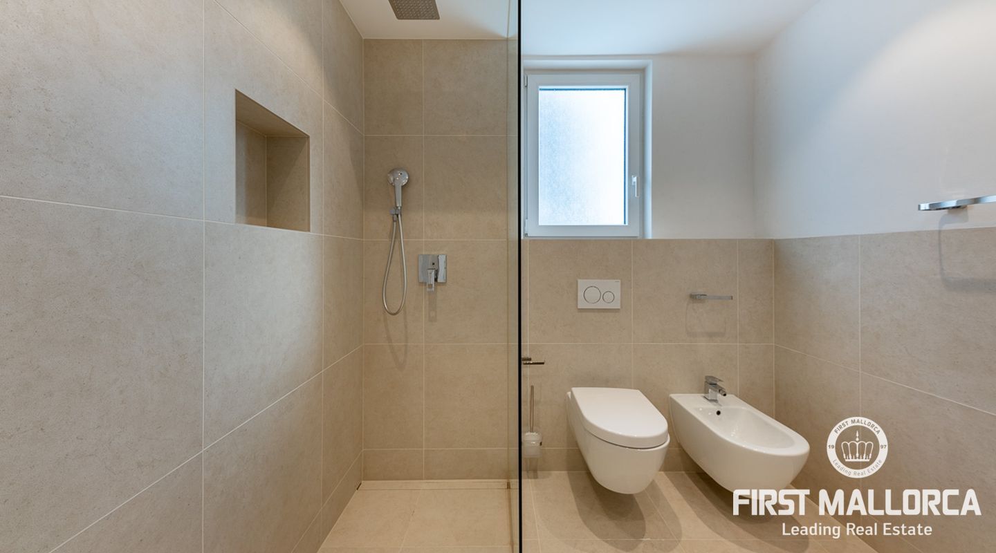 This ready to move in modern villa offers 3 bedrooms with their respective bathrooms and a separate apartment with another double bedroom and bathroom at the pool level. The views are panoramic, sea views. The propierty is equipped with a central heating, underfloor heating, air conditioning throughout, electric blinds at the floor to ceiling windows, saltwater pool and much more. There are two exterior parkings.