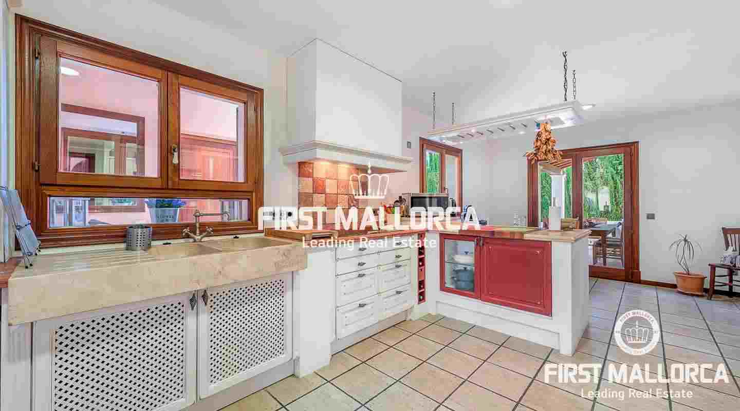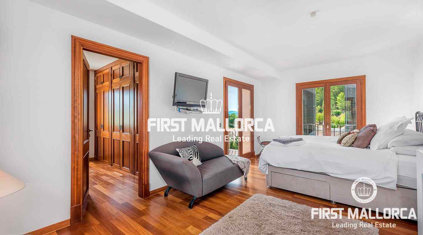 Going up a wide staircase to the first floor, it consists of four bright bedrooms with fitted wardrobes, unobstructed mountain views, three bathrooms (two en suite).