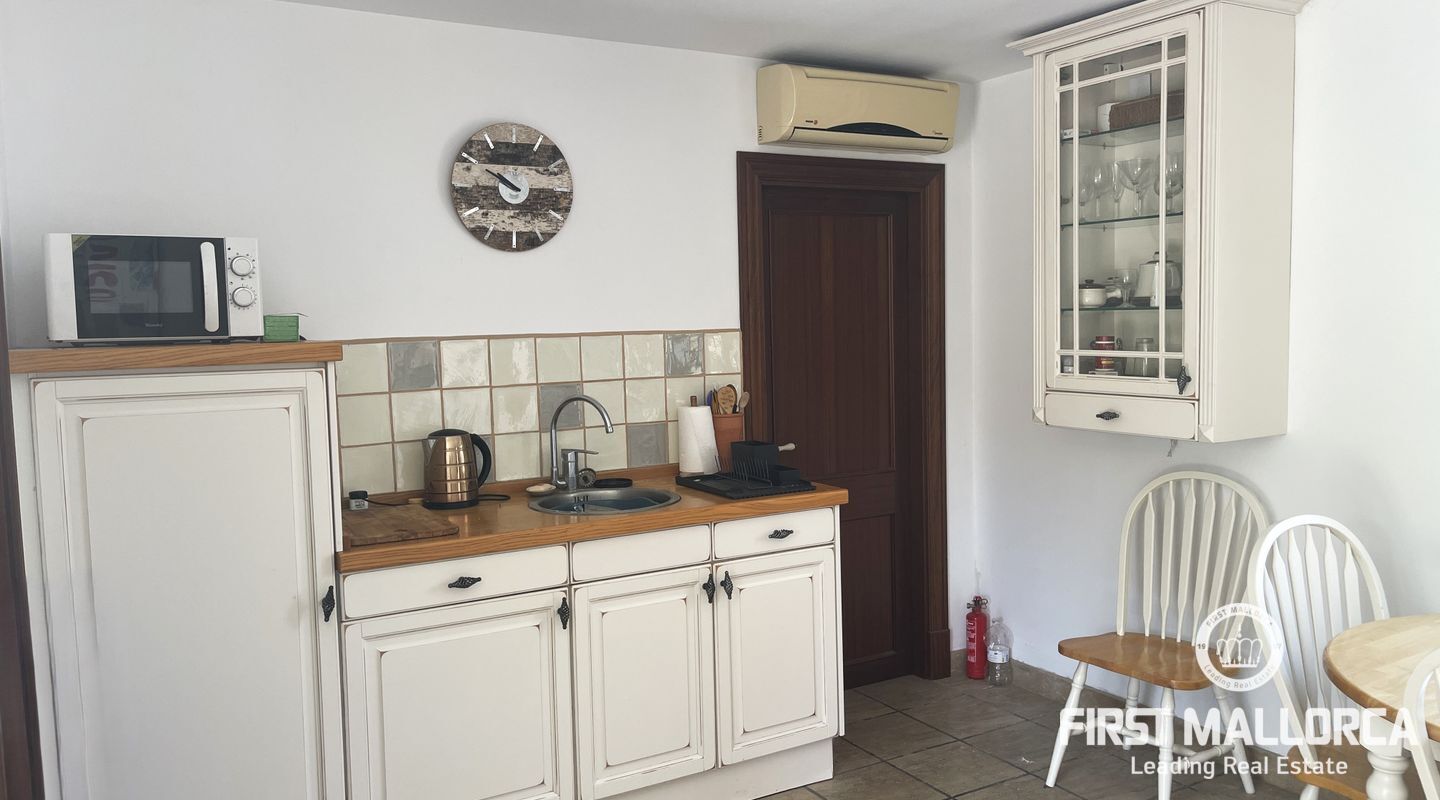 A guest house is fully equipped with a kitchen, living room, and a shower room, perfect for hosting family or friends in total privacy, or even as additional work space.