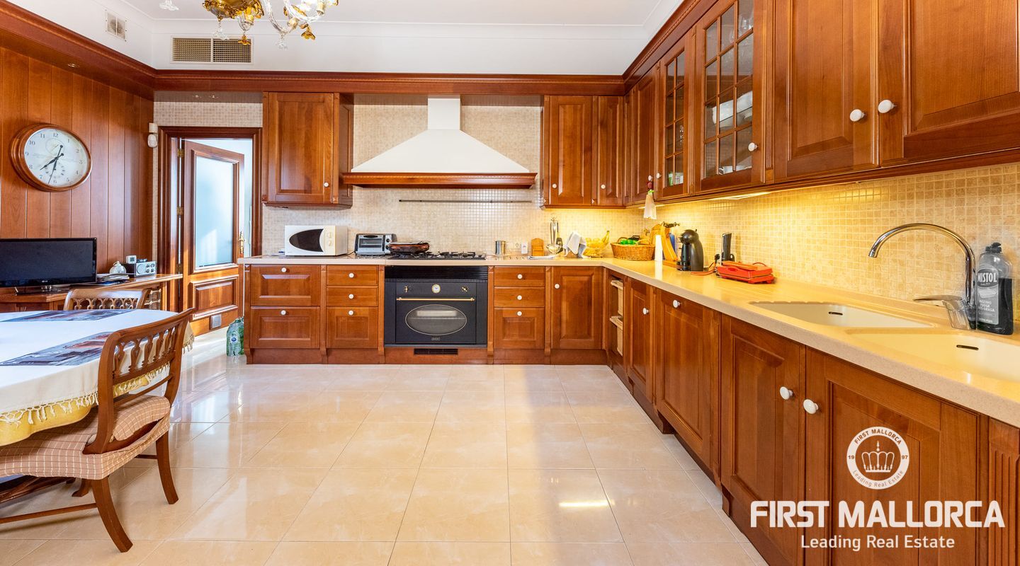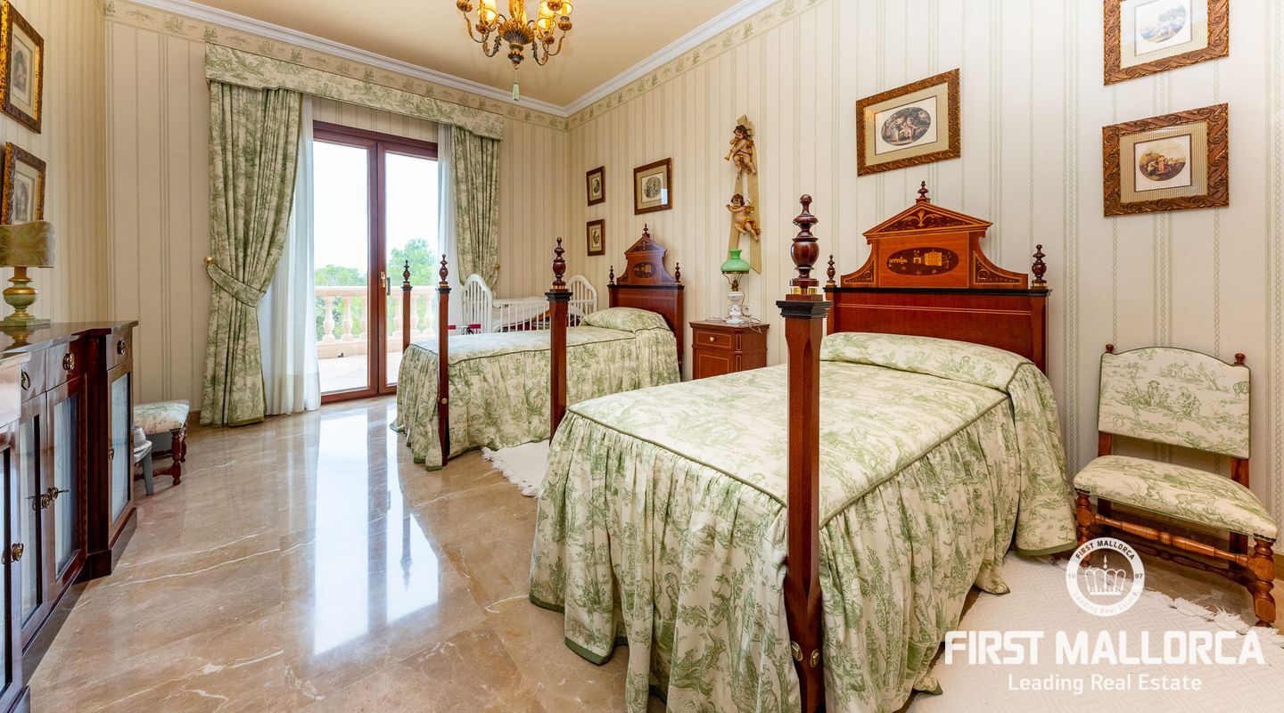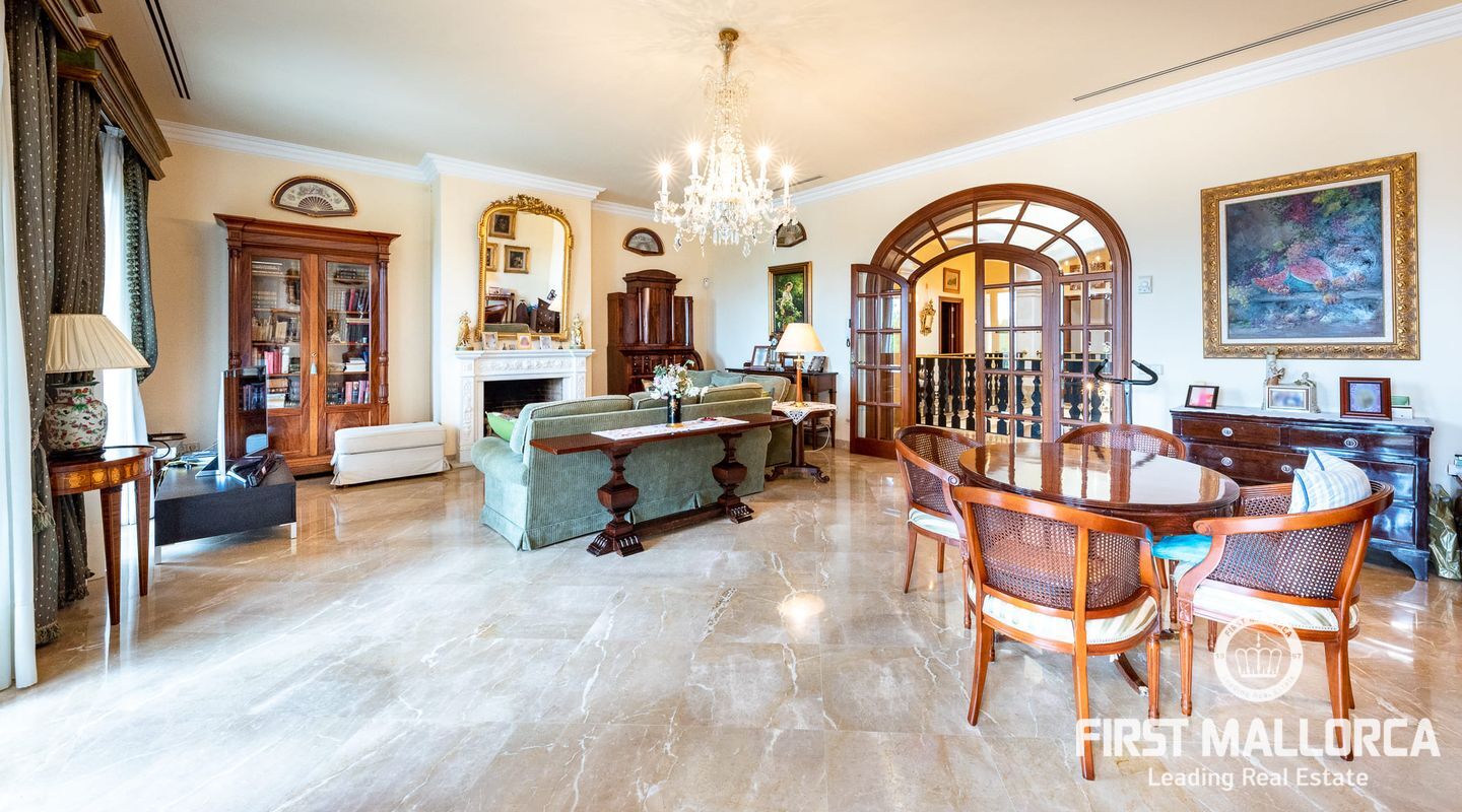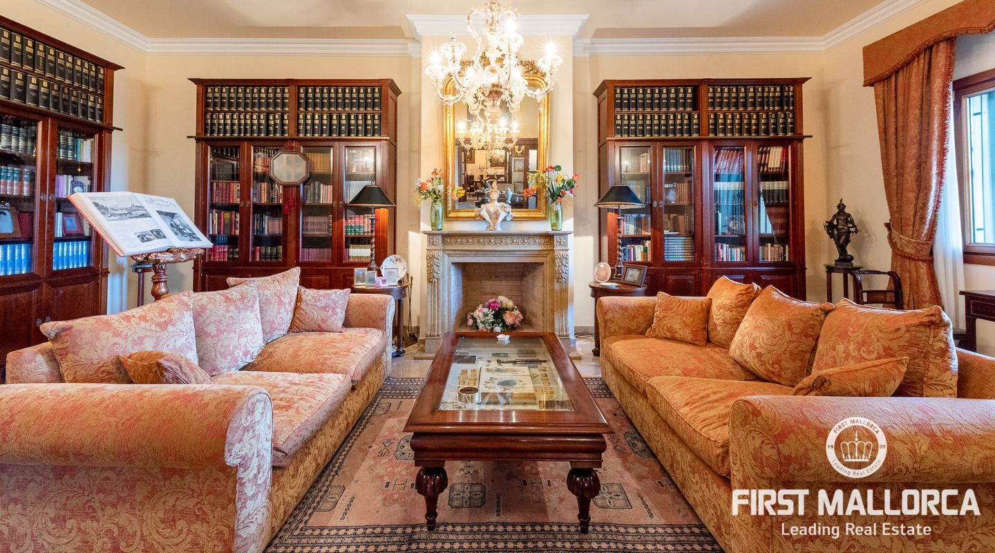 On the upper floor there is another living room with fireplace and access to another terrace, which offers marvellous sea views to the bay of Palma. From the gallery there are 4 further bedrooms, each with a bathroom en suite.