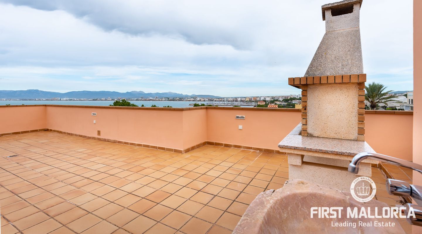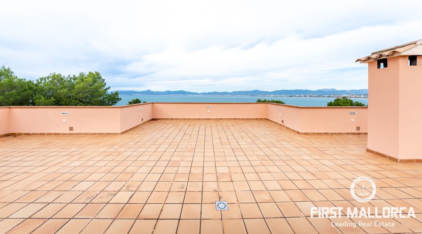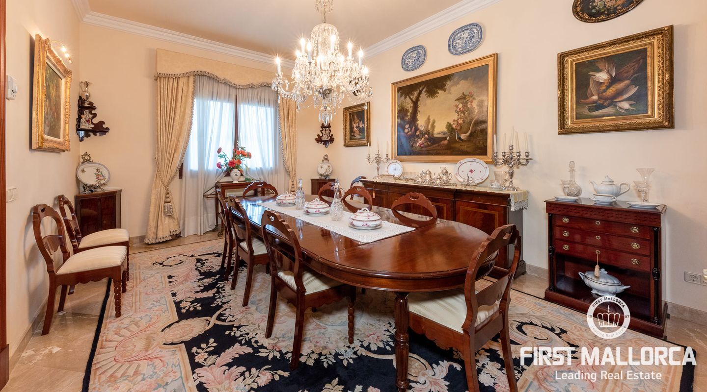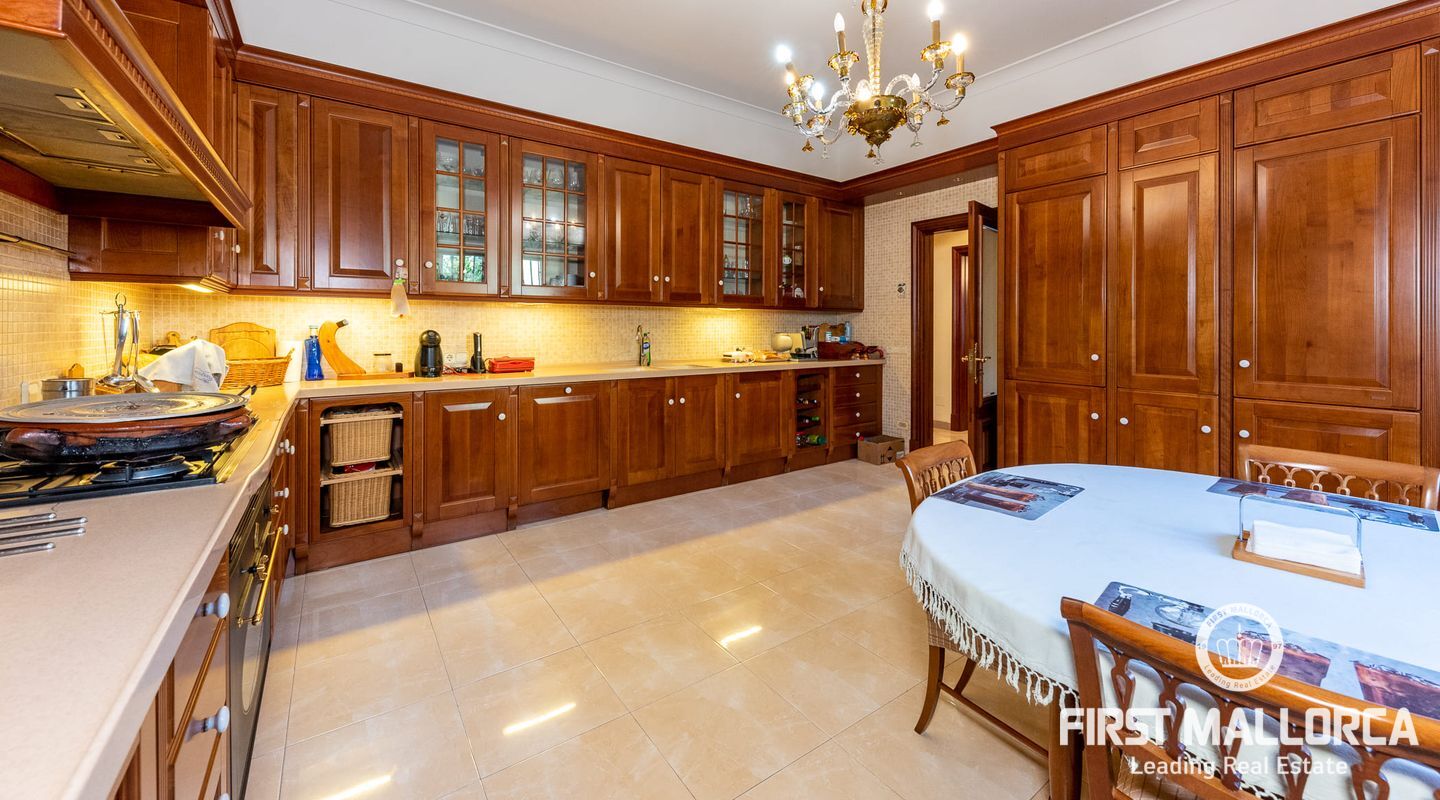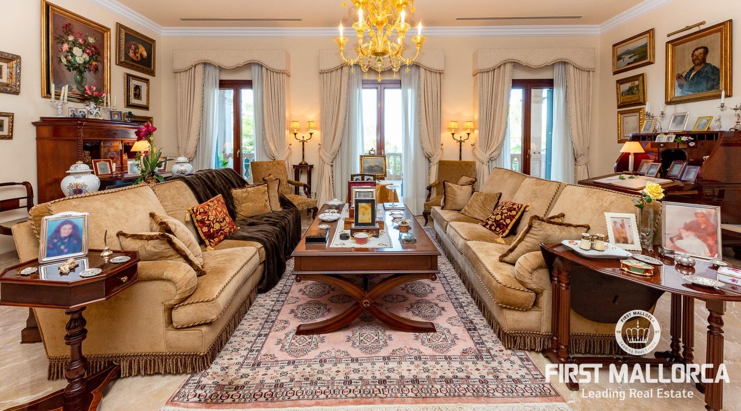 On the upper floor there is another living room with fireplace and access to another terrace, which offers marvellous sea views to the bay of Palma. From the gallery there are 4 further bedrooms, each with a bathroom en suite.
