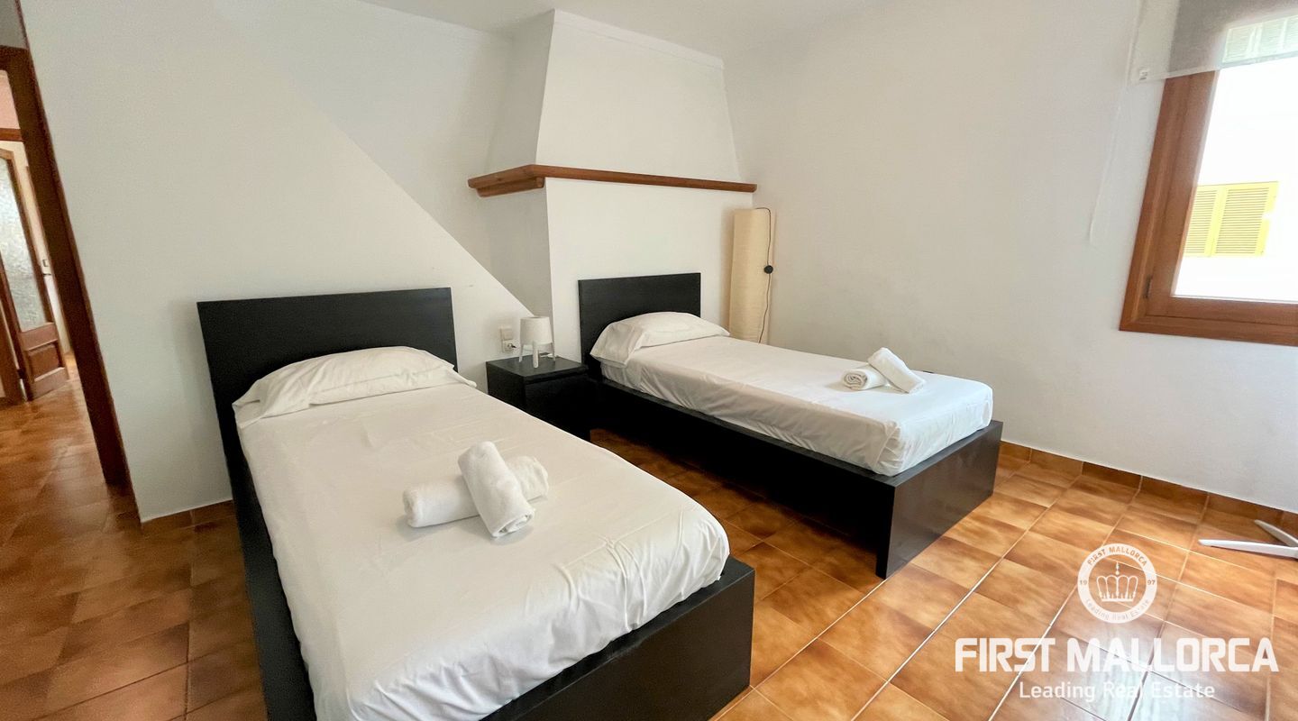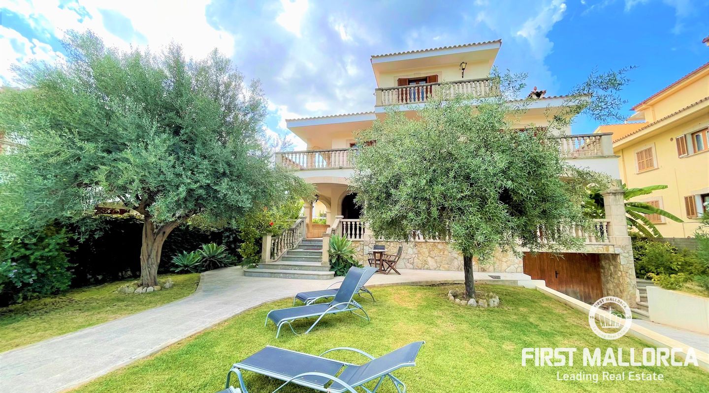 Beautiful large villa with garden located only just 20m from the beaches of Puerto Alcudia. The property of 343m2, that sits on a plot of 588m2, is distributed between two floors with six double bedrooms and three full bathrooms, a fully fitted kitchen and two spacious living rooms both equipped with fireplaces. With the large furnished terraces that total 110m2, it offers enough space to enjoy the mediterranean summer evenings with family and friends. Air conditioning (h/c) can be found throughout the villa. With a current holiday rental licence, this property provides a desirable opportunity, for both investors and as homeowners, to live only a few minutes from the beaches of Puerto de Alcudia, where you can enjoy picturesque narrow streets and a great selection of restaurants and cafés. As well as being surrounded by history and beauty, this perfect location also guarantees access to all essential amenities and services. Do not hesitate to contact our FIRST MALLORCA team for further information and an appointment to view the property.