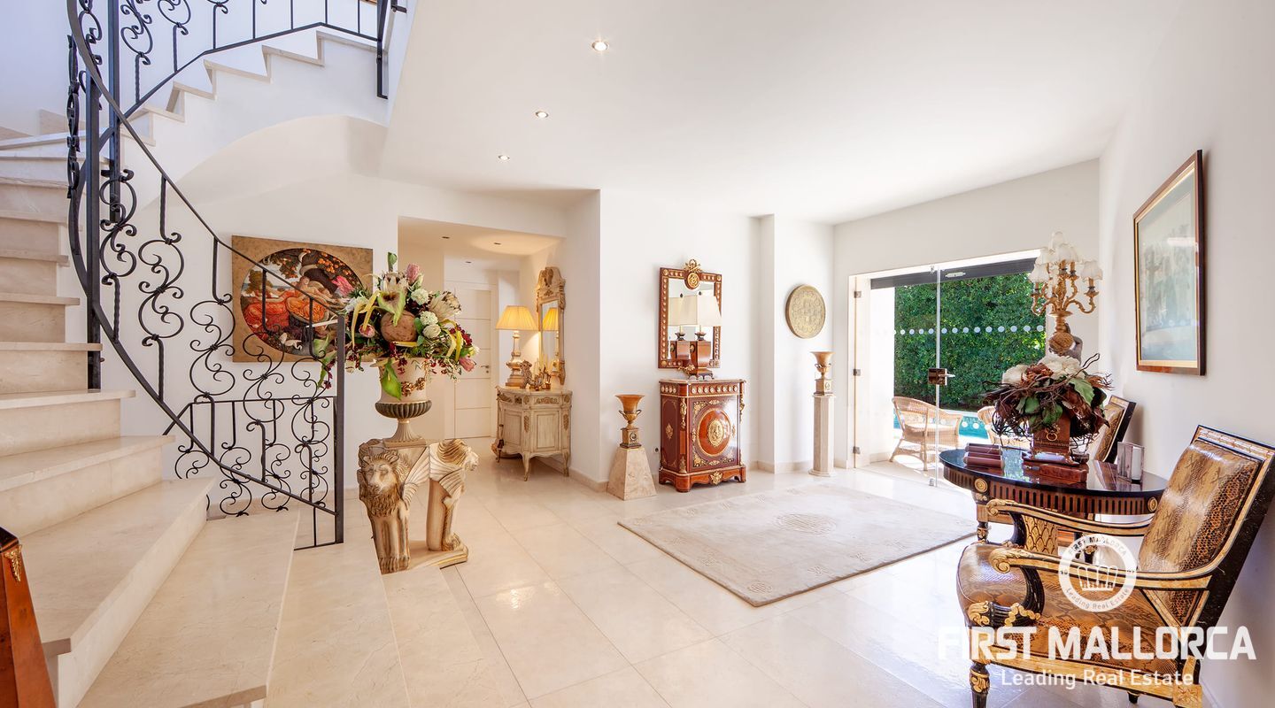 It exudes an aura of timeless elegance, supported by the use of the finest craftsmanship, top-end kitchen appliances, and many other impressive features, such as underfloor heating, reversible air conditioning system, natural stone floors, salt water pool as well as a arage for 3 cars.