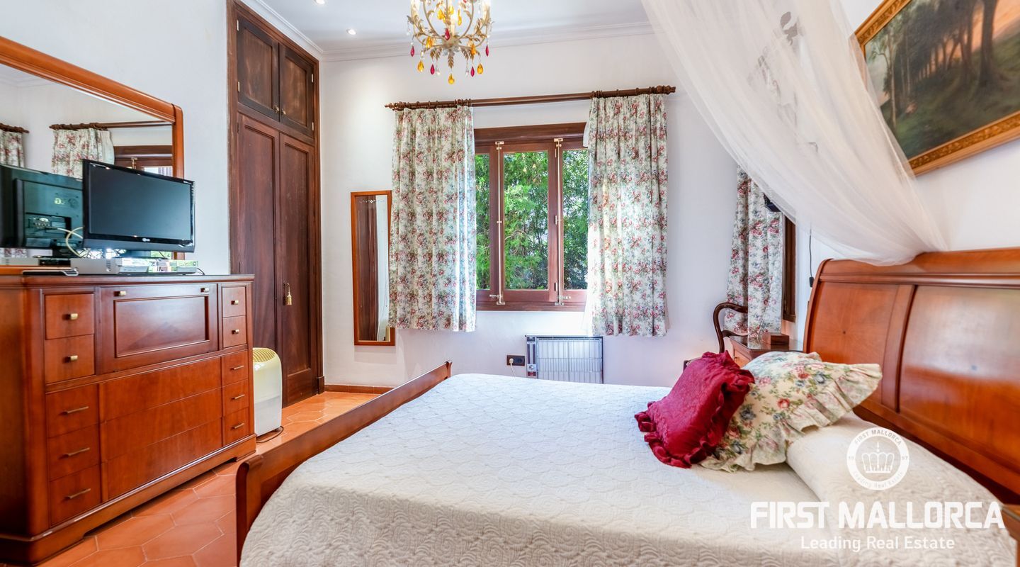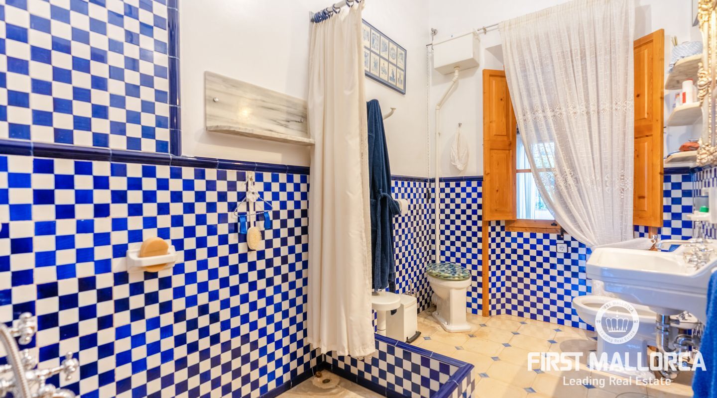 The villa maintains the character of the summer houses of the past century: large windows open to the sea, front terrace, mosaic floors, original Mallorcan tiles and an impressive staircase between both floors — in short, a gem from the past. The 7 bedroom property has been maintained and upgraded by its current owners so that it features air conditioning hot/ cold throughout the house, a modern kitchen and even an elevator. In addition, the villa has a small garden at the rear, a separate guest apartment and a garage. For more information about this property in the east of Mallorca, do not hesitate to contact one of our real estate agents.