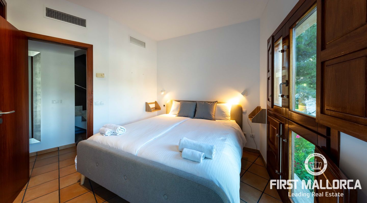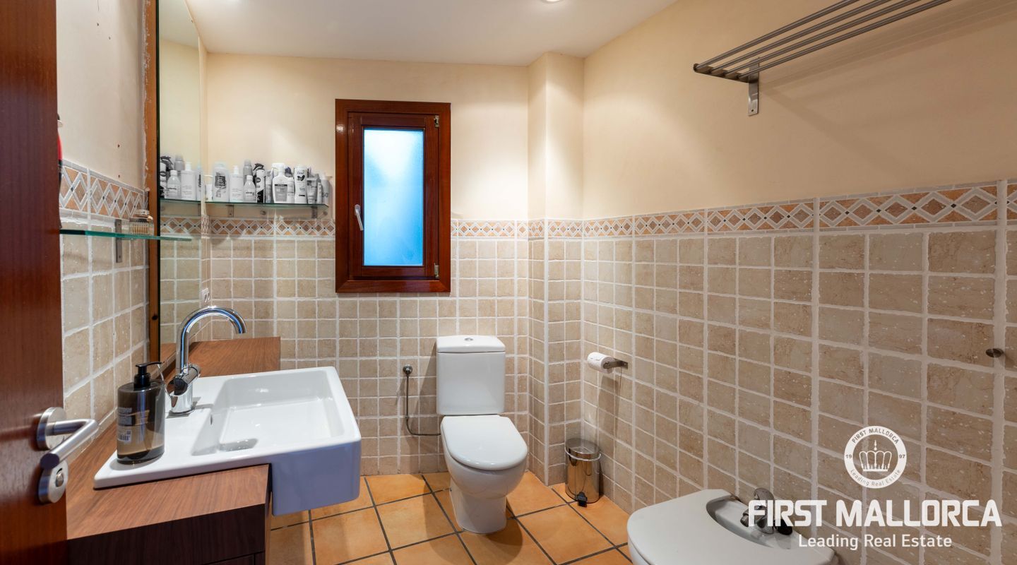 Behind the villa is another terrace, which offers shade especially in the hot summer months and invites to relax. Additional features include air conditioning hot/ cold, double glazing, teak woodworks and alarm system. Please contact us for more information about this delightful villa with excellent views in the west of Mallorca and arrange a viewing today.