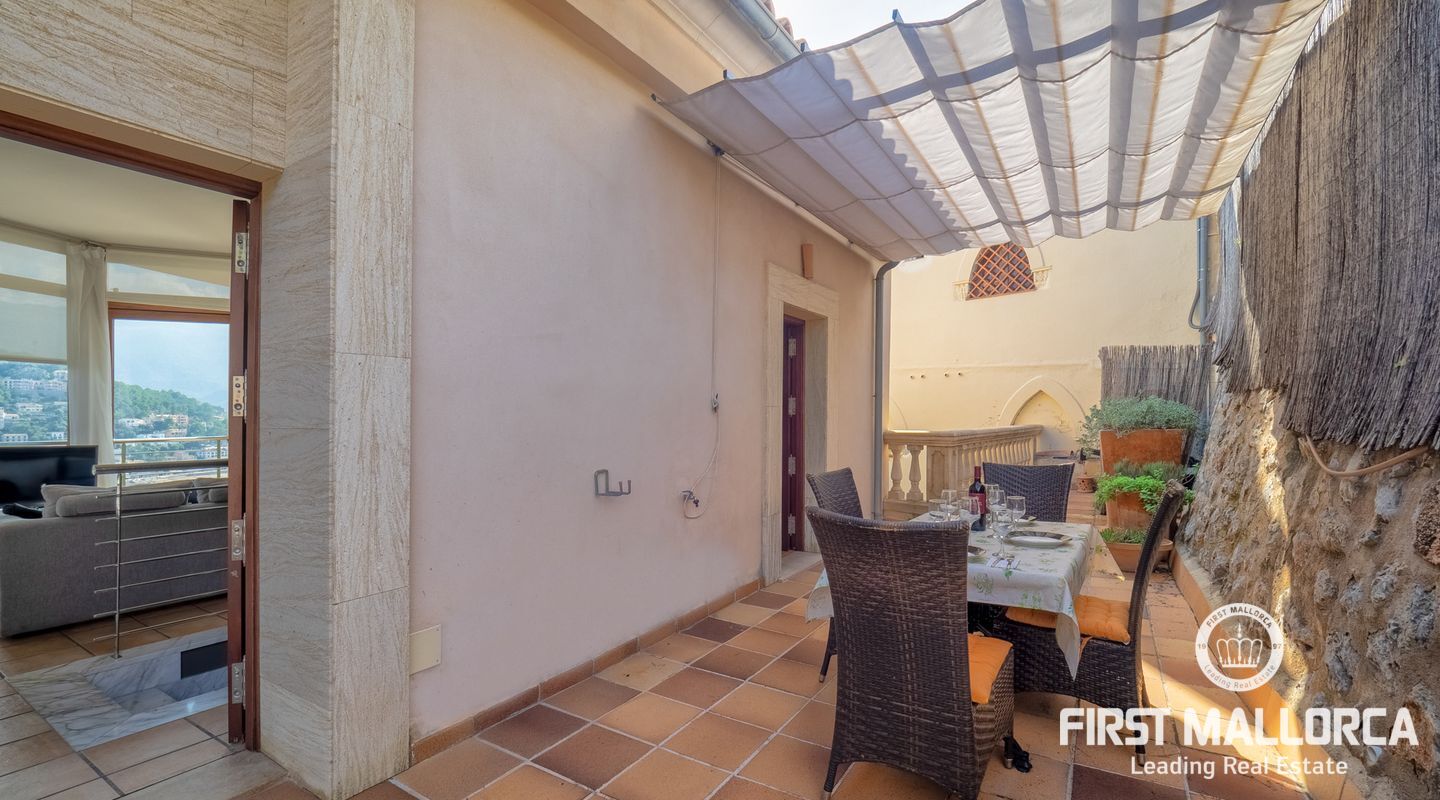 This villa in Puerto de Sóller has 3 floors and is located above the harbour promenade. On the ground floor is a spacious garage and it is also possible to park 2 more cars in front of the garage. The first level has 3 bedrooms and 2 bathrooms, one of them en suite. The main bedroom also has a large covered terrace. On the upper floor, there is a living-dining room, a kitchen, a guest toilet and a terrace enjoying magnificent views over the harbour of Puerto de Sóller.