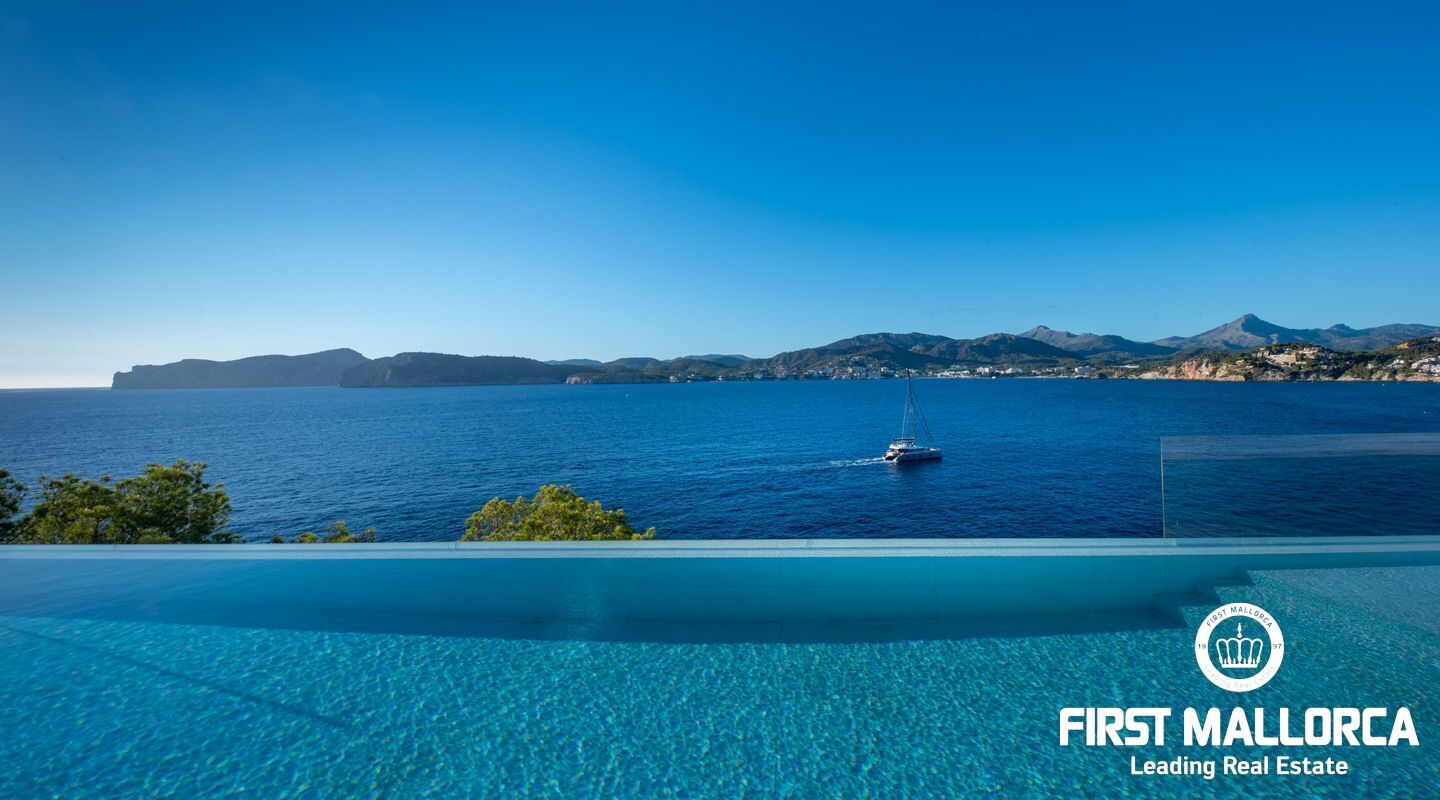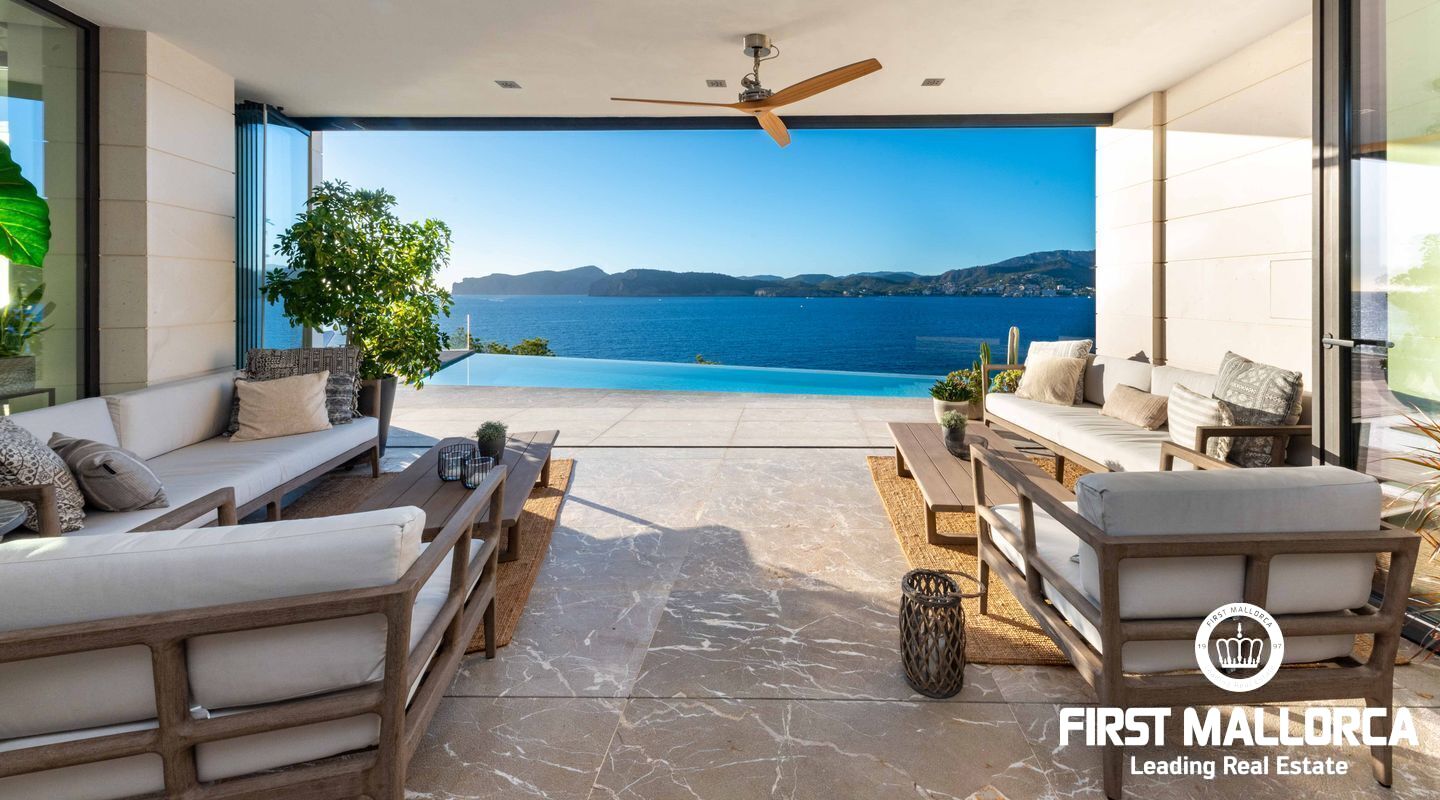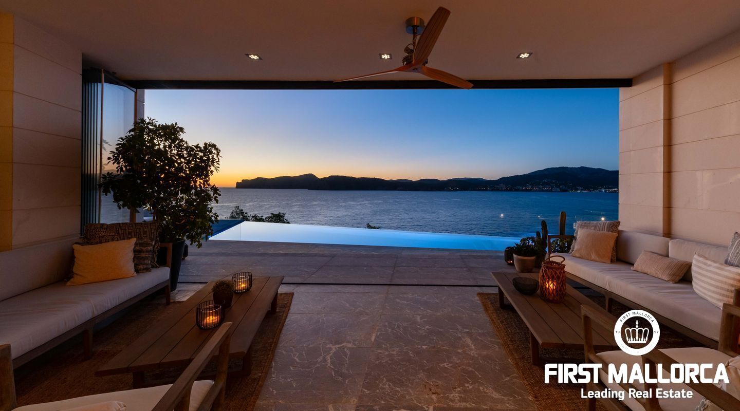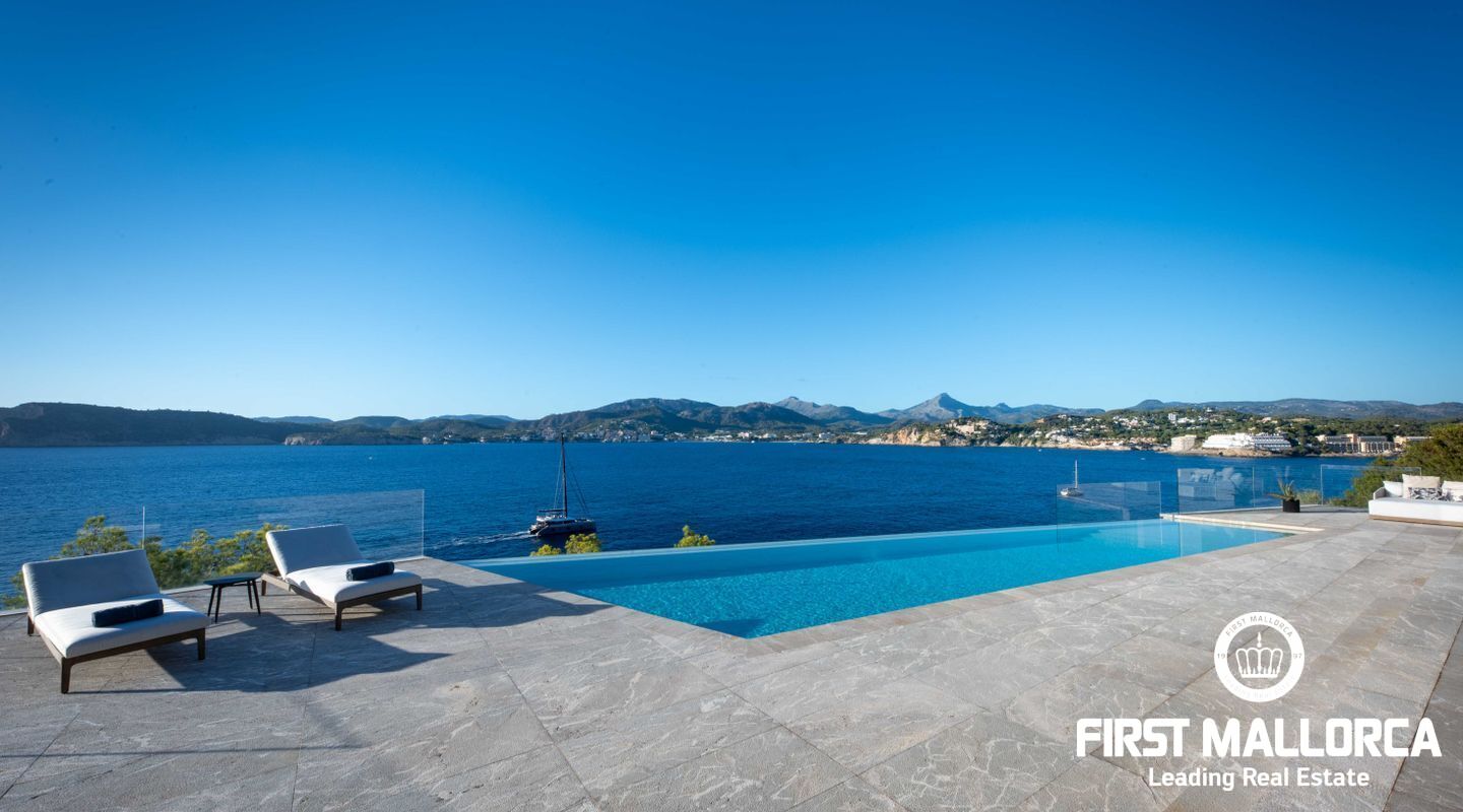 Sea front living on Mallorca's sought-after south west coast is made even more special by the unique attributes of this stunning home. Panoramic views that stretch across the Bay of Santa Ponsa, towards the impressive headlands along the south west coast and as dramatic backdrop the Galatzó Mountain.