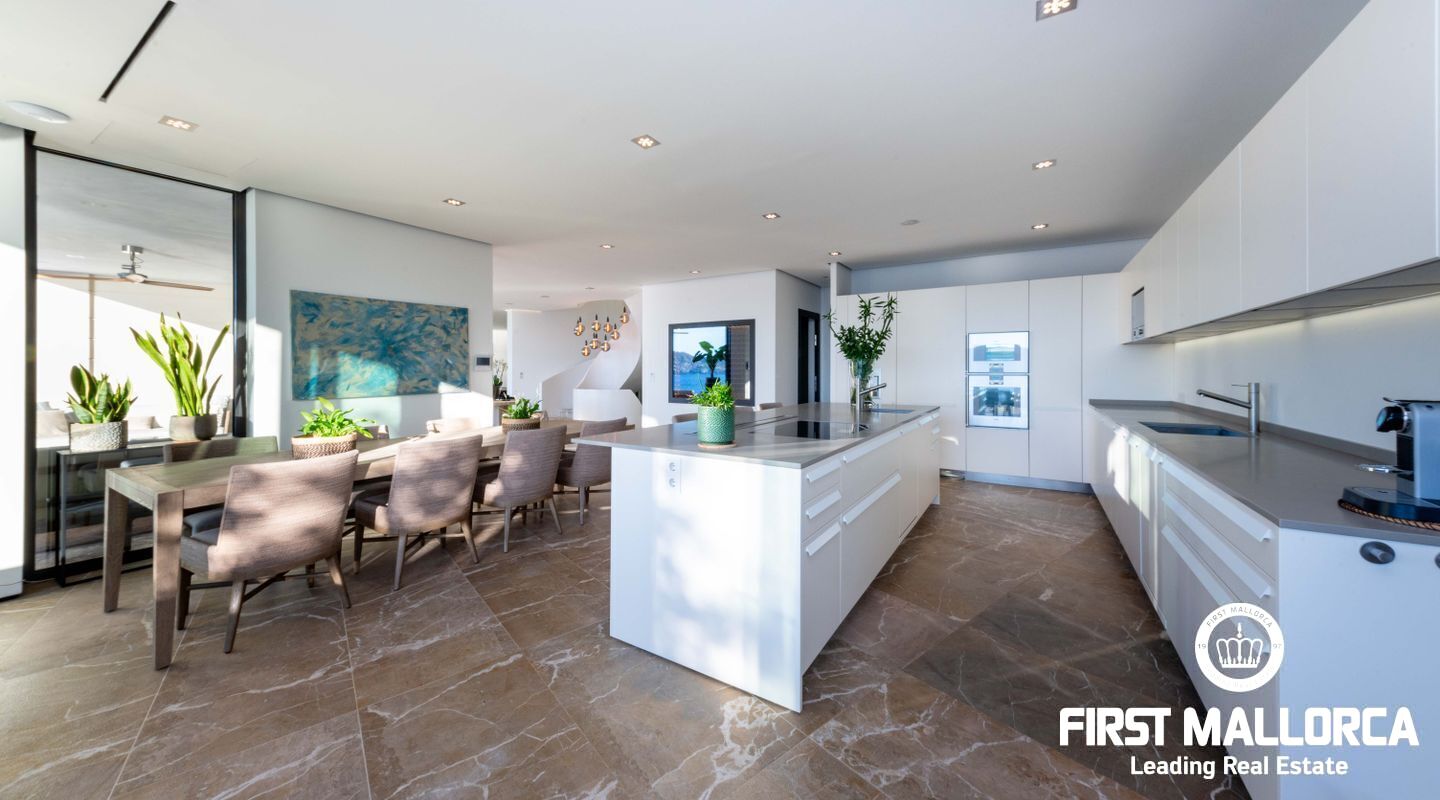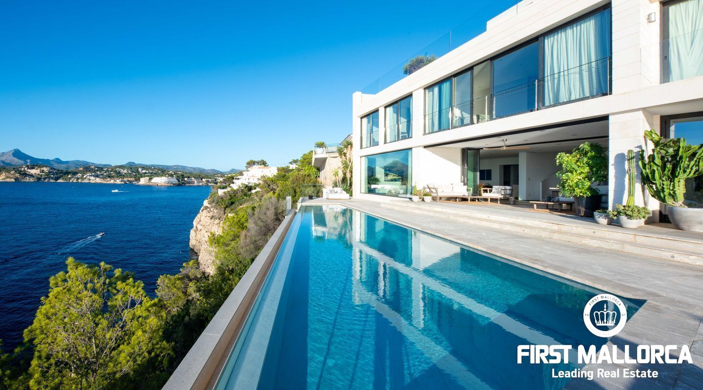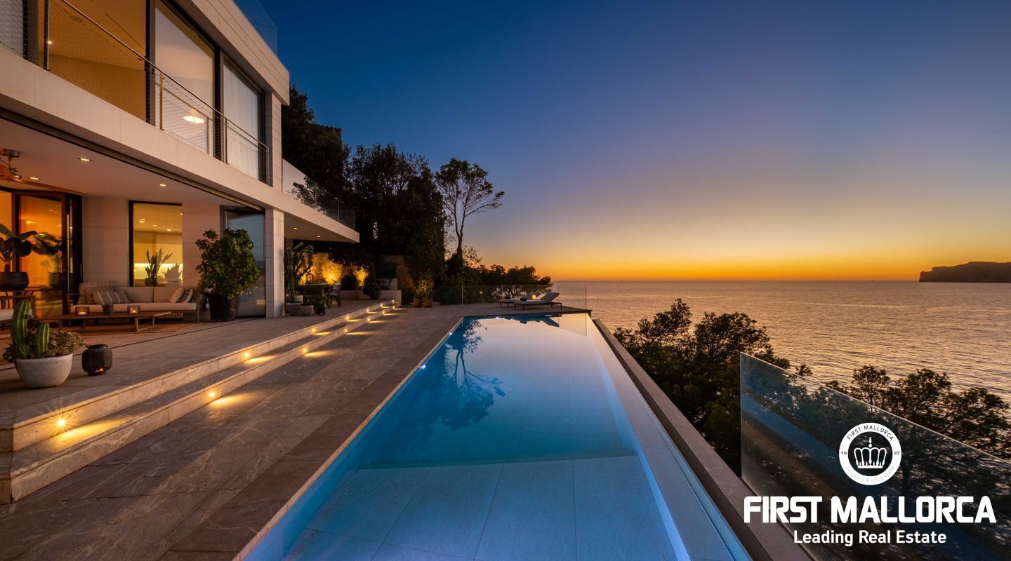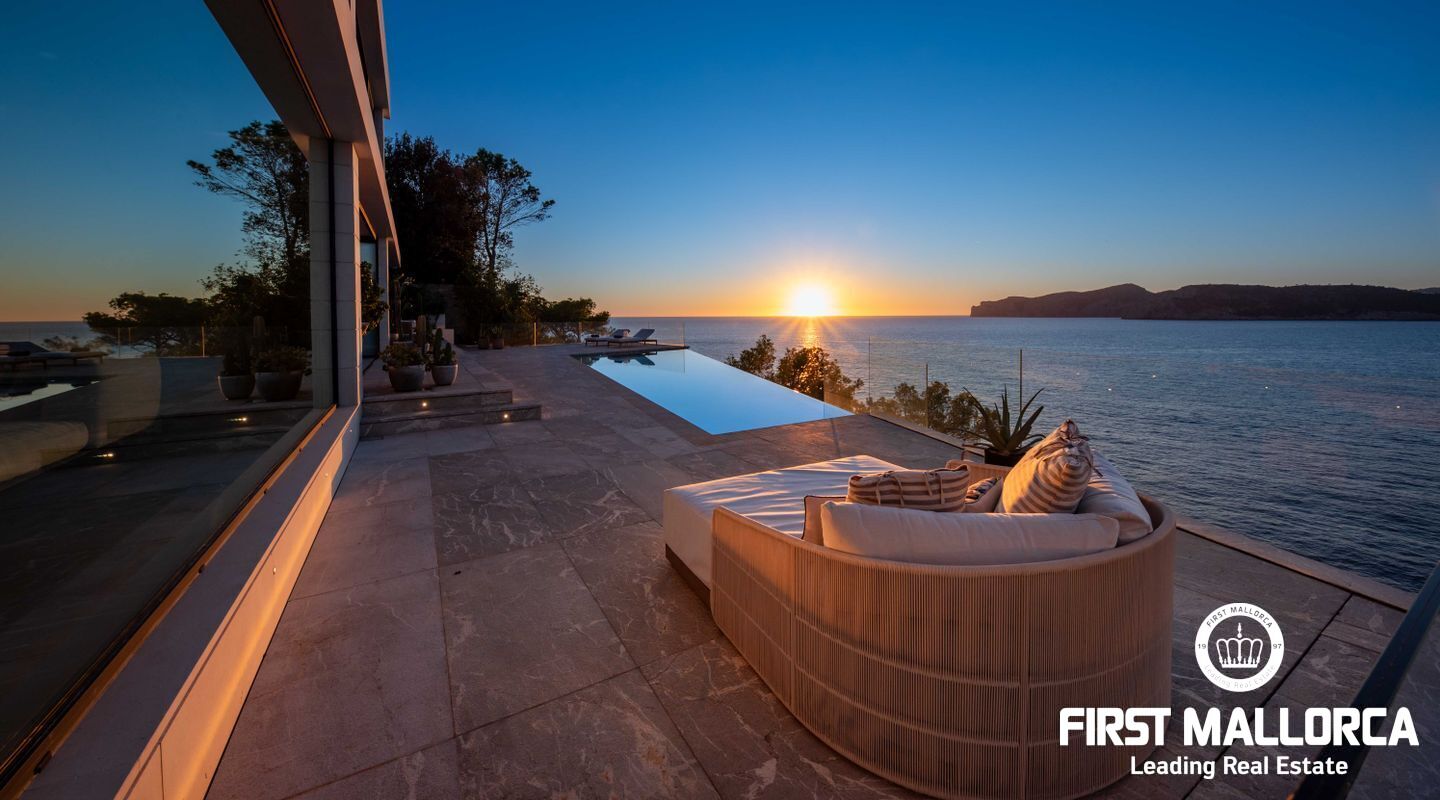Sea front living on Mallorca's sought-after south west coast is made even more special by the unique attributes of this stunning home. Panoramic views that stretch across the Bay of Santa Ponsa, towards the impressive headlands along the south west coast and as dramatic backdrop the Galatzó Mountain.