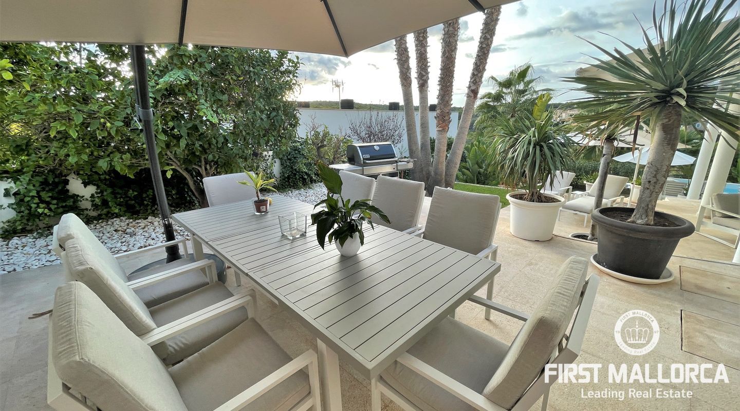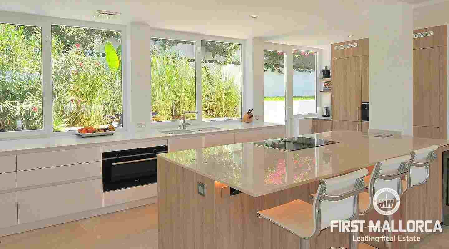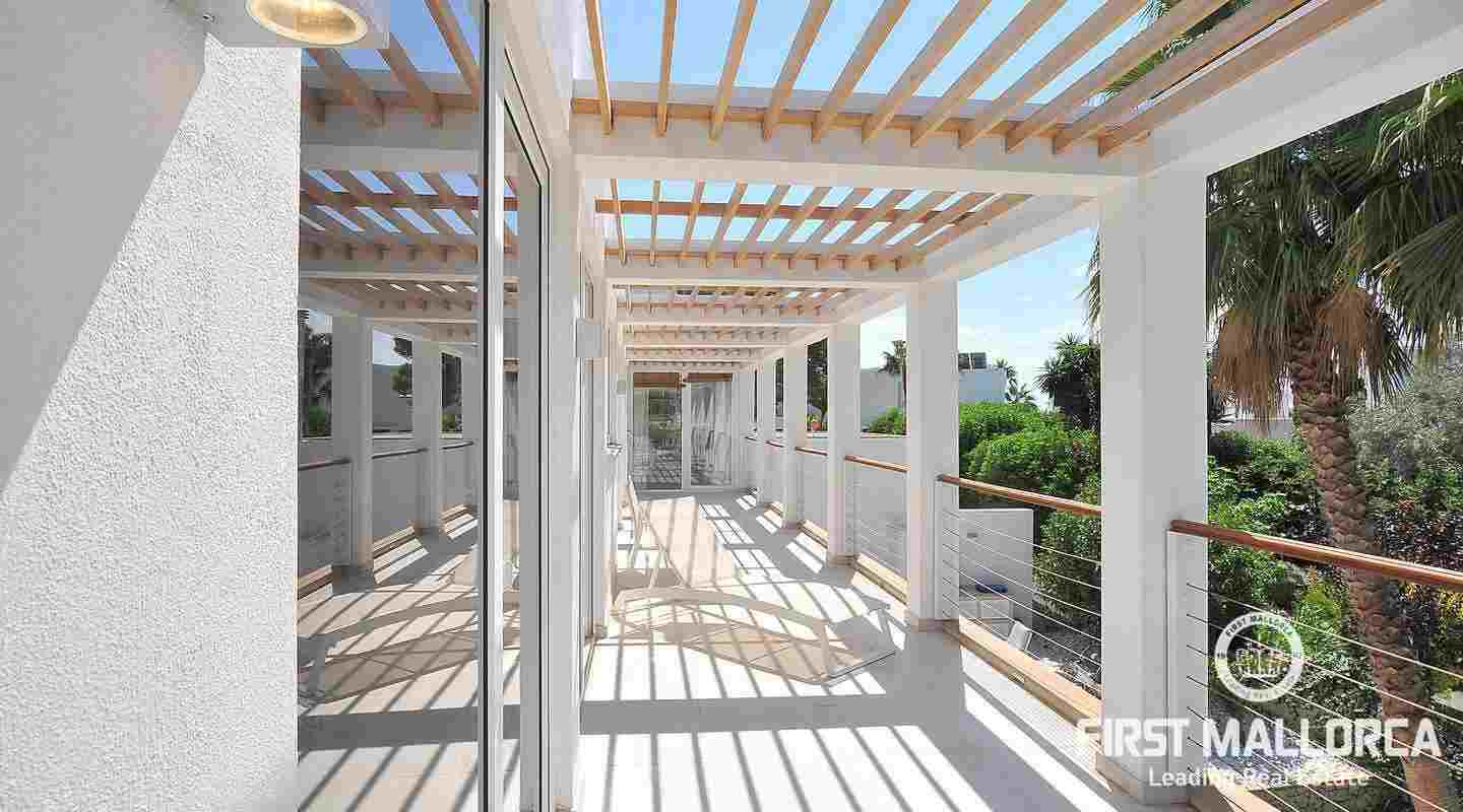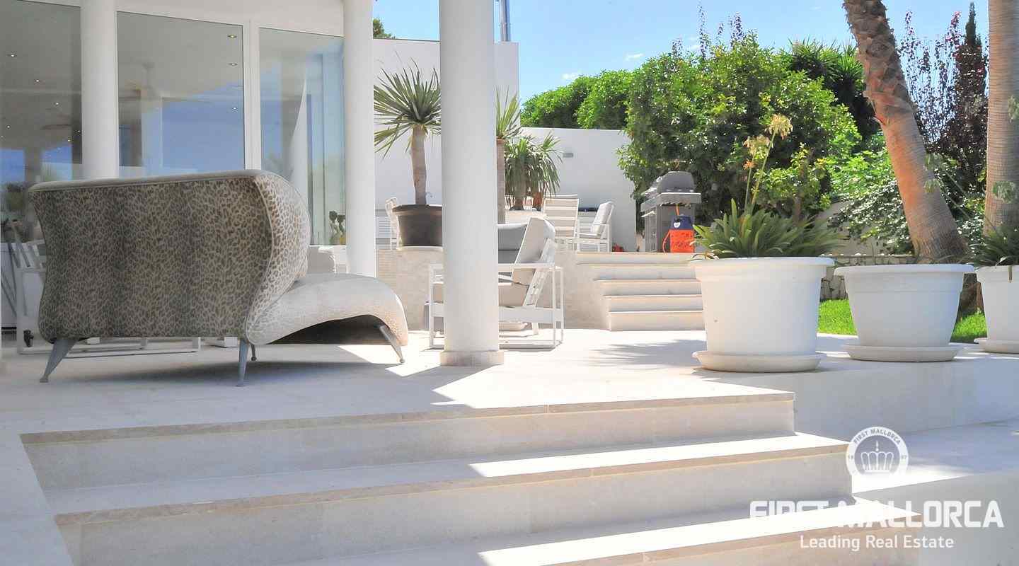 An attractive and spacious contemporary design villa in a peaceful residential area of Sol de Mallorca. The exclusive property is located only a few minutes by car from the fashionable marina of Port Adriano with its cafés, restaurants and boutiques. The 4 bedroom, 4 bathroom villa sits in a garden plot of 1,310 m2. It has a constructed area of 426 m2 including approximately 20 m2 of covered terraces. In addition there are 100 m2 of open terraces and a roof terrace of approximately 85 m2 with excellent views to the sea, the landscape and the mountains. Additional features include an open fireplace, a bar, high quality materials and a storeroom. Within a few minutes walking one finds some of the island's most spectacular beaches as well as a vast protected natural reserve, ideal for hiking.