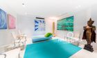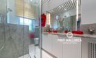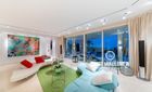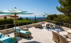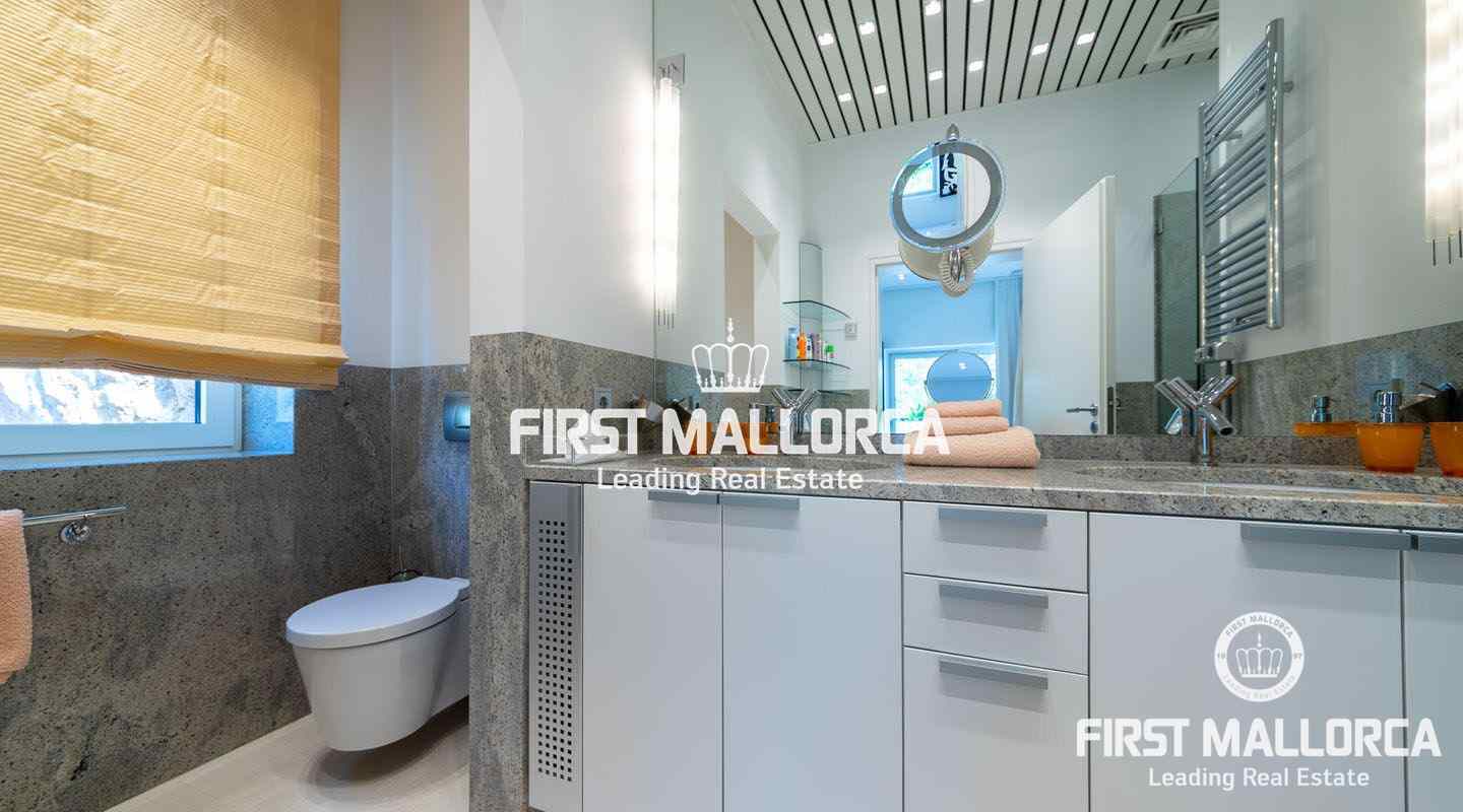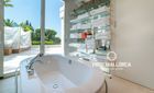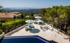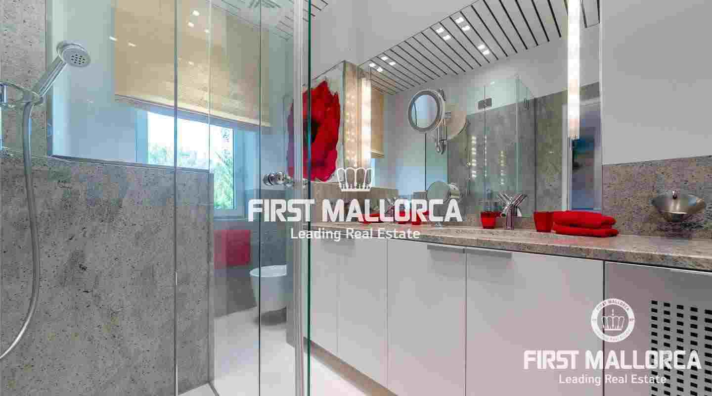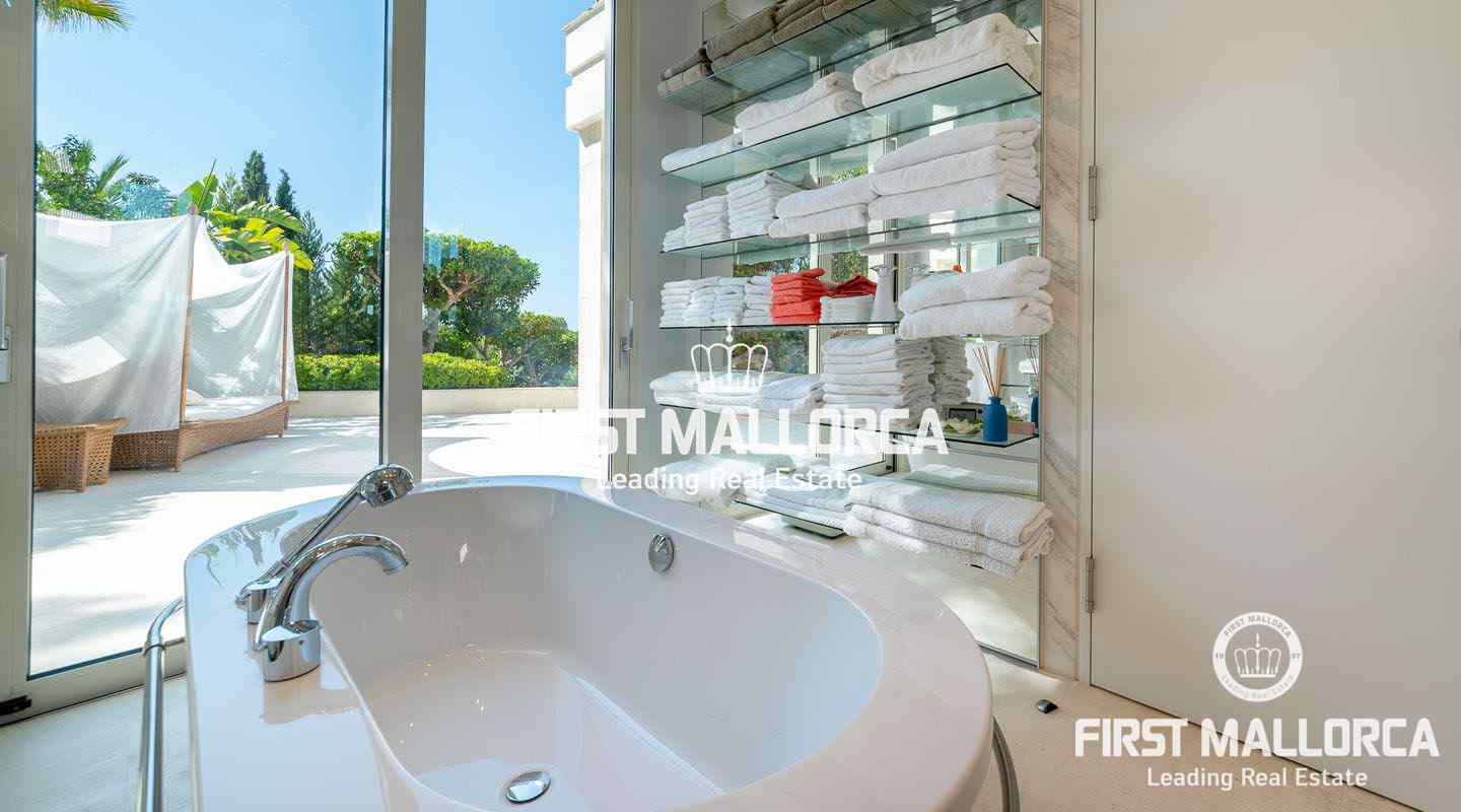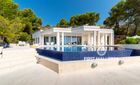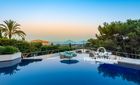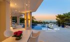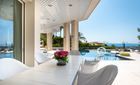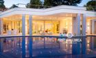 This stunning property is distrubuted on a generous 750m2 over three floors, which are connected by an elevator and several terrace areas. The inviting entrance welcomes you with beautiful high ceilings, a large open staircase and a bright living space, as well as other great facilities. The upper level benefits with a lovely open and bright living-dining area and access to the fantastic outdoor living with pool and terraces offering unbeatable sea views. Furthermore, there is a state-of-the-art equipped kitchen, a master suite with bathroom and large dressing room, as well as 3 guest bedrooms each with ensuite bathrooms.