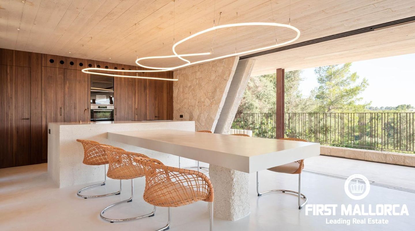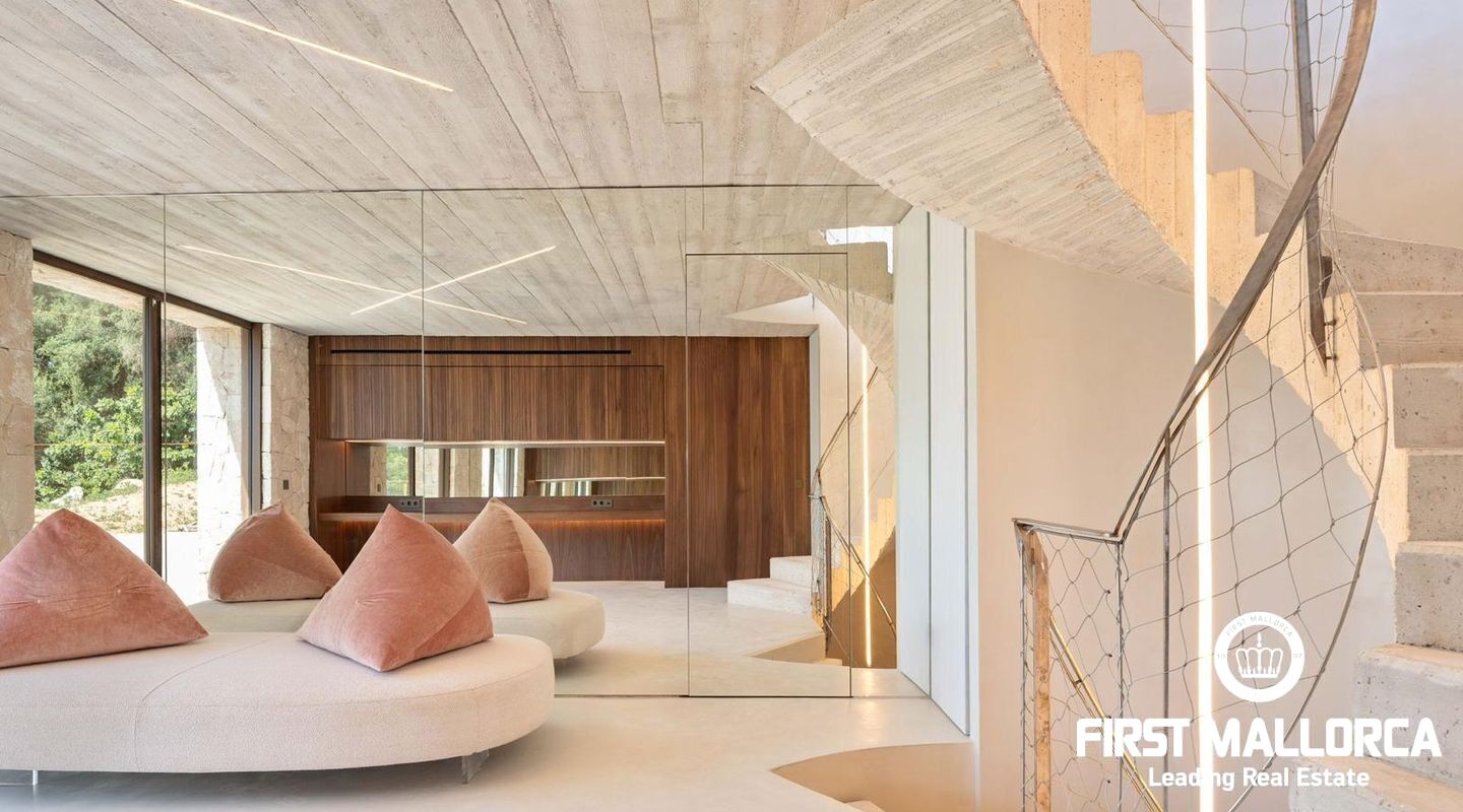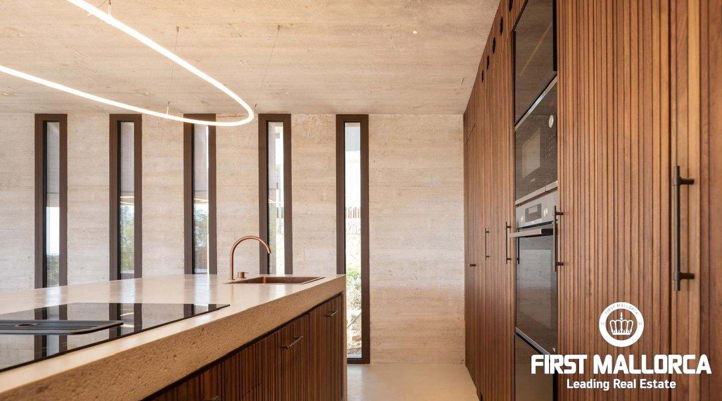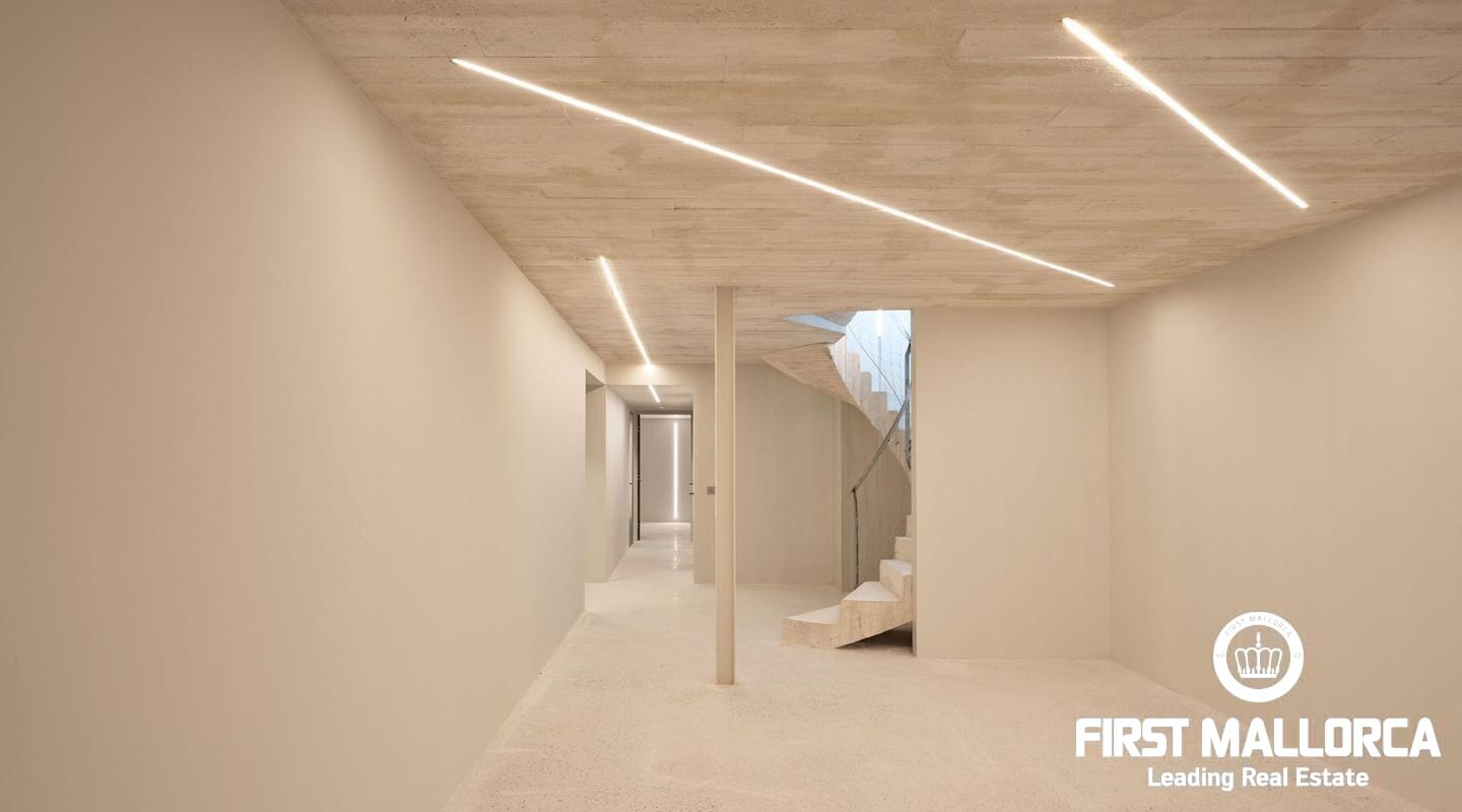 This modern villa in Bonaire, has been designed for maximum enjoyment and will delight the senses, making it the perfect oasis and ideal place for a getaway under the Mallorcan sun. The property offers a stunning, contemporary style of living which has been built to the highest standard. It is equipped with top quality materials and state-of-the-art design and will enjoy a private garden in an established setting, overlooking the countryside and partial sea views. The house is distributed over three floors: The upper floor offers a large open plan space, with large full height windows that will permit plenty of natural light, garden views and direct access to a covered terrace. The kitchen is open to the dining room and has an elegant and minimalist design, including an island and fully integrated appliances, there is also a pantry/laundry room and a guest toilet. The living room has a modern designer fireplace. A spiral staircase leads down to the ground floor where there is a landing area with exit to a big terrace and solarium, where the swimming pool is. On this level there are four bedrooms and four bathrooms, two of them en suite. Further down, in the basement, there is a fitness room, a home cinema and plenty of storage space. Outside, there is a covered terrace, perfect for outdoor entertaining, a lawned garden and the pool. A special mention should be made of the lighting in the house that is all indirect LED lighting with a minimalist design. The whole house has been thought out down to the smallest detail.