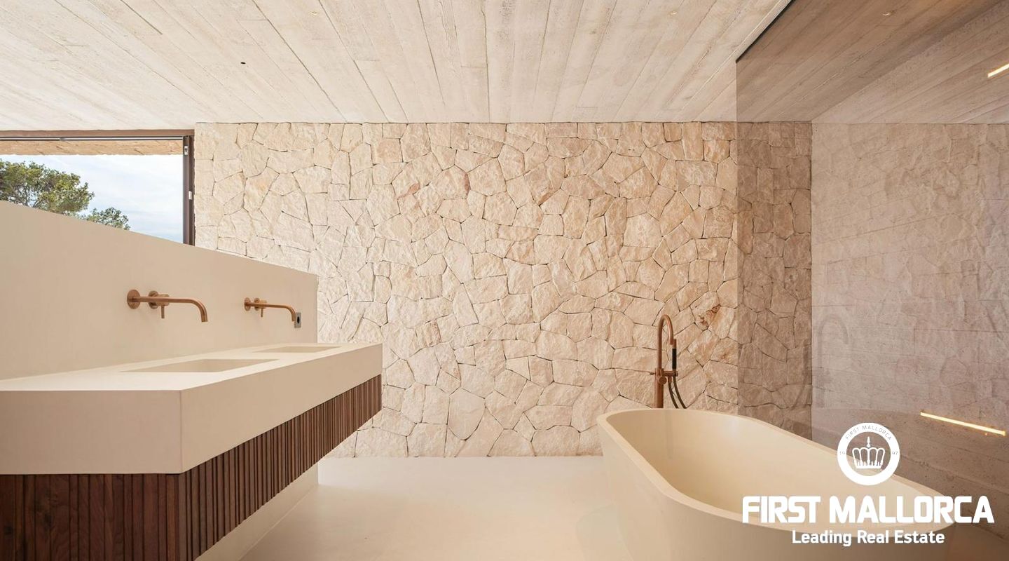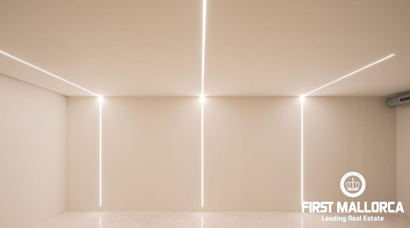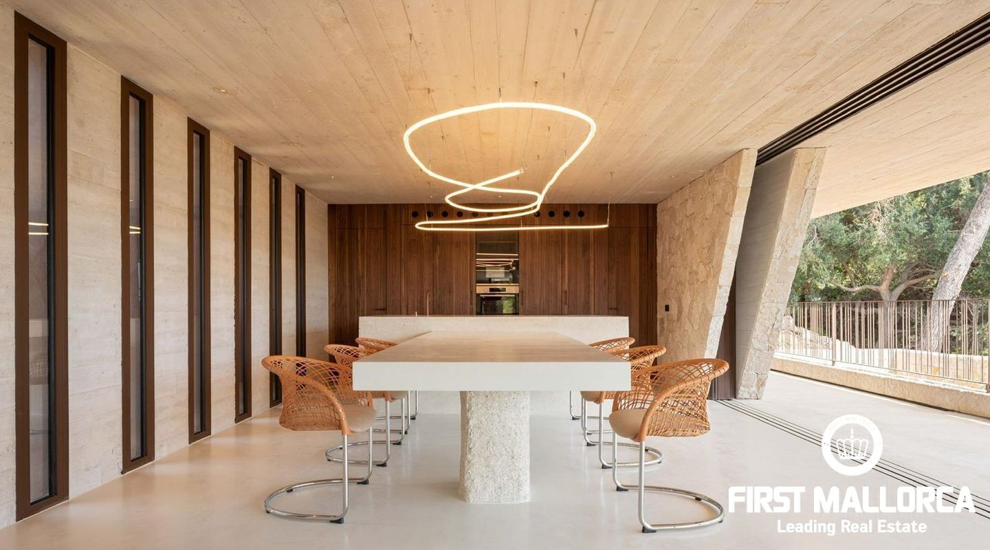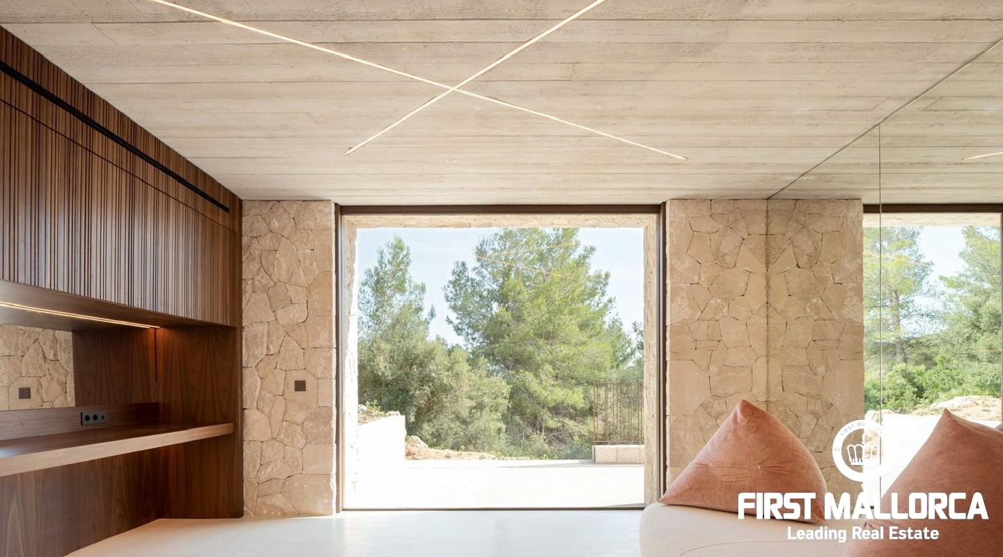 This modern villa in Bonaire, has been designed for maximum enjoyment and will delight the senses, making it the perfect oasis and ideal place for a getaway under the Mallorcan sun. The property offers a stunning, contemporary style of living which has been built to the highest standard. It is equipped with top quality materials and state-of-the-art design and will enjoy a private garden in an established setting, overlooking the countryside and partial sea views. The house is distributed over three floors: The upper floor offers a large open plan space, with large full height windows that will permit plenty of natural light, garden views and direct access to a covered terrace. The kitchen is open to the dining room and has an elegant and minimalist design, including an island and fully integrated appliances, there is also a pantry/laundry room and a guest toilet. The living room has a modern designer fireplace. A spiral staircase leads down to the ground floor where there is a landing area with exit to a big terrace and solarium, where the swimming pool is. On this level there are four bedrooms and four bathrooms, two of them en suite. Further down, in the basement, there is a fitness room, a home cinema and plenty of storage space. Outside, there is a covered terrace, perfect for outdoor entertaining, a lawned garden and the pool. A special mention should be made of the lighting in the house that is all indirect LED lighting with a minimalist design. The whole house has been thought out down to the smallest detail.