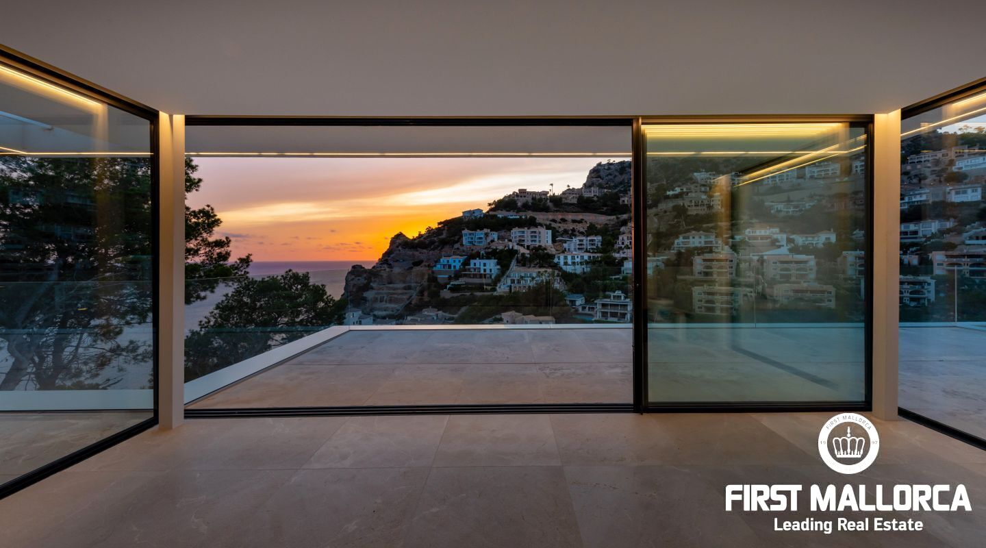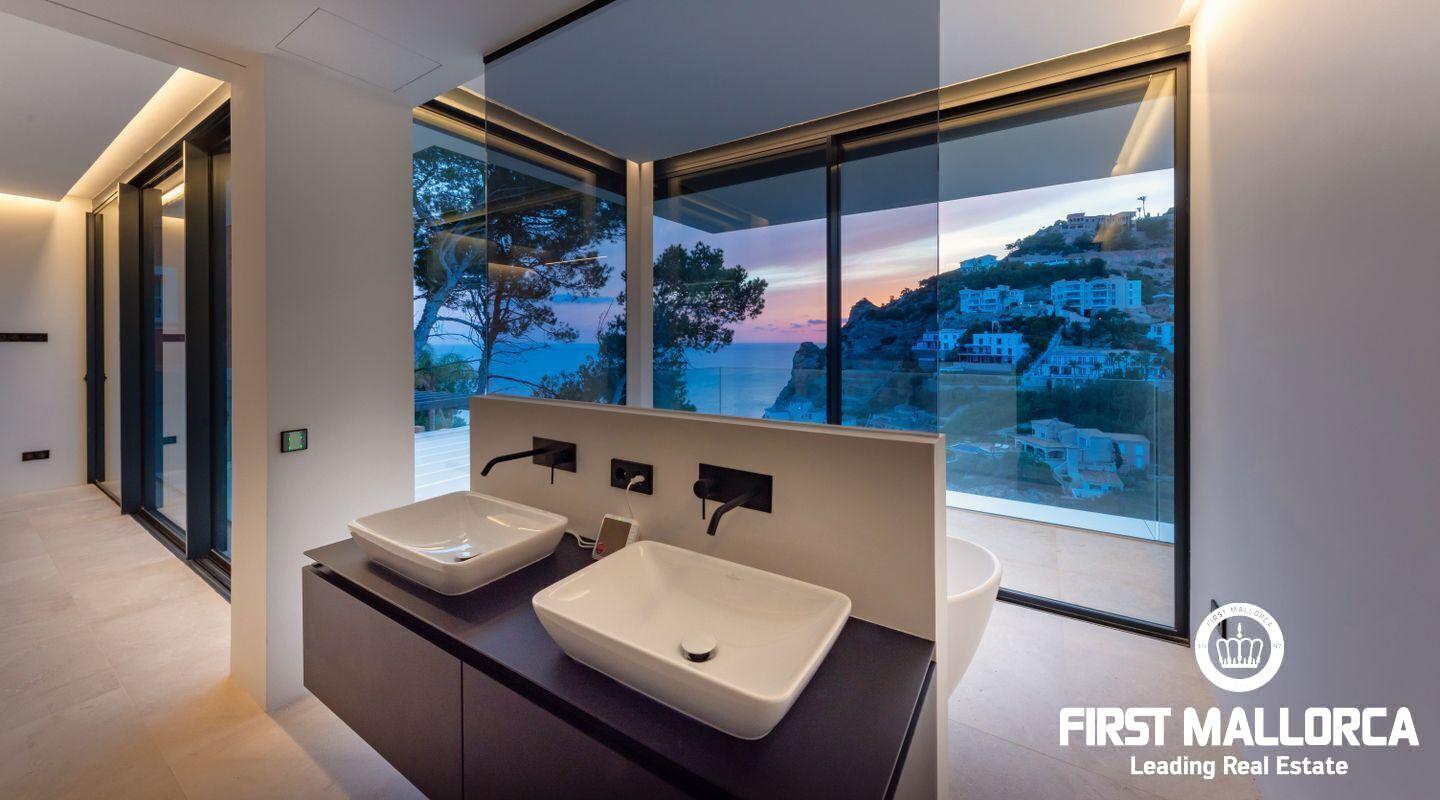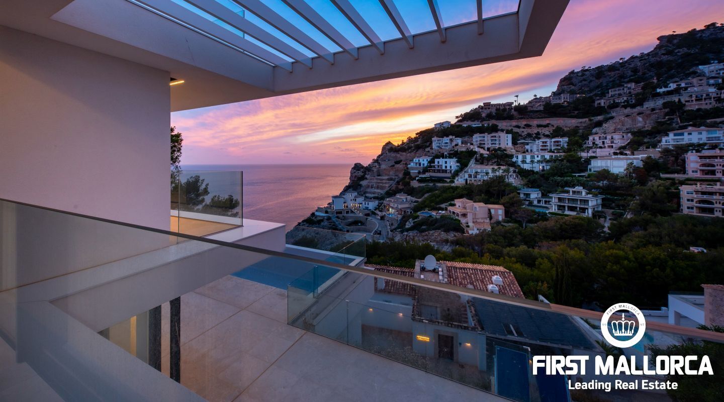 This Modern Villa built to the highest standards boasts an elevated position in the tranquil Cala Moragues in Port Andratx. Its west orientation is perfect for seeing the sun set into the Mediteranean Sea from anywhere in the house but especially from its various terraces.
