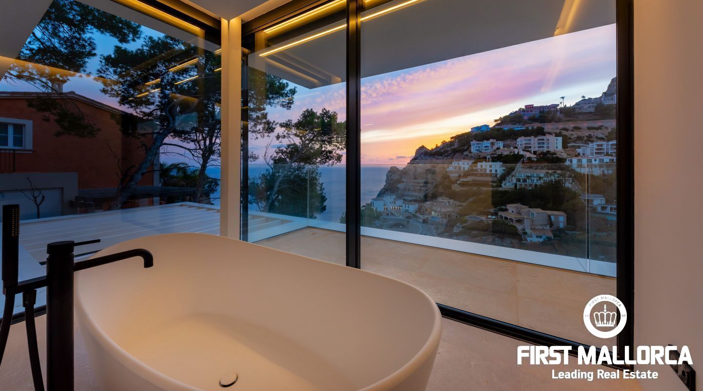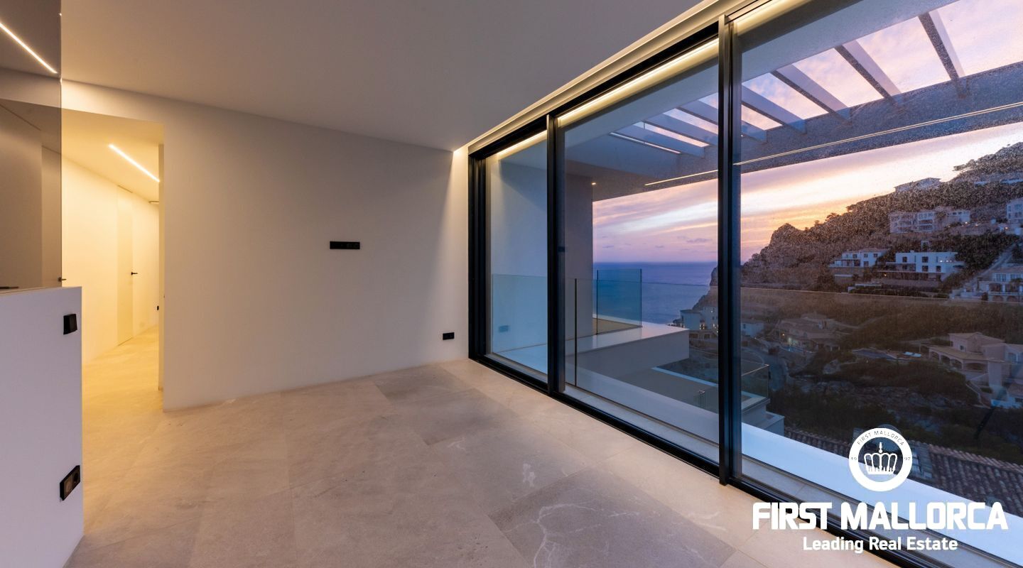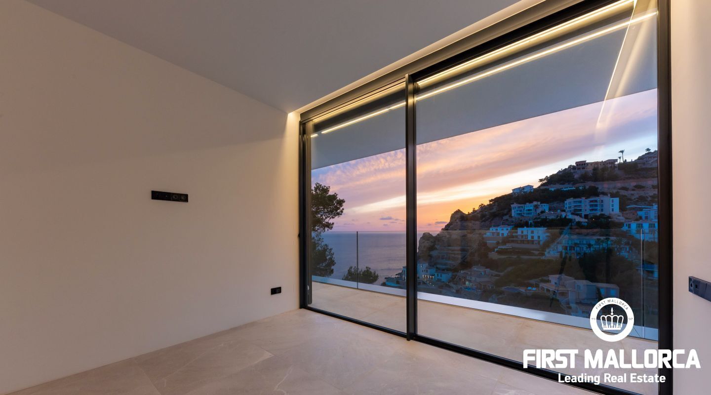 This Modern Villa built to the highest standards boasts an elevated position in the tranquil Cala Moragues in Port Andratx. Its west orientation is perfect for seeing the sun set into the Mediteranean Sea from anywhere in the house but especially from its various terraces.