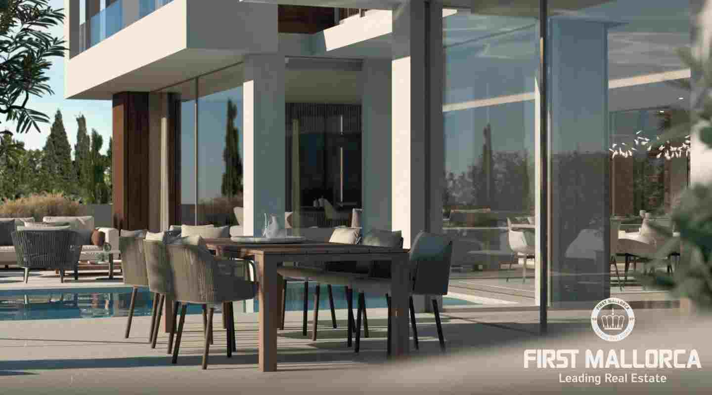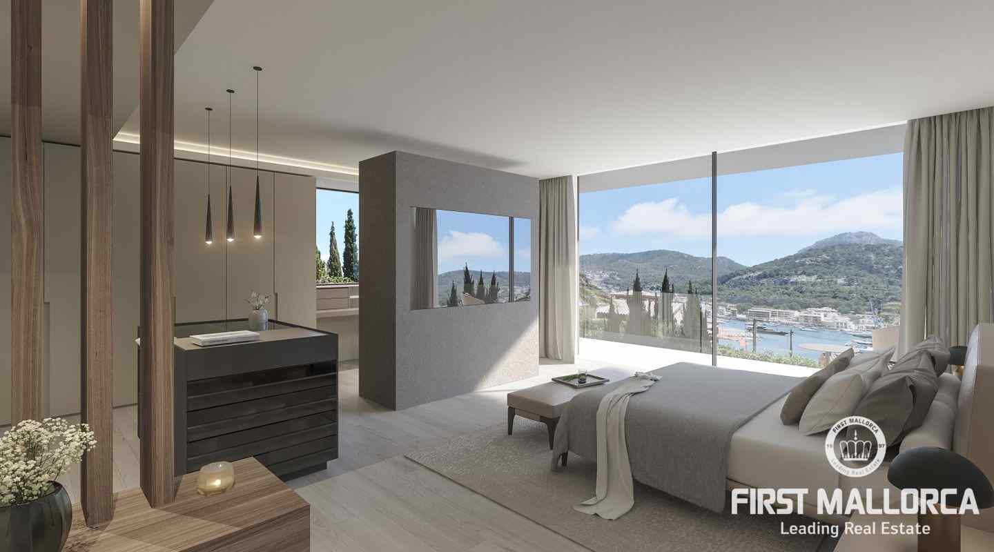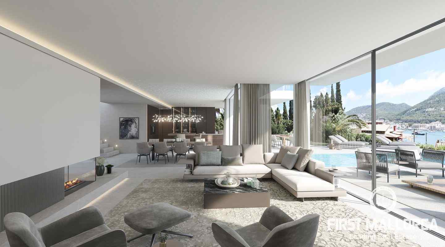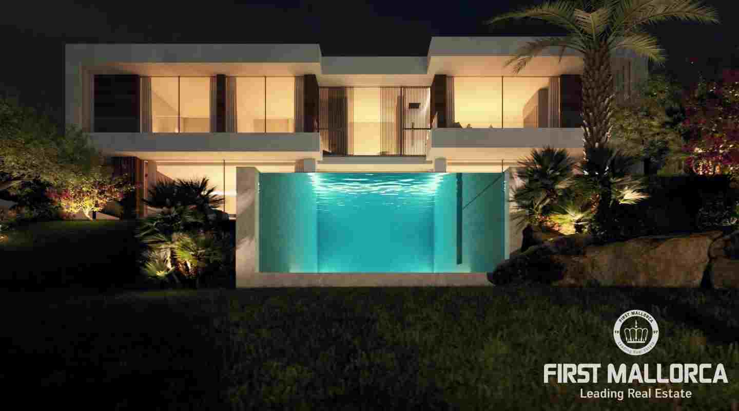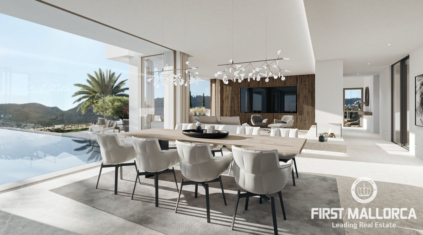 This villa is being built on a unique plot of land within walking distance of the port and the restaurants. From the pool terrace you can enjoy a small view of the port of Puerto de Andratx and from the upper level a wonderful panoramic view. The unique design of this villa is characterized by the perfect combination of modern and Mediterranean style. All details are systematically planned and you will be fascinated again and again. The spaciousness of the plot with almost 1400 m2, the constructed area of 750 m2 including terraces and the living area of 440 m2 are also impressive. This luxury villa is equipped with everything you would expect from a high-end property and is in a unique location that is currently not to be found anywhere else. The purchase price offered here also includes a designer furniture concept worth around 400,000,- euros. Construction will start shortly and the villa will likely be completed in summer 2024.