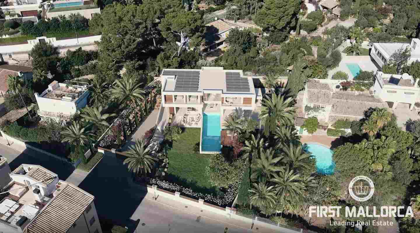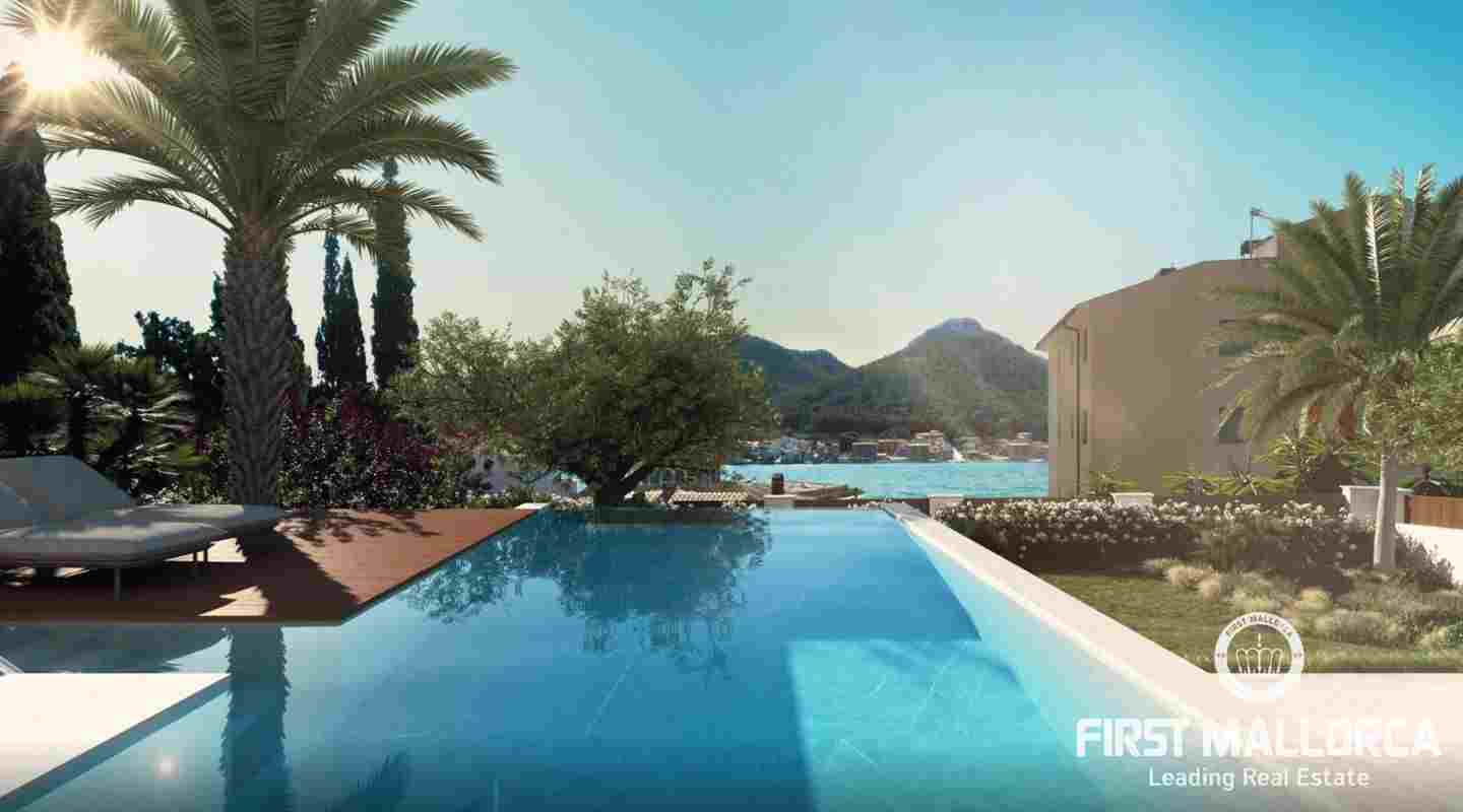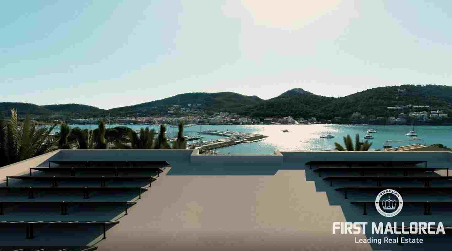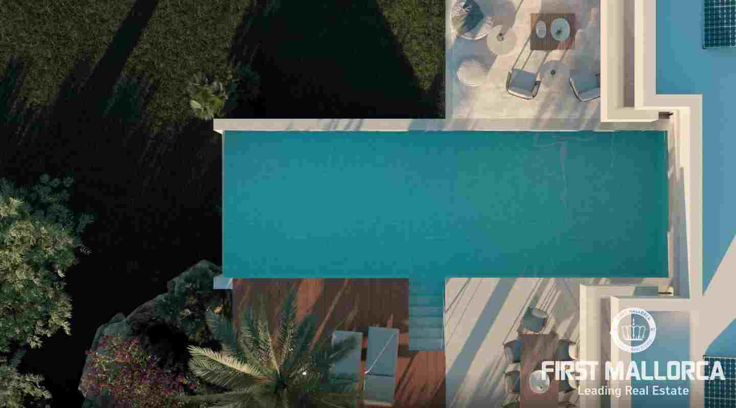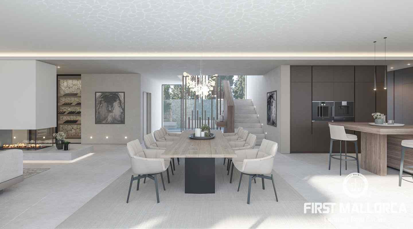 This villa is being built on a unique plot of land within walking distance of the port and the restaurants. From the pool terrace you can enjoy a small view of the port of Puerto de Andratx and from the upper level a wonderful panoramic view. The unique design of this villa is characterized by the perfect combination of modern and Mediterranean style. All details are systematically planned and you will be fascinated again and again. The spaciousness of the plot with almost 1400 m2, the constructed area of 750 m2 including terraces and the living area of 440 m2 are also impressive. This luxury villa is equipped with everything you would expect from a high-end property and is in a unique location that is currently not to be found anywhere else. The purchase price offered here also includes a designer furniture concept worth around 400,000,- euros. Construction will start shortly and the villa will likely be completed in summer 2024.